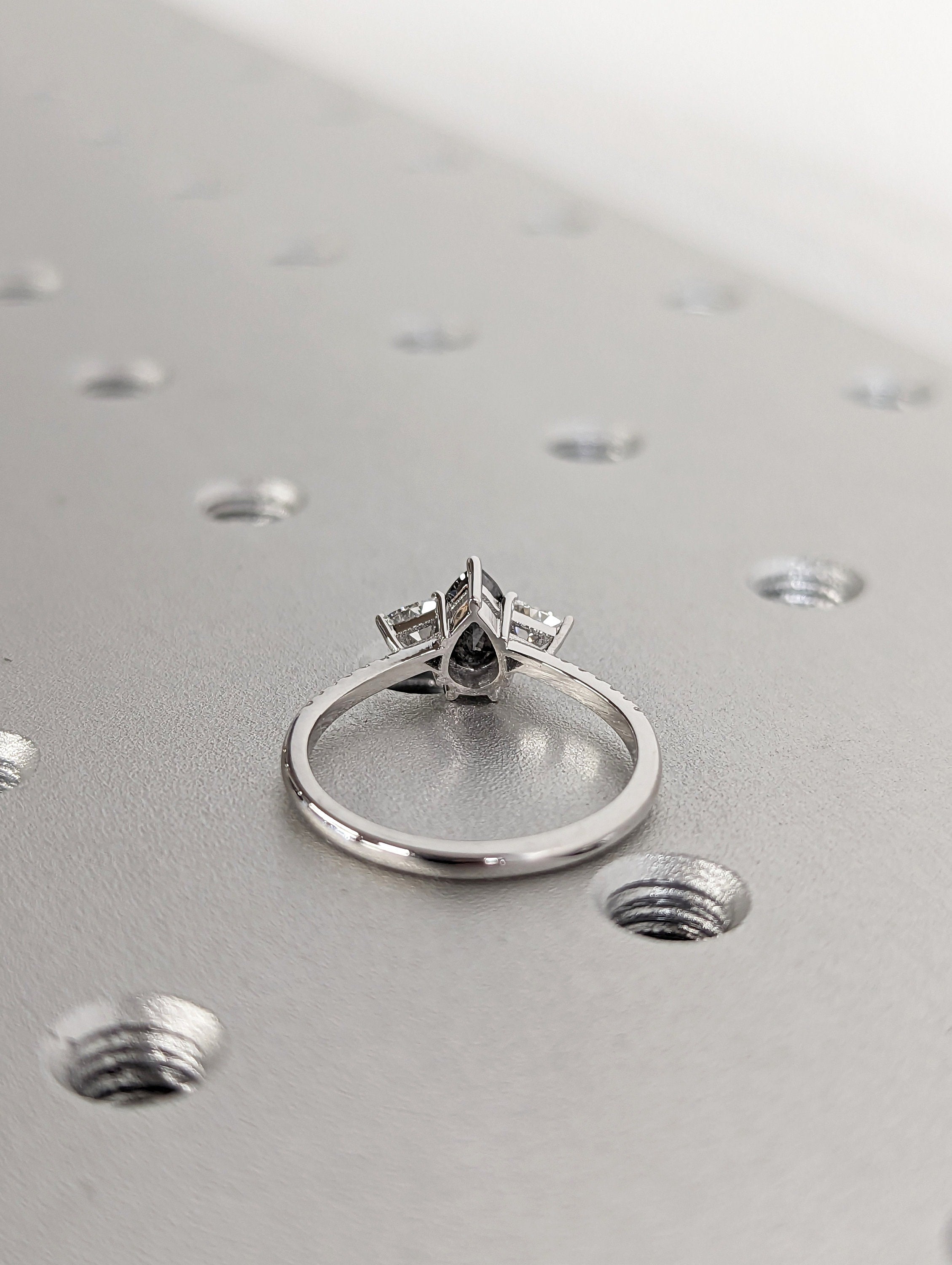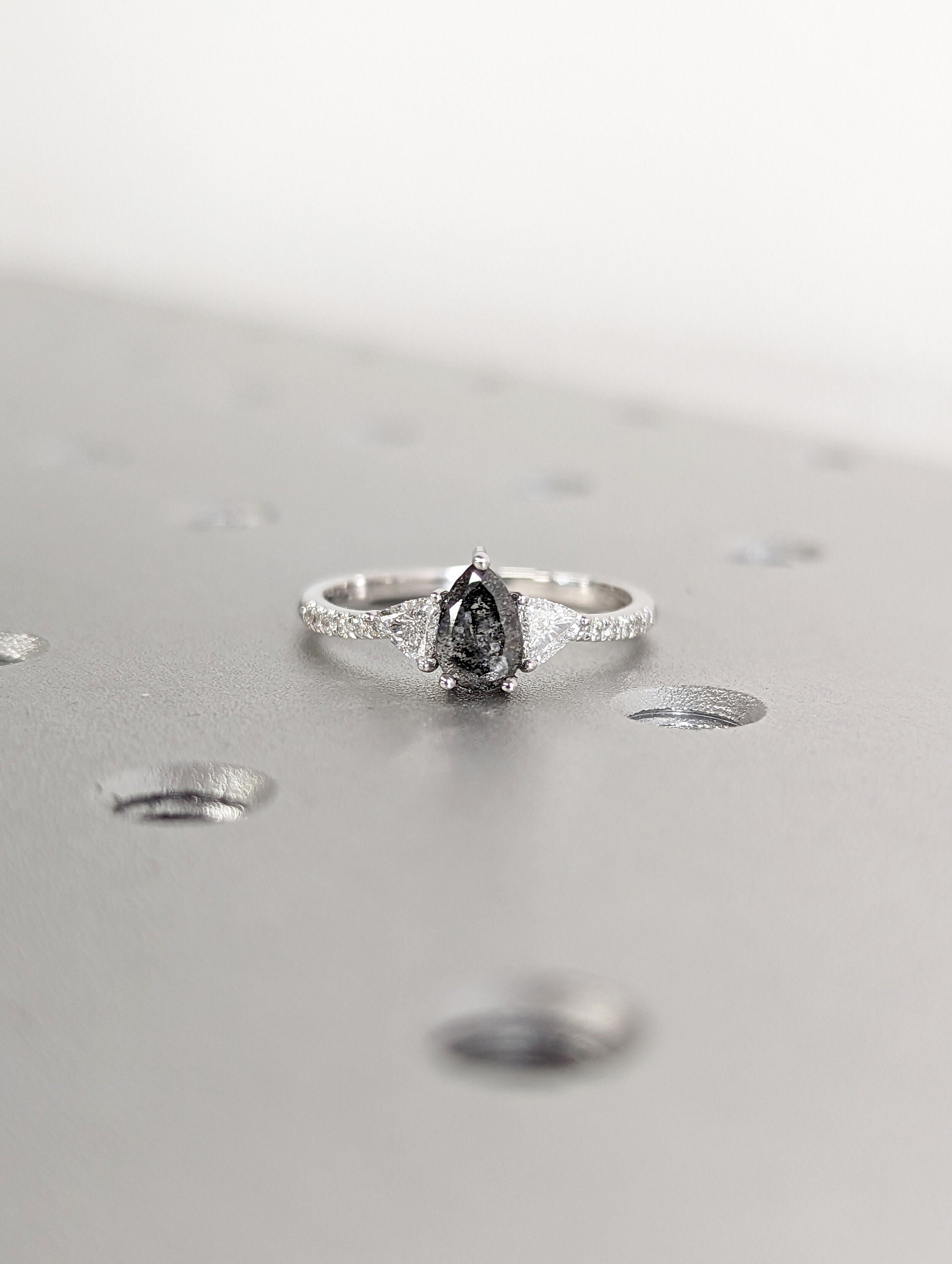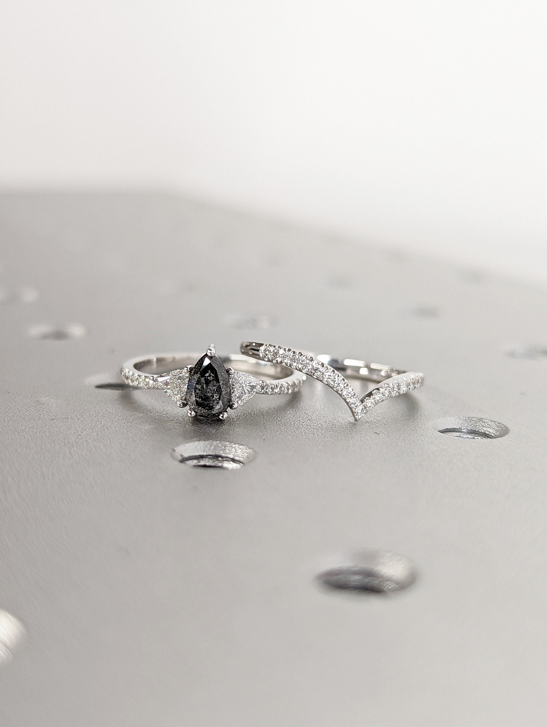 0.5ct 1920's Raw Salt and Pepper Diamond, Pear Diamond Ring, Unique Engagement Bridal Set, Black, Gray Pear, 14k Yellow, Rose, or White Gold