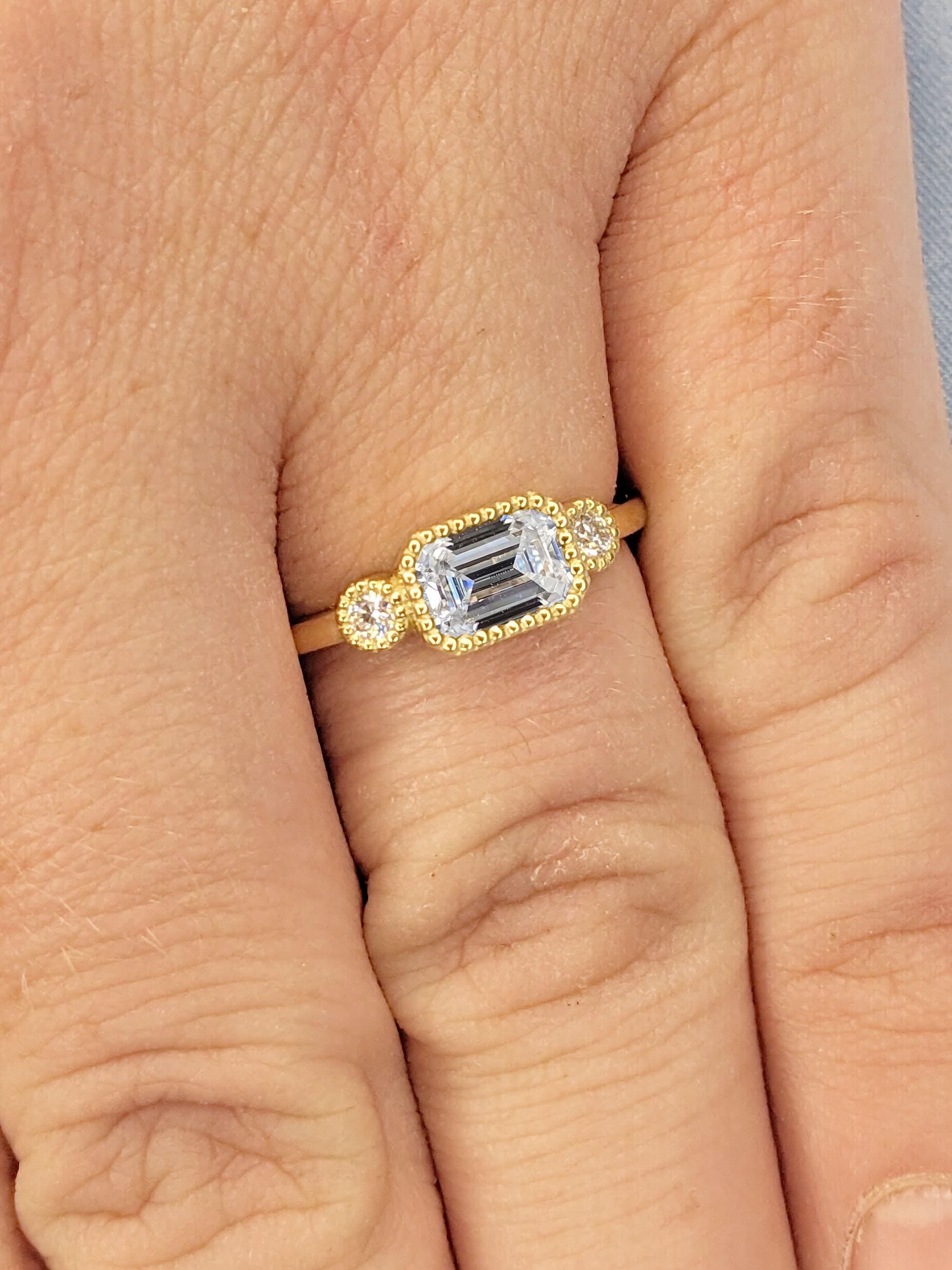 0.5CT, 1Ct, 1.5CT Emerald cut Moissanite Milgrain Promise Ring | Vintage Moissanite Engagement Ring, 14K Gold Ring | Cocktail Ring for Women