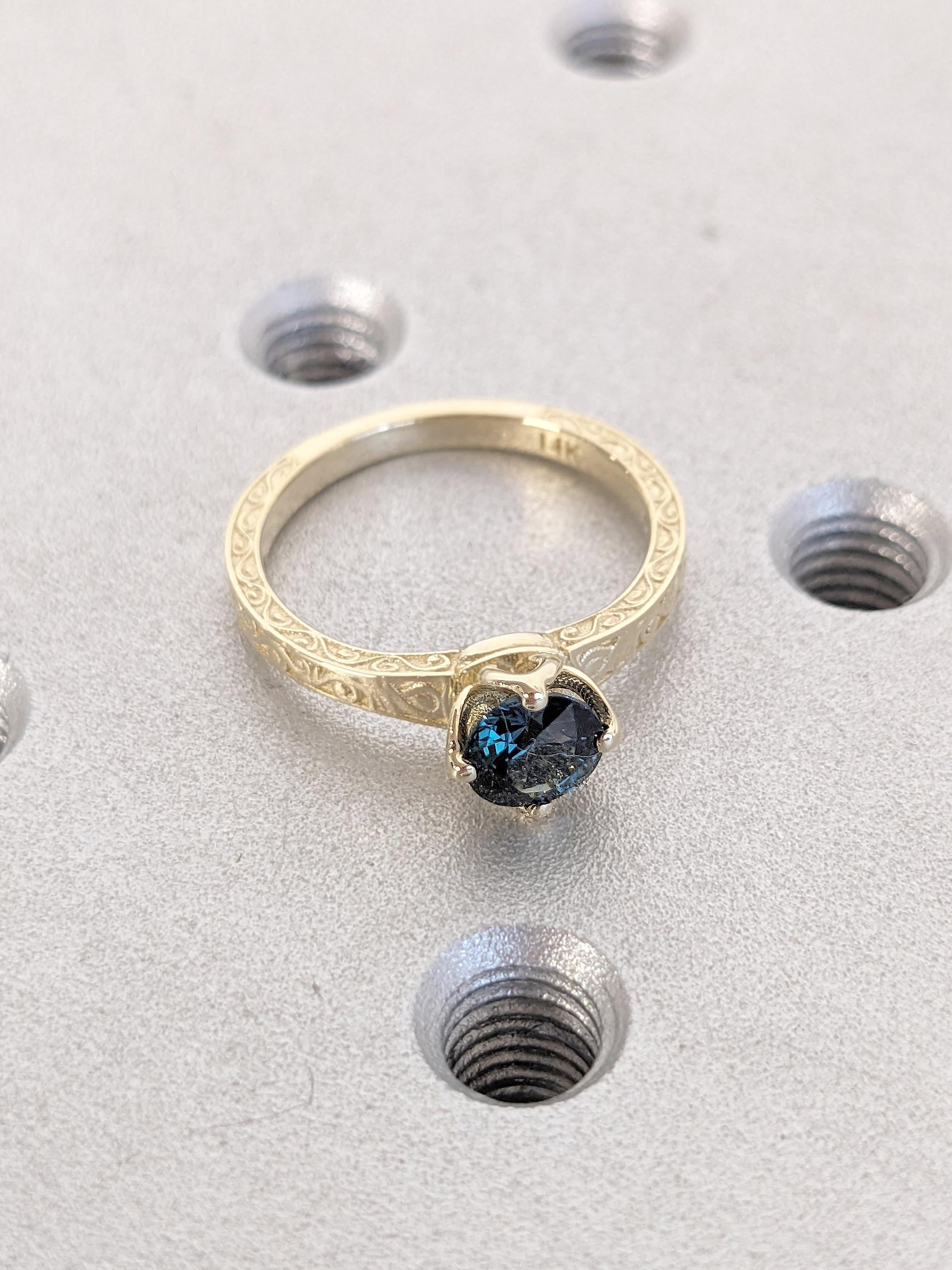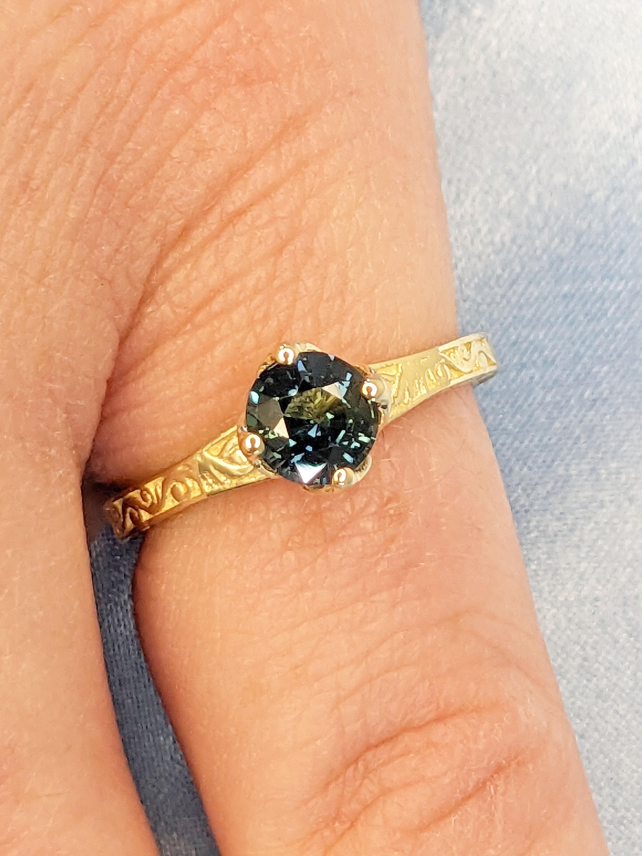 0.5ct Blue Green Sapphire Bridal Ring | Vintage Tulip Floral Engagement Ring | Handmade Filigree Wedding Band | Nature Inspired Promise Ring