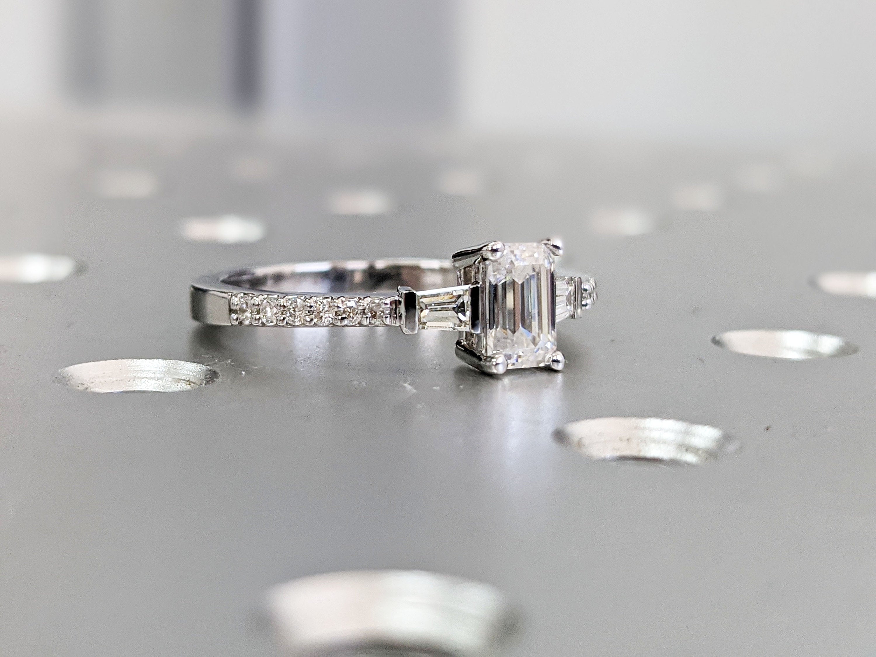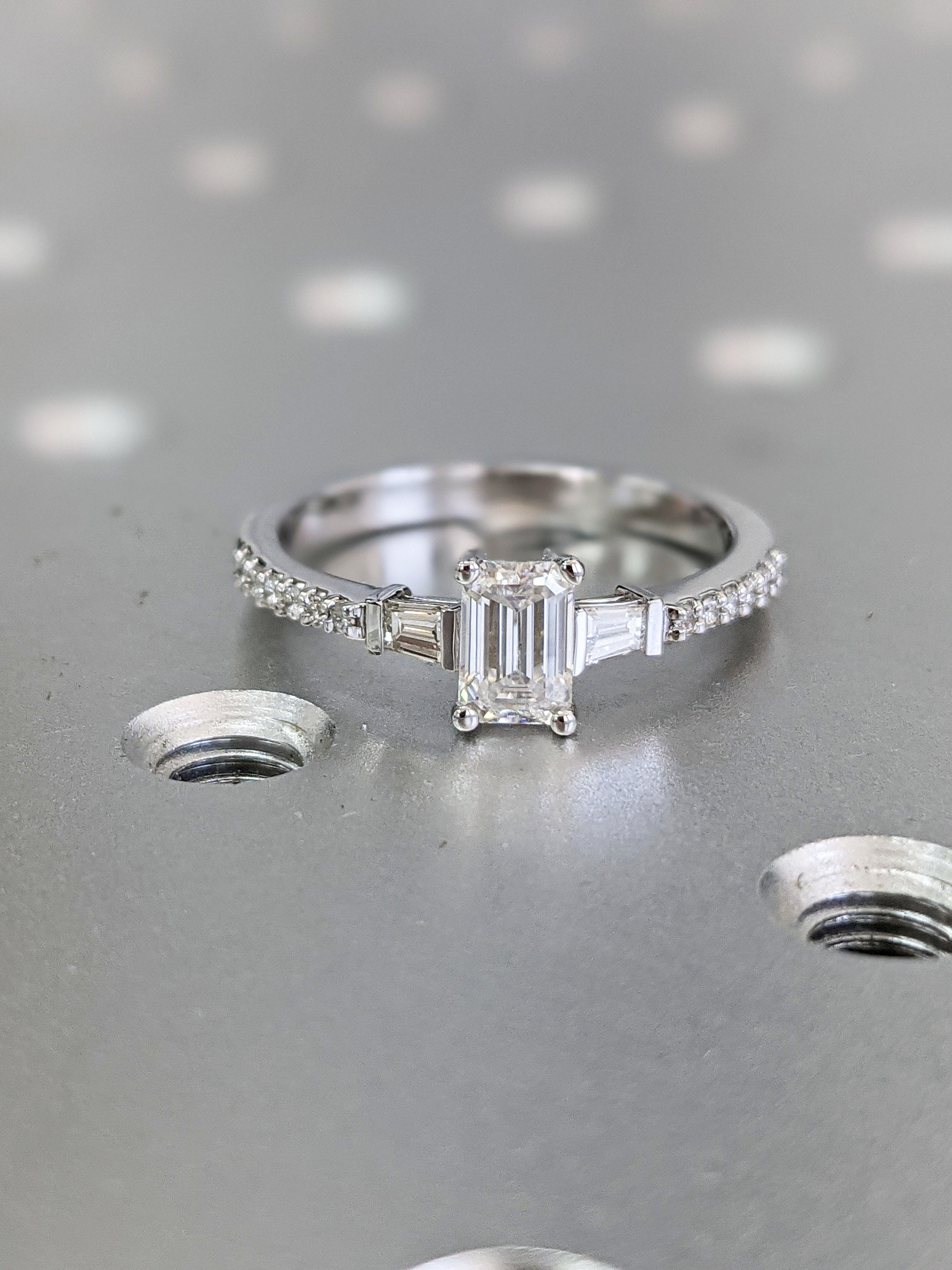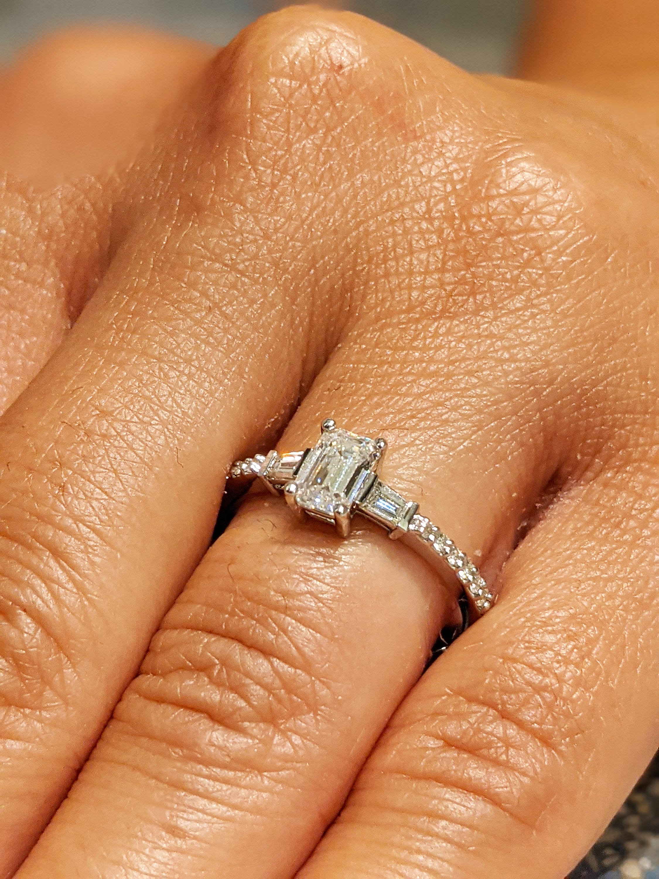 0.5ct Emerald Cut Engagement Ring, Emerald Cut Ring, Baguette Engagement Ring, Half Eternity 2.5 Ct Solid 14k Gold Moissanite Engagement