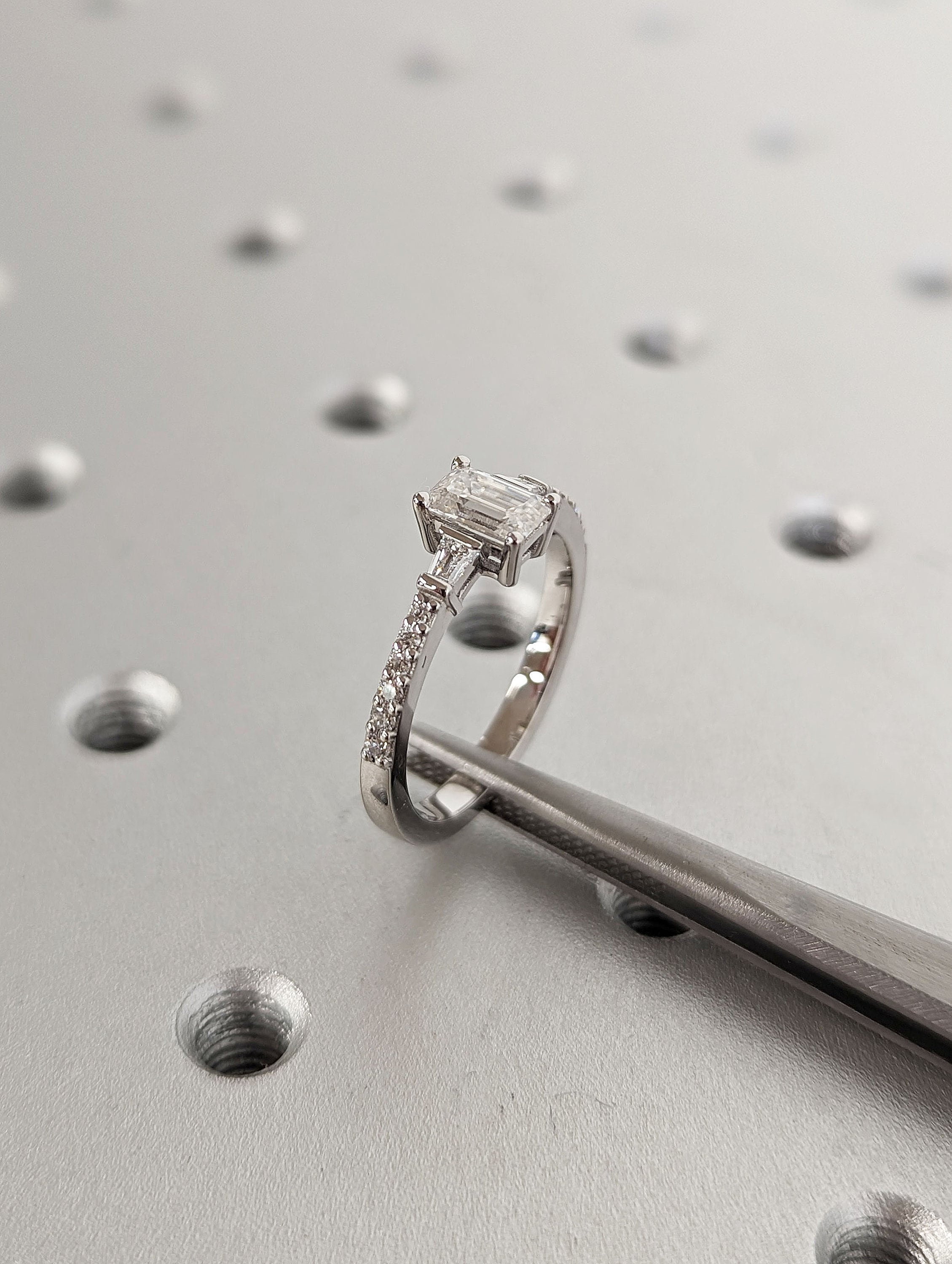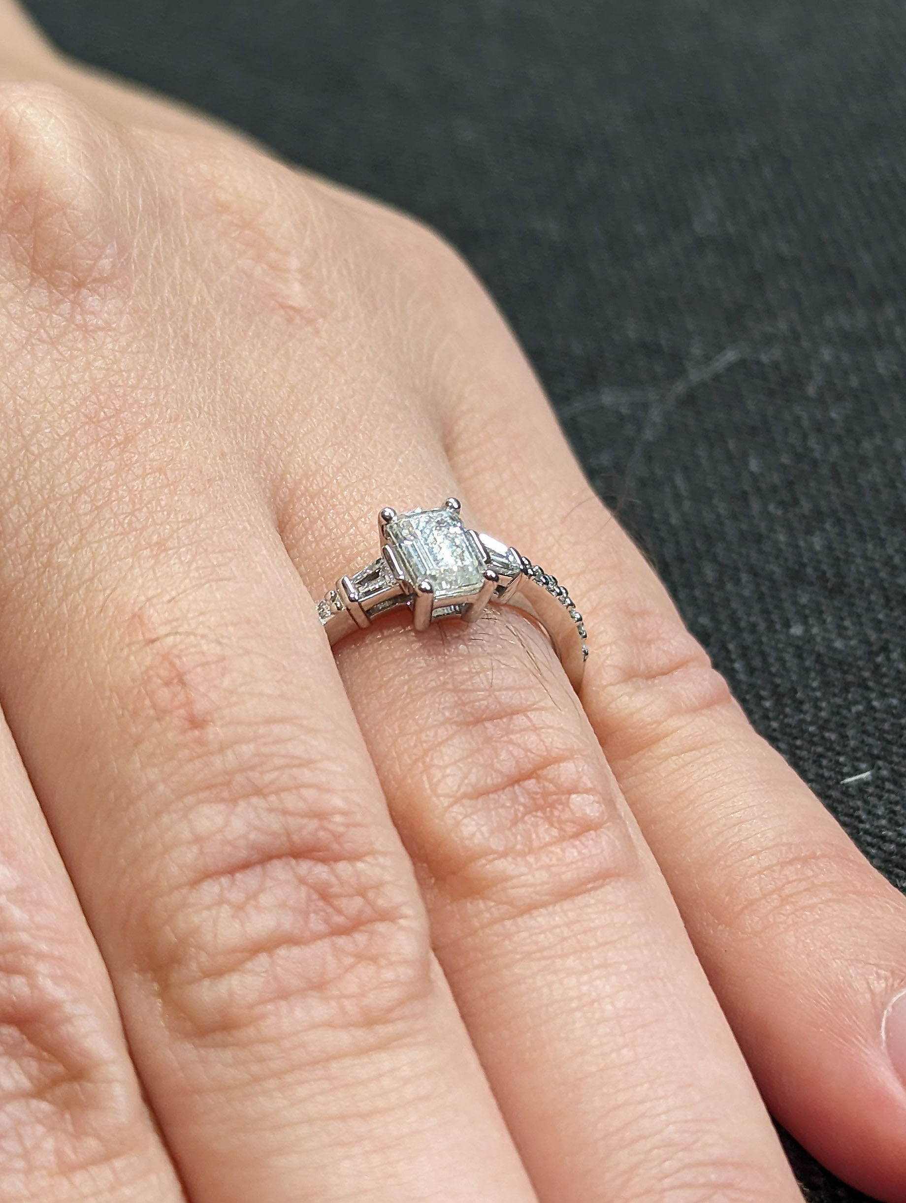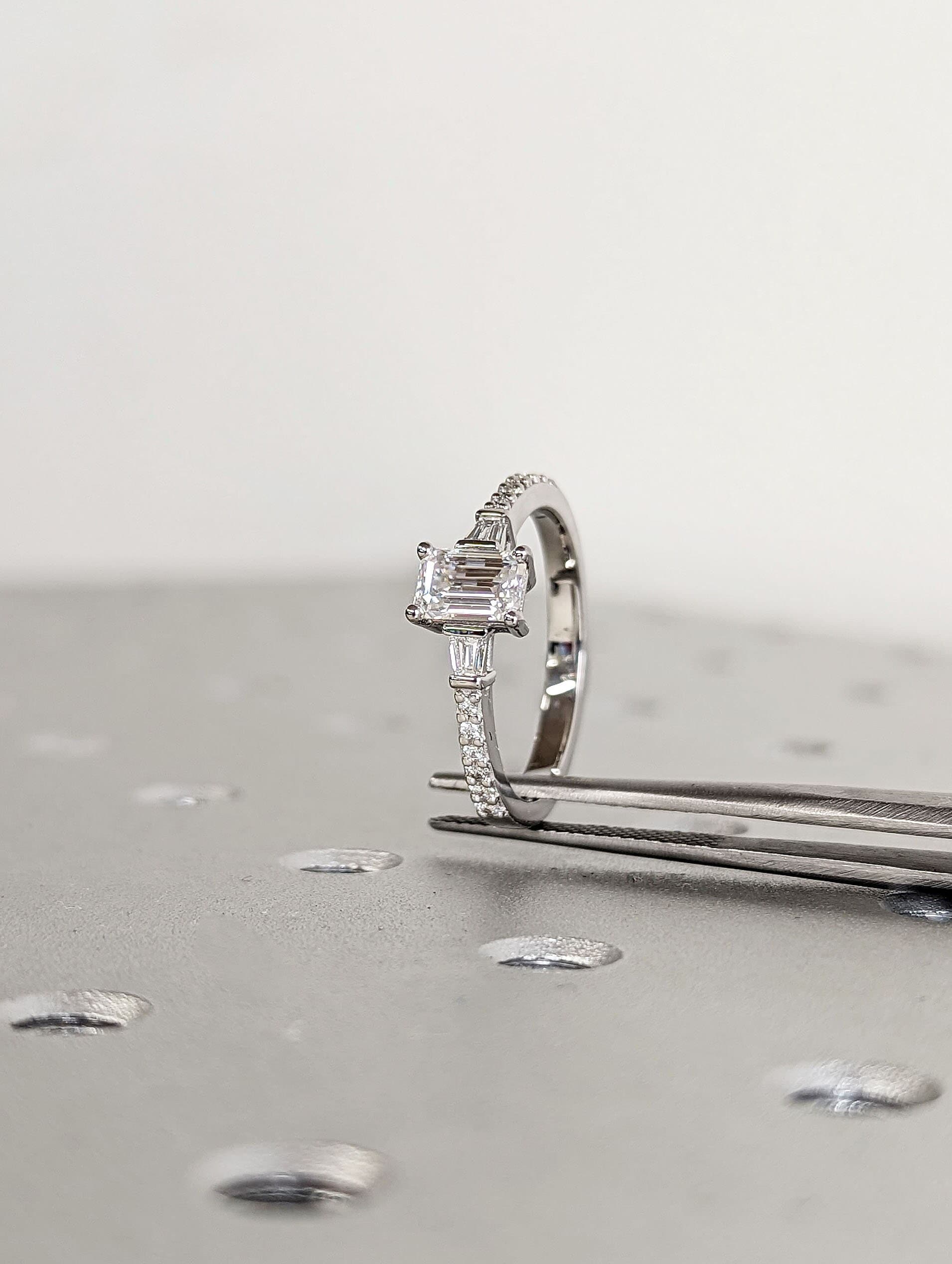 0.5ct Emerald cut Moissanite Wedding Anniversary Ring | 14K White Gold Baguette Diamond Proposal Ring | Unique Bridal Jewelry for Her