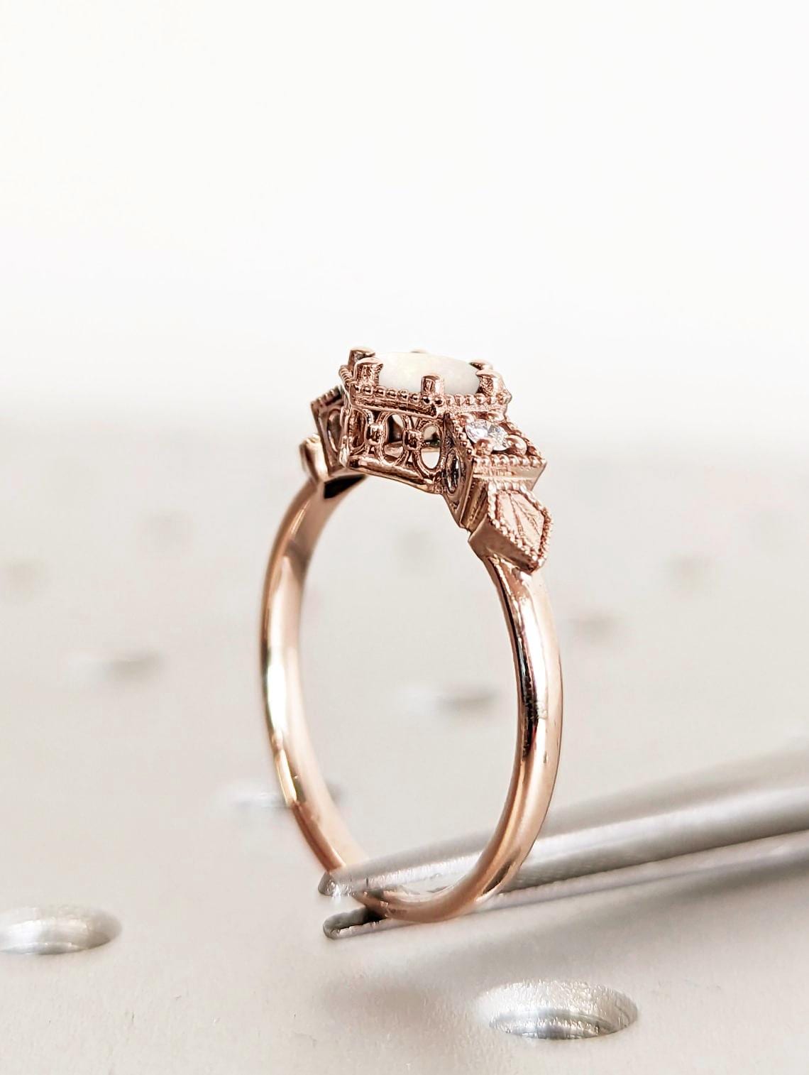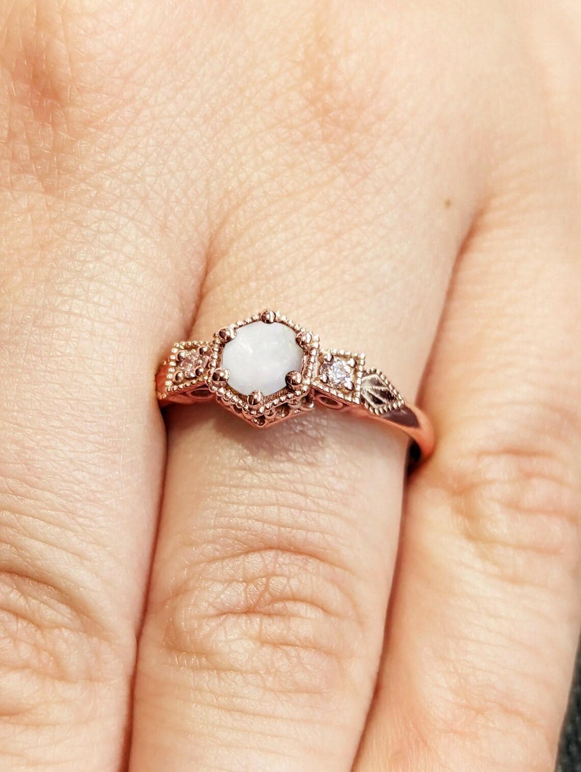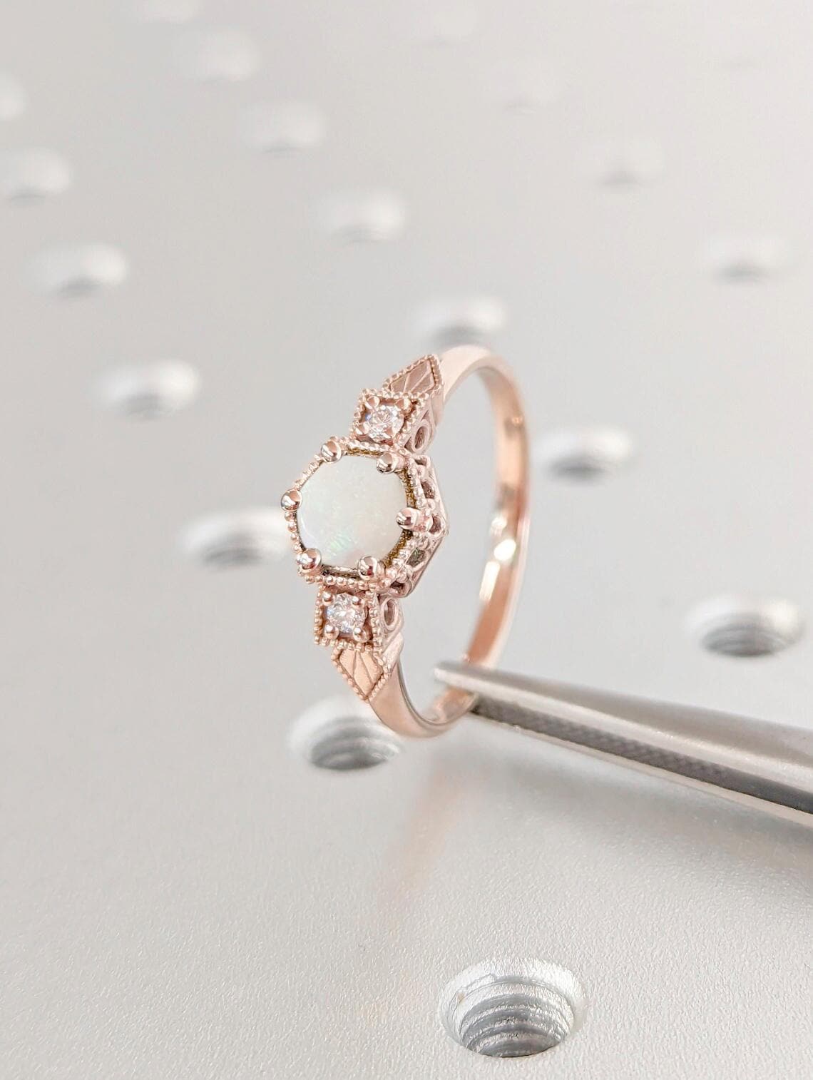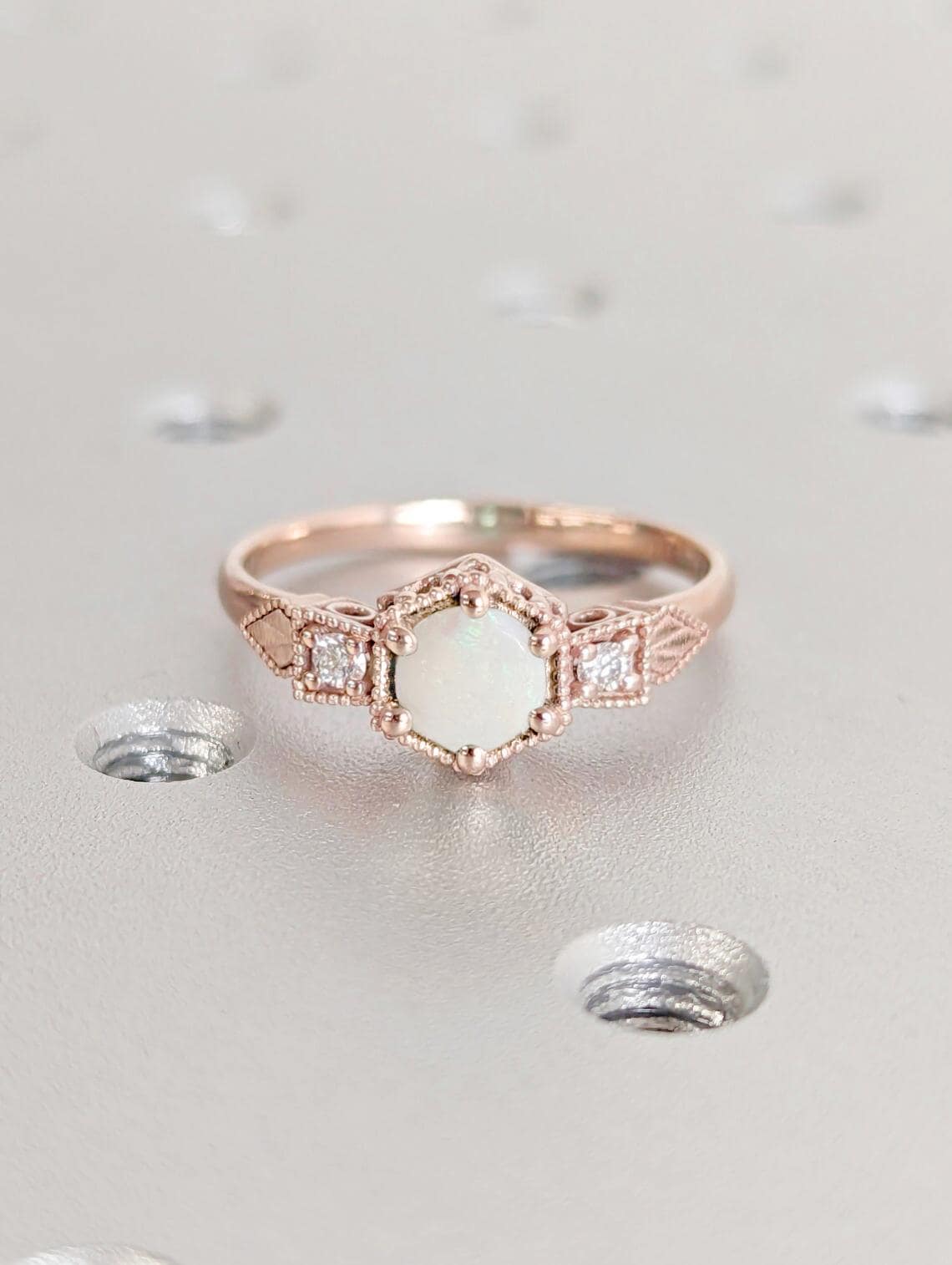 0.5ct Round cut Opal Engagement Ring | 14k Rose Gold Vintage Promise Ring | Milgrain Wedding Ring | White Gemstone Ring | Woman Bridal Ring