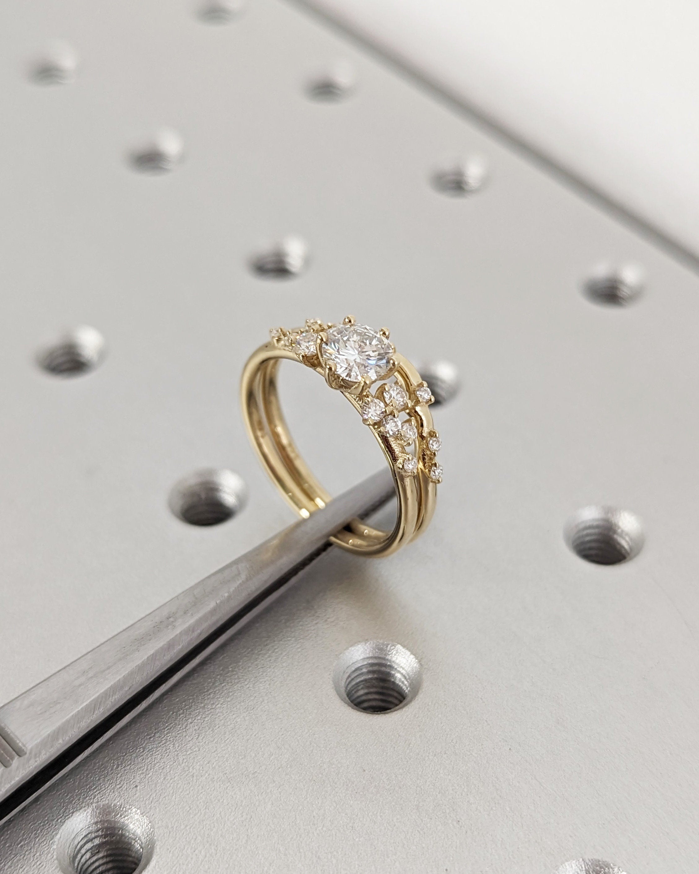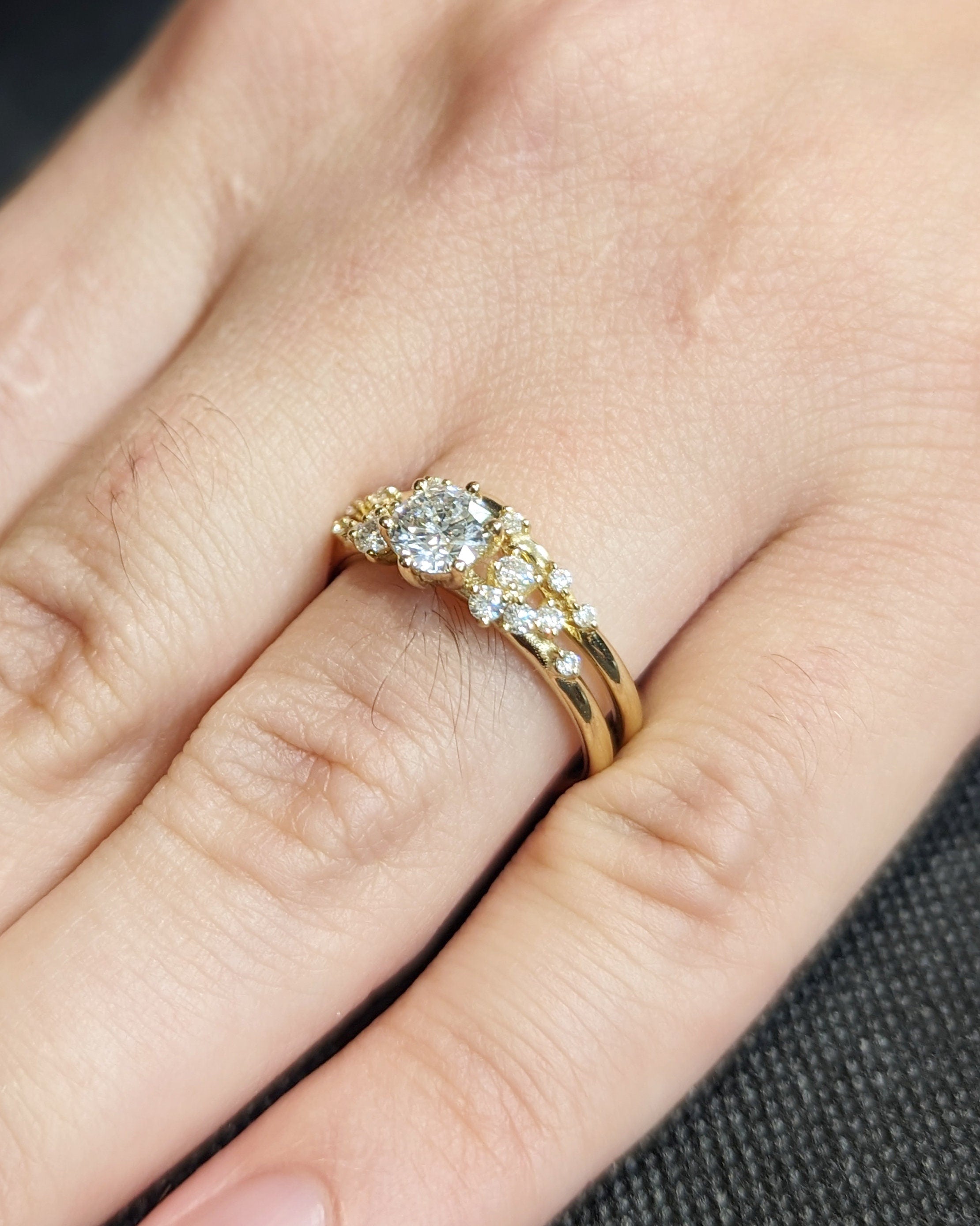 0.5ct Round Moissanite 14K Yellow Gold Engagement Ring | Unique Snowdrift 6 prong Moissanite Cluster Proposal Ring | Wedding Ring for Women