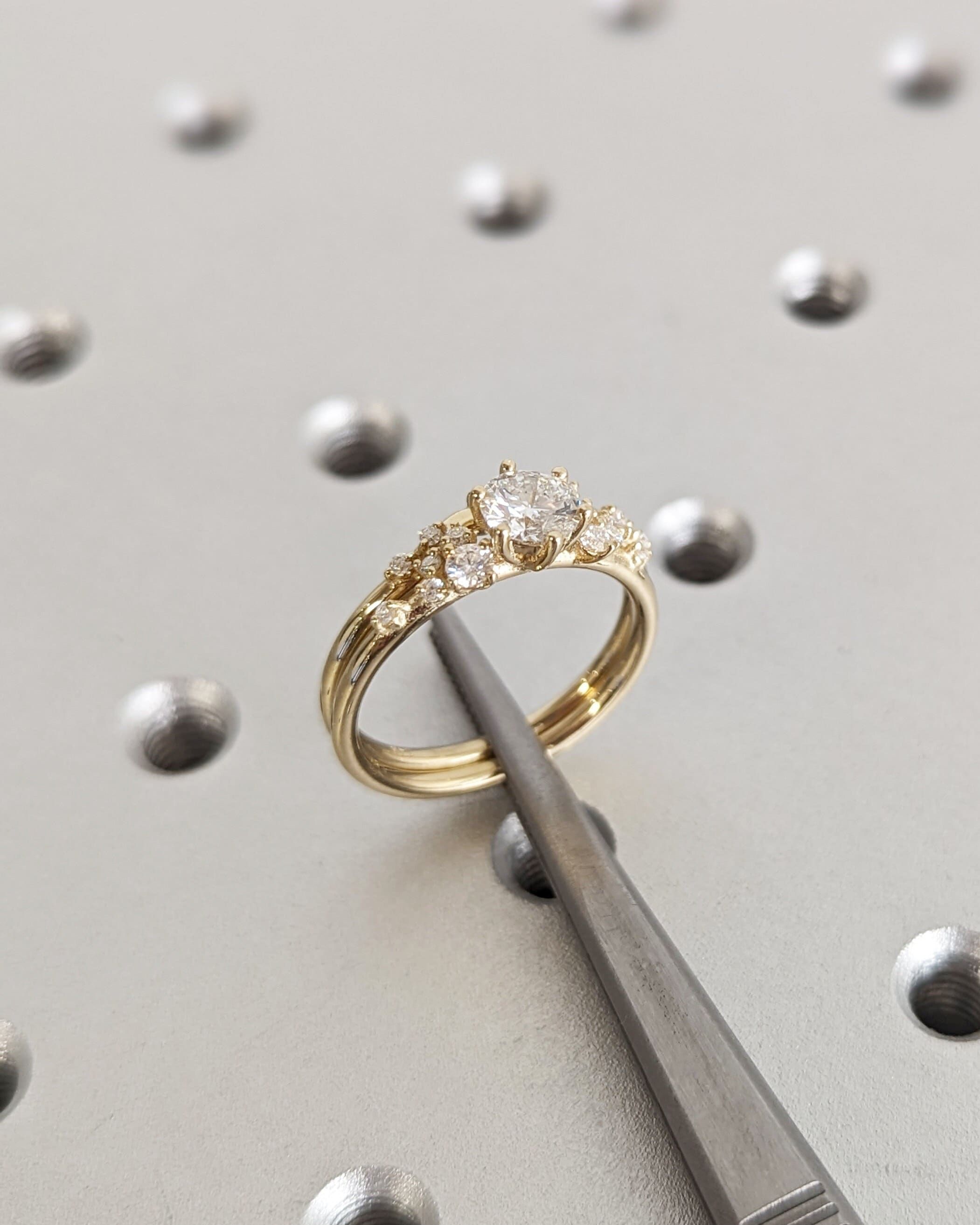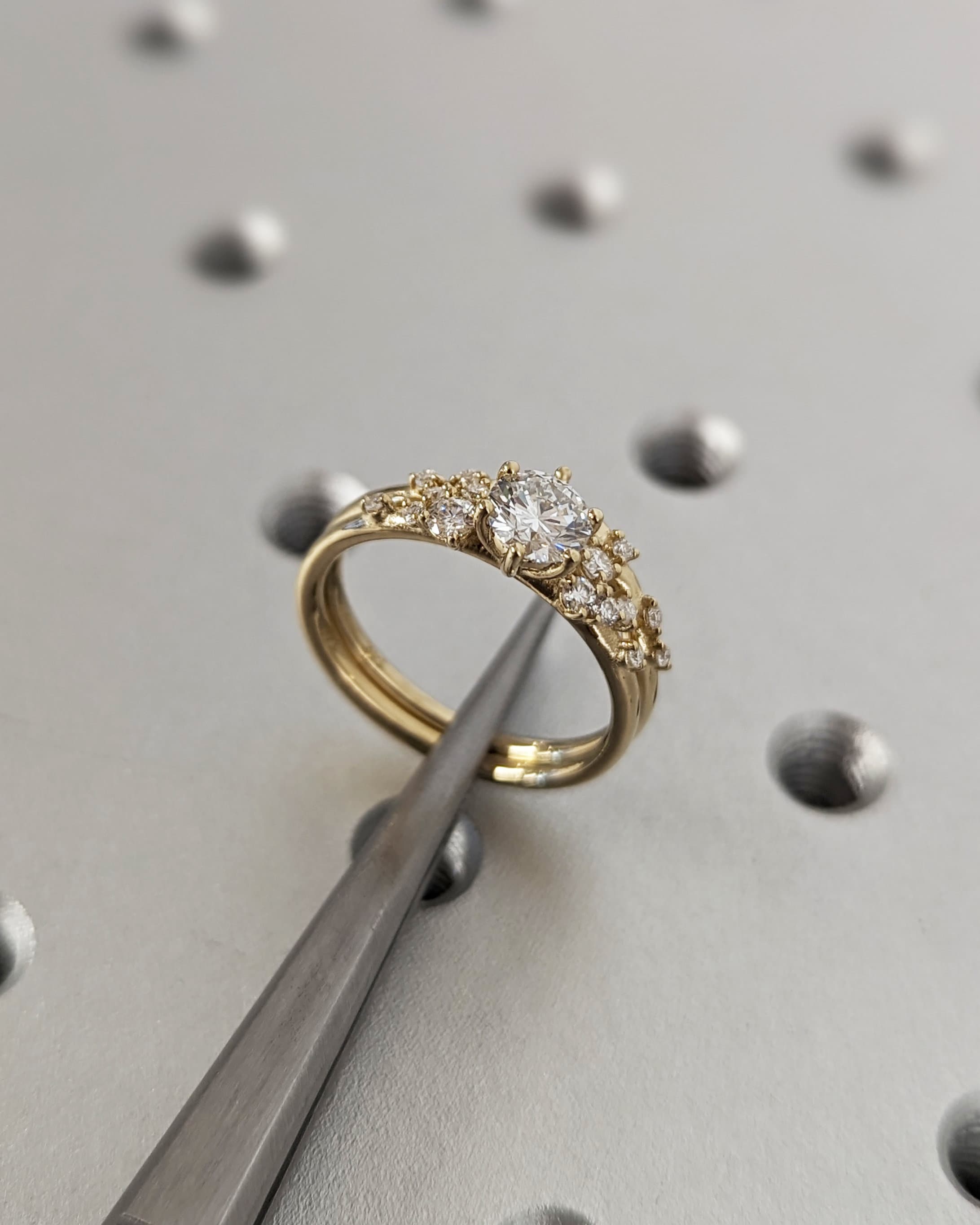 0.5ct Round Moissanite 14K Yellow Gold Engagement Ring | Unique Snowdrift 6 prong Moissanite Cluster Proposal Ring | Wedding Ring for Women