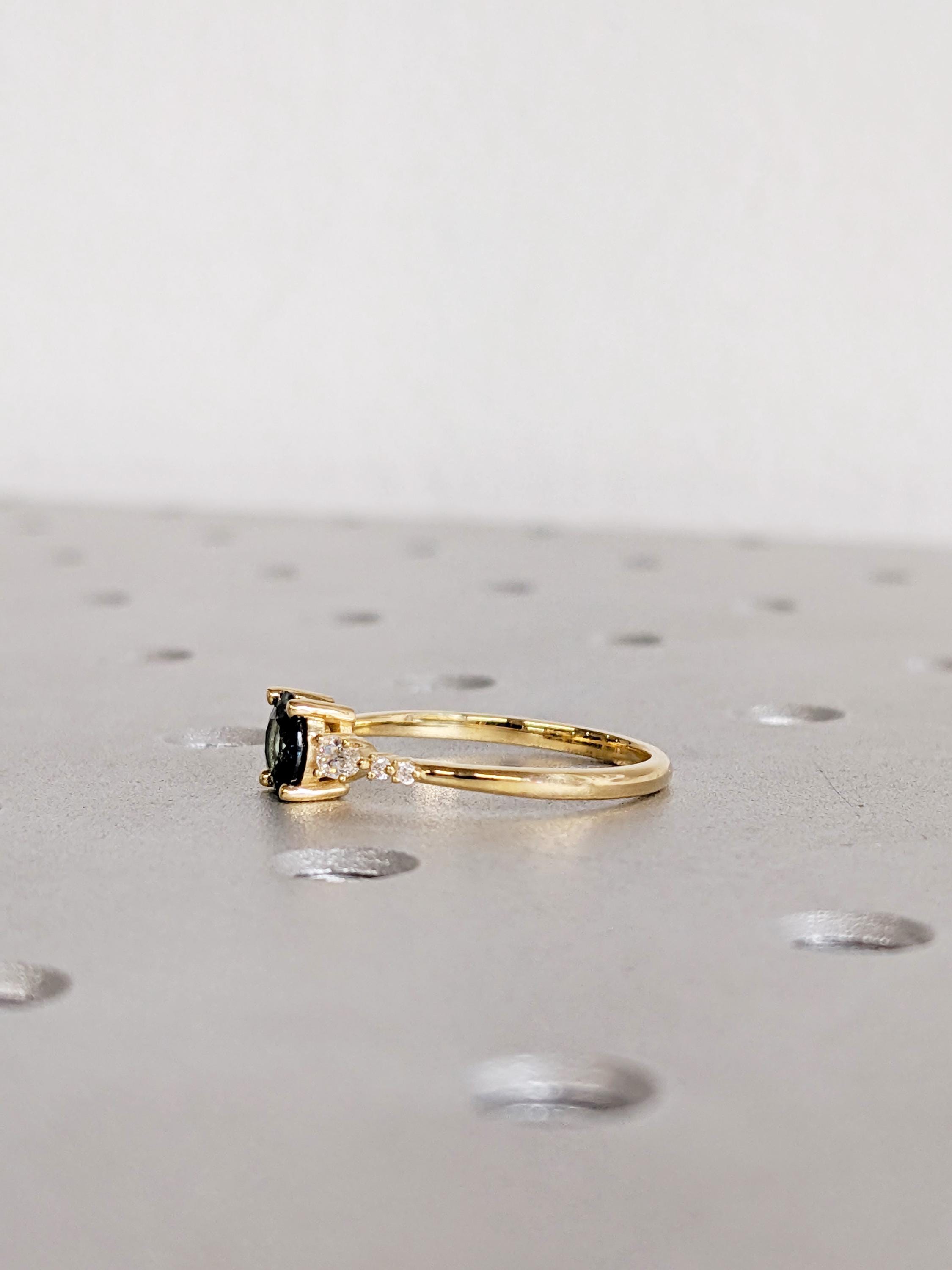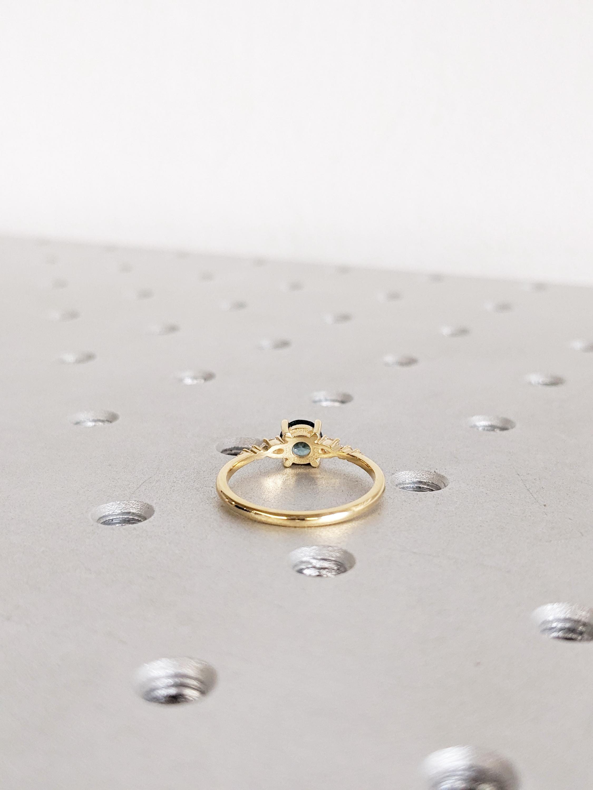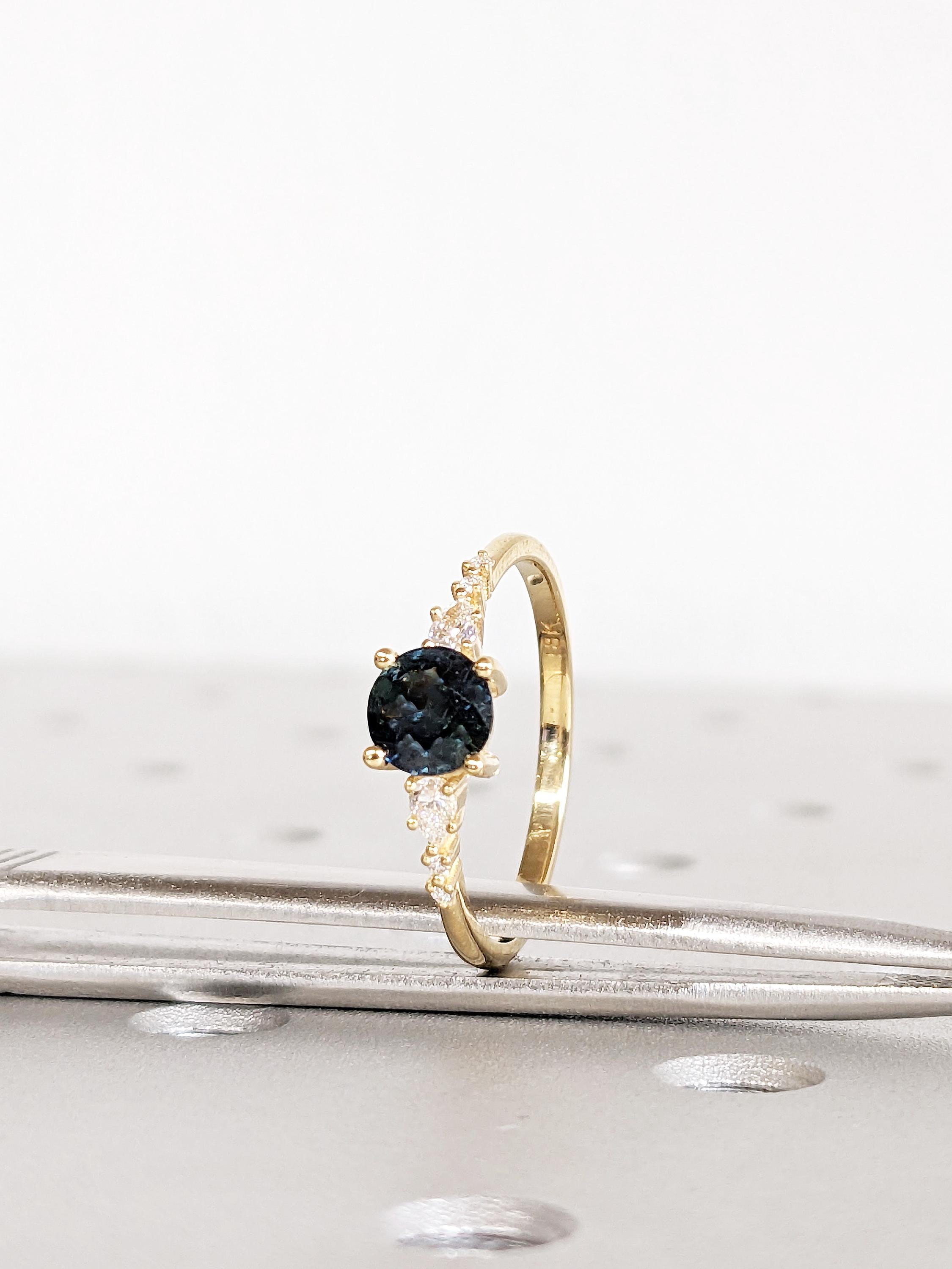 0.5ct Unique Round Sapphire Engagement Ring, 18K Yellow Solid Gold Sapphire Wedding Ring, Teal Peacock Sapphire Diamond Cluster Ring For Her