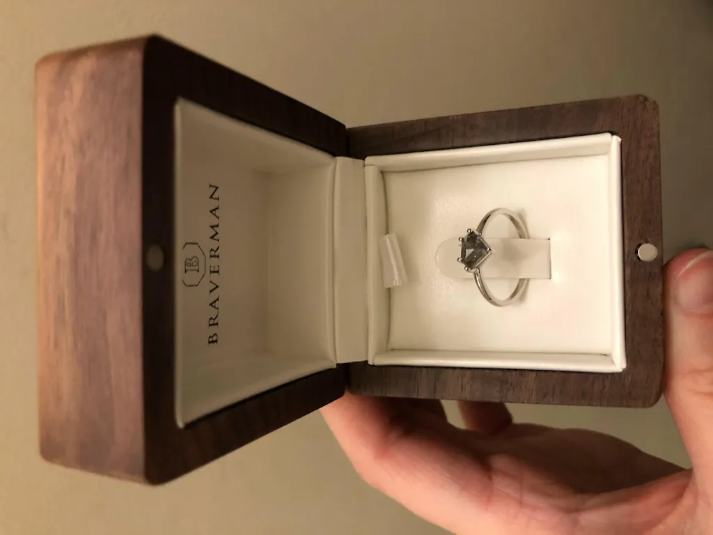 0.75 Carat Raw Salt and Pepper Diamond, Pentagon Diamond Ring, Unique Engagement Bridal Ring, Black, Gray Pear, 14k Yellow, Rose White Gold