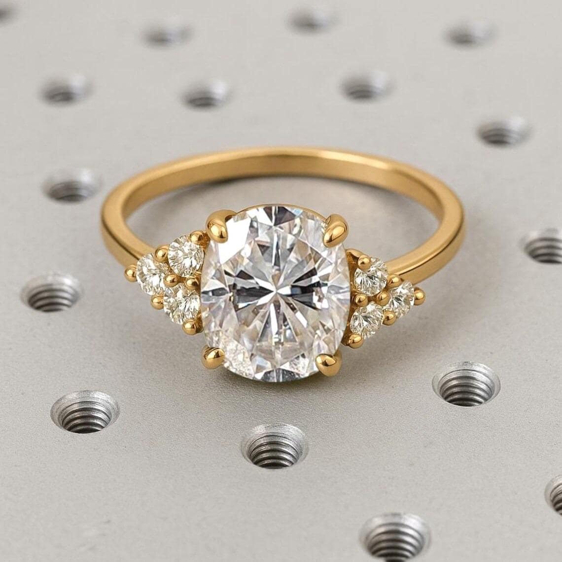 1-2 Carat CVD Diamond Oval cut Engagement Ring | Moissanite Cluster Solid Gold Delicate Wedding Ring