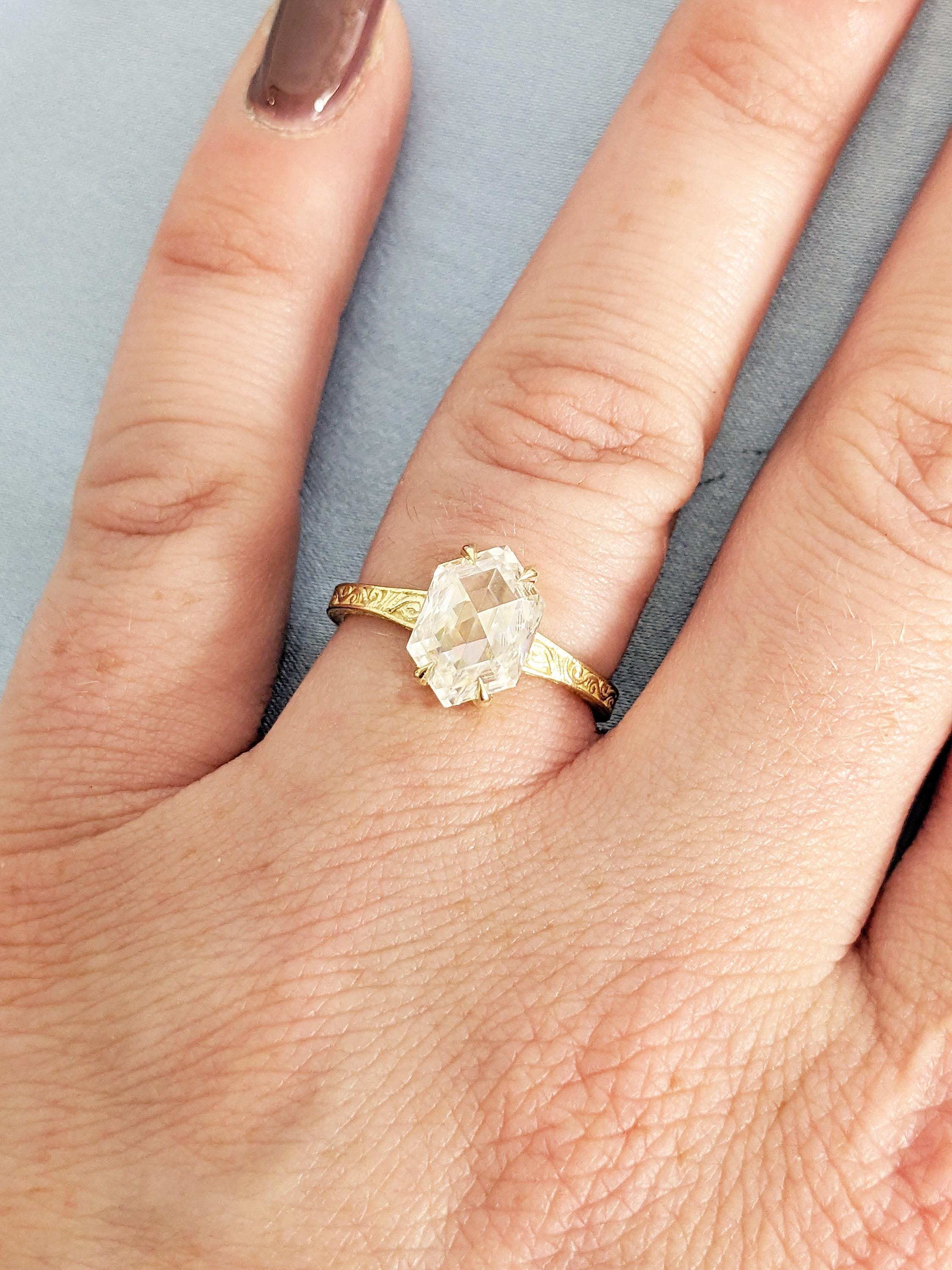 1, 2 Carat Lab Diamond Ring, Vintage Style 14k Solid Gold Hexagon Engagement Ring