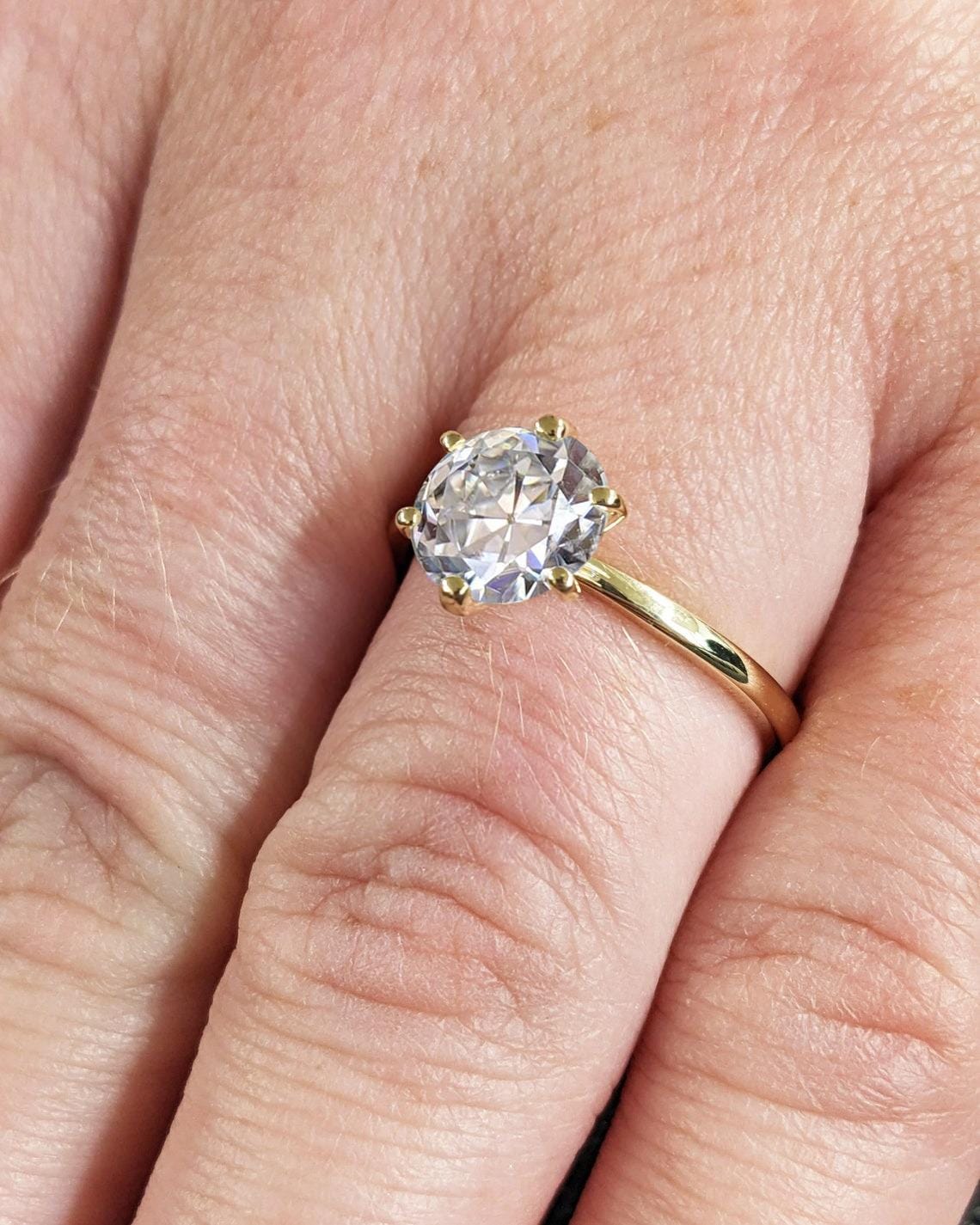 1-2 Carat Old Mine cut CVD Diamond Engagement Ring | Round Lab Grown Diamond Solitaire Ring | 14K Solid Yellow Gold Wedding Anniversary Ring