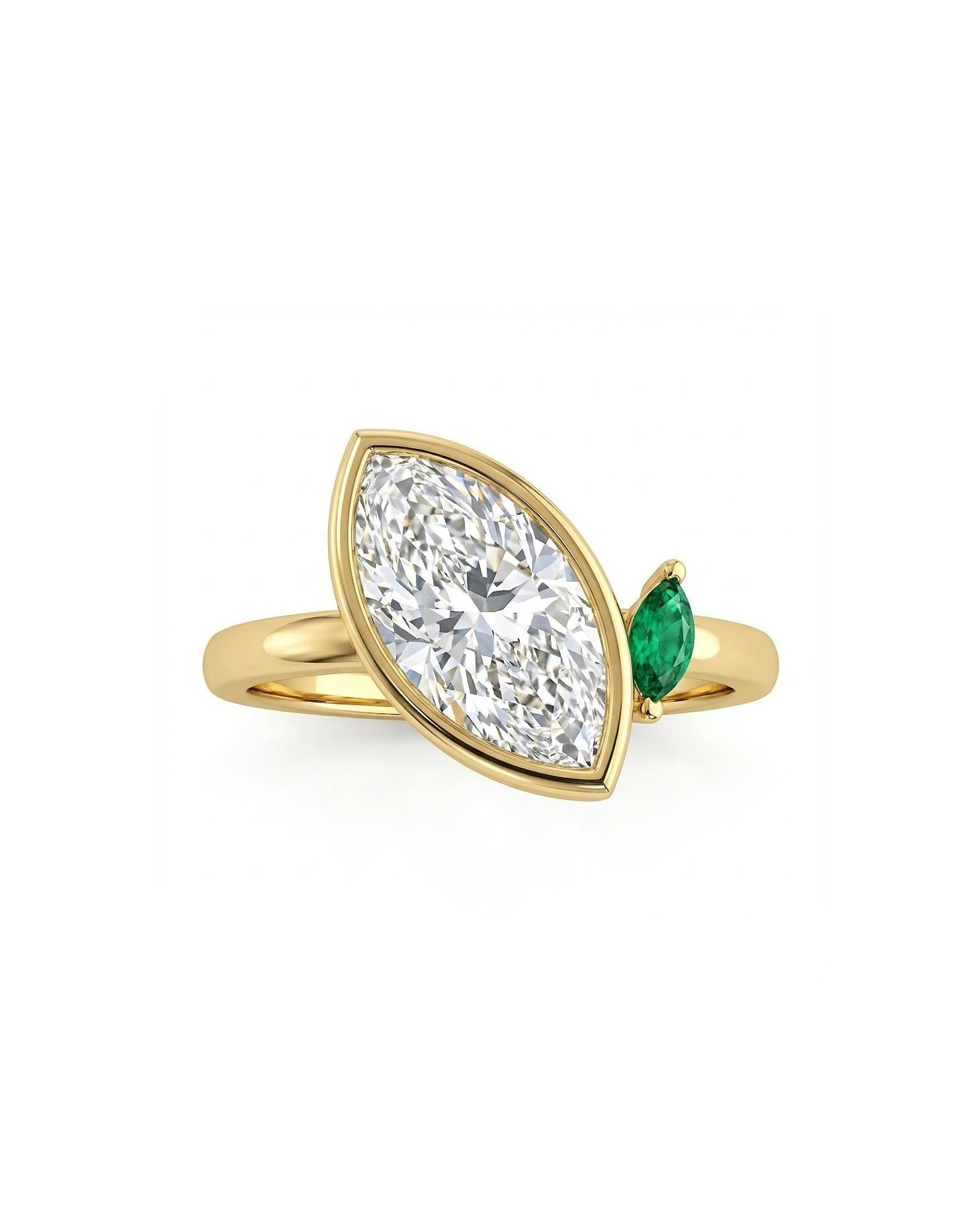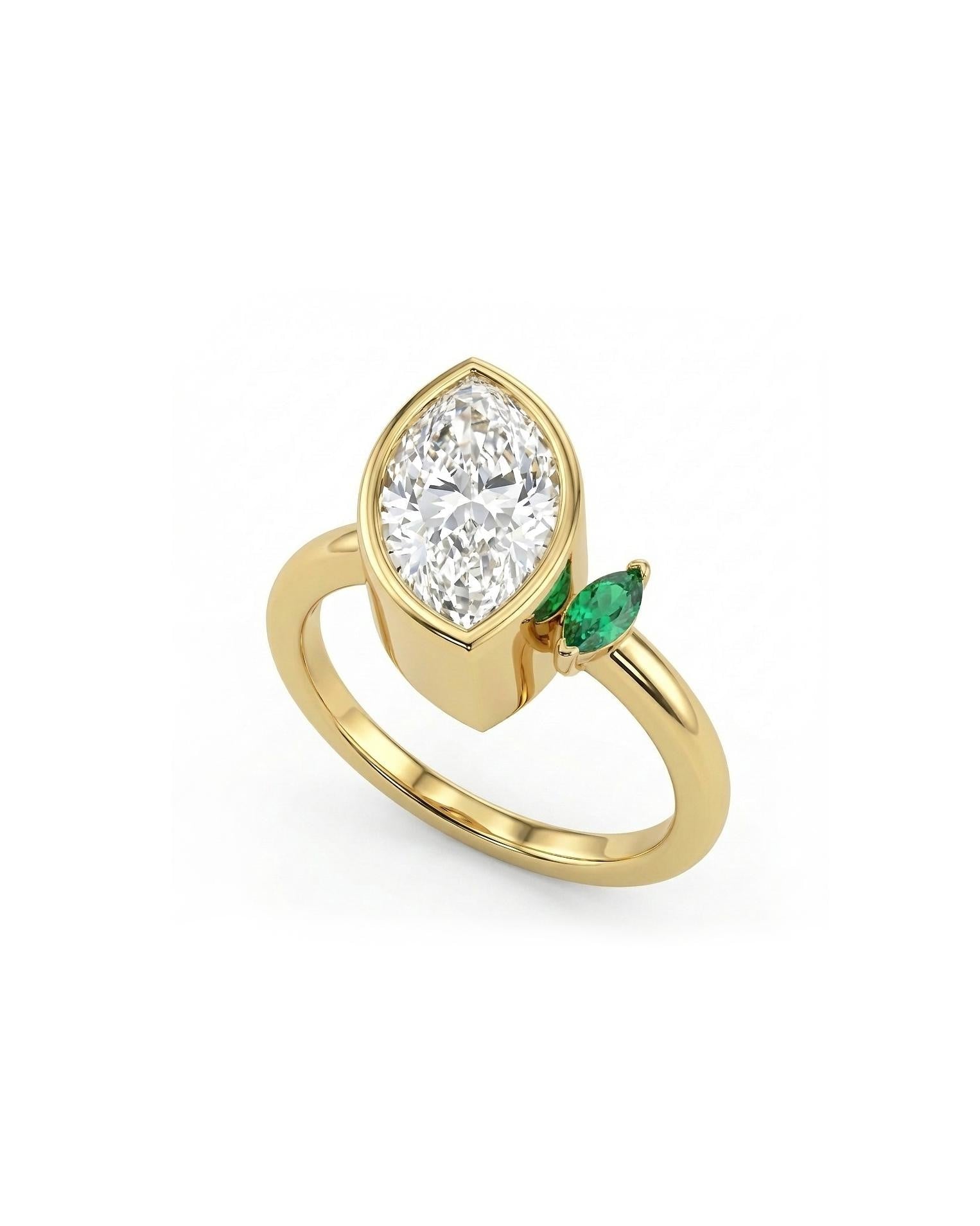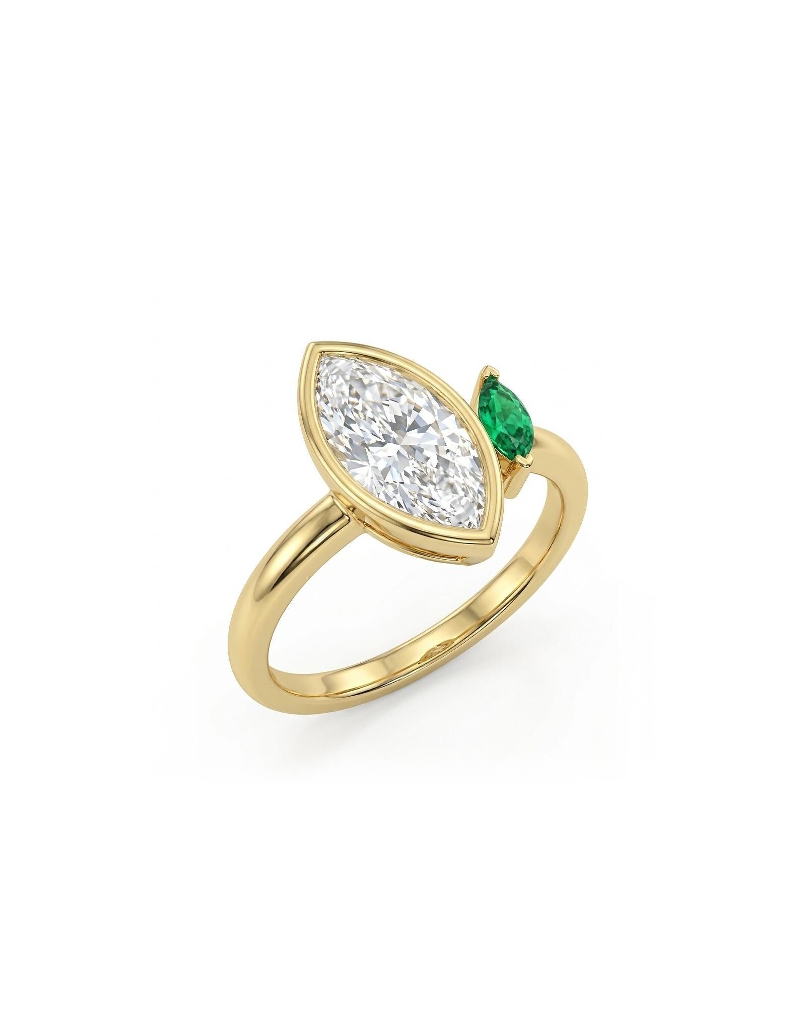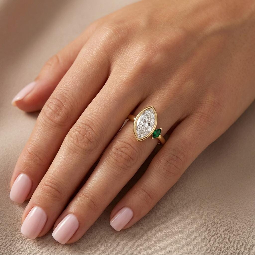 1-4CT Marquise Cut Moissanite Engagement Ring | Moissanite and Green Emerald Ring | Solid Gold Wedding Anniversary Rings for Women