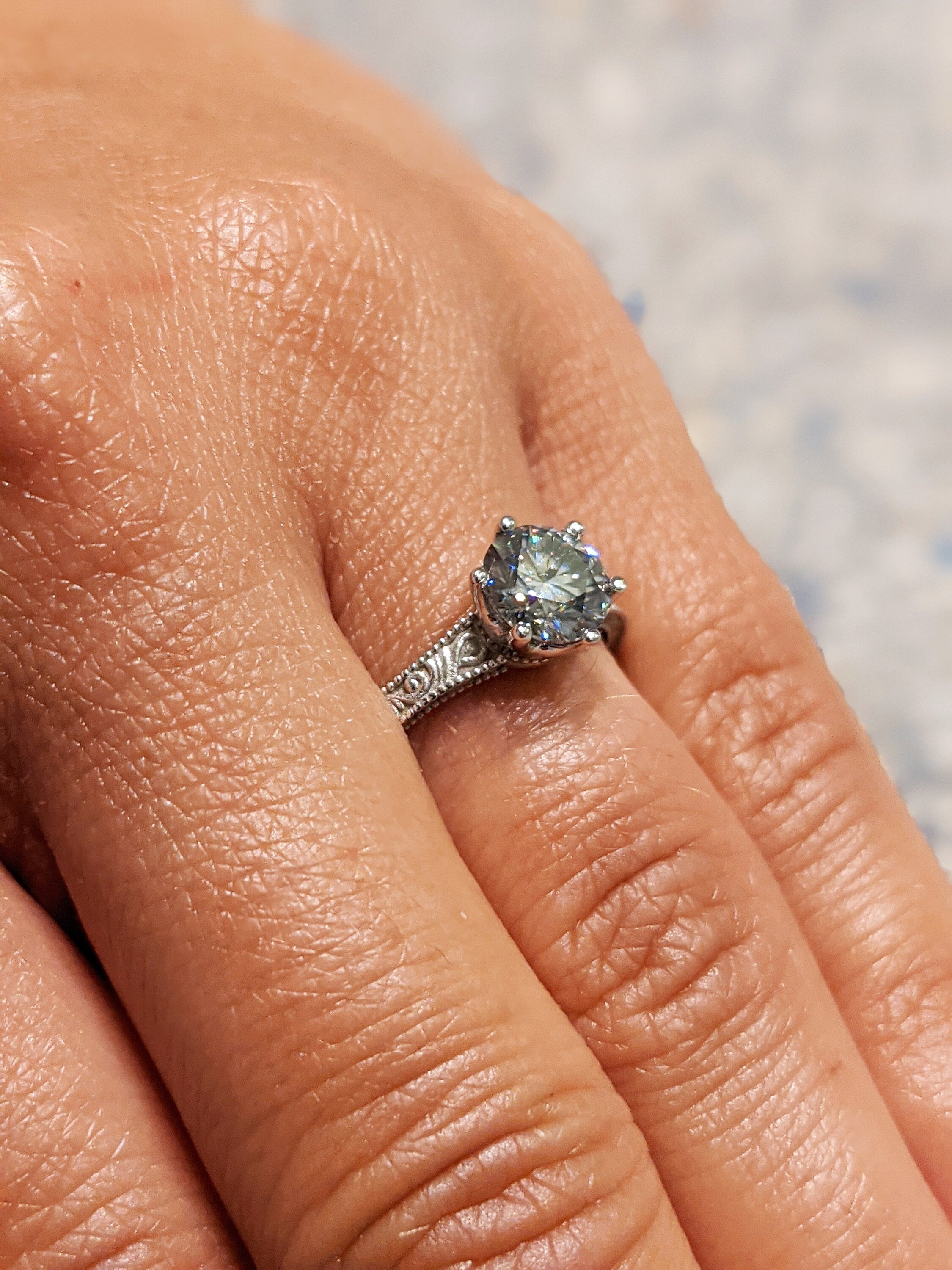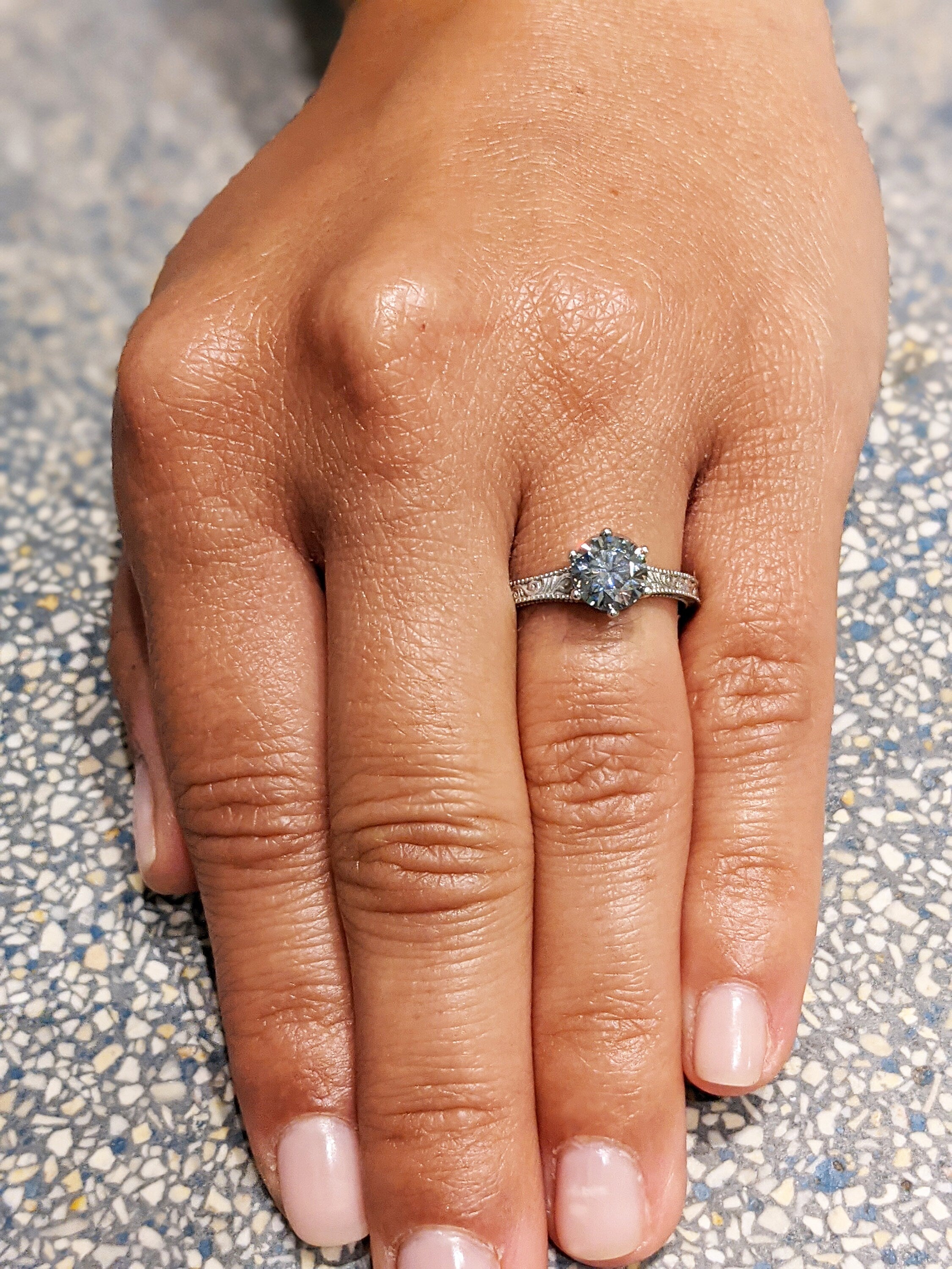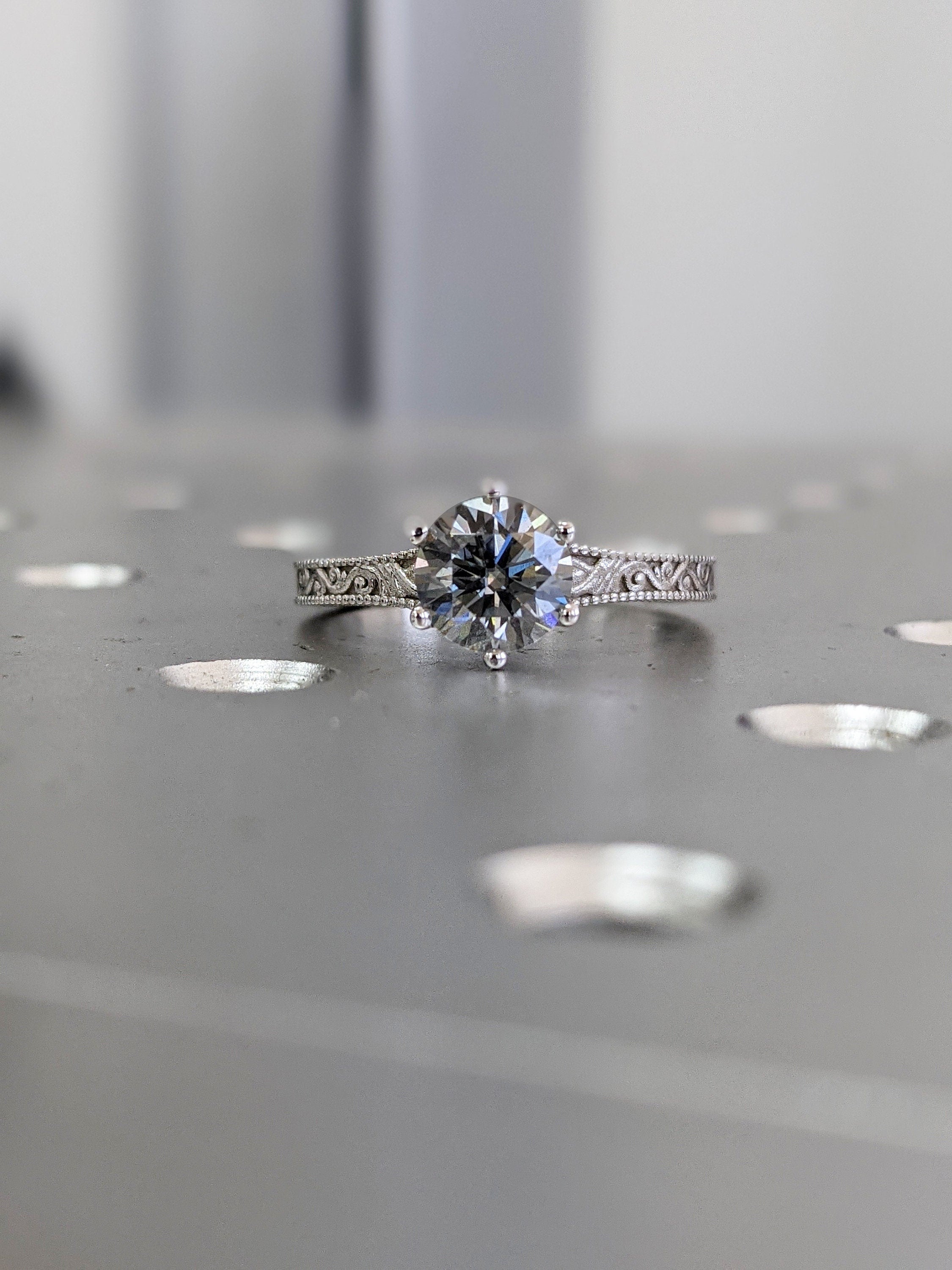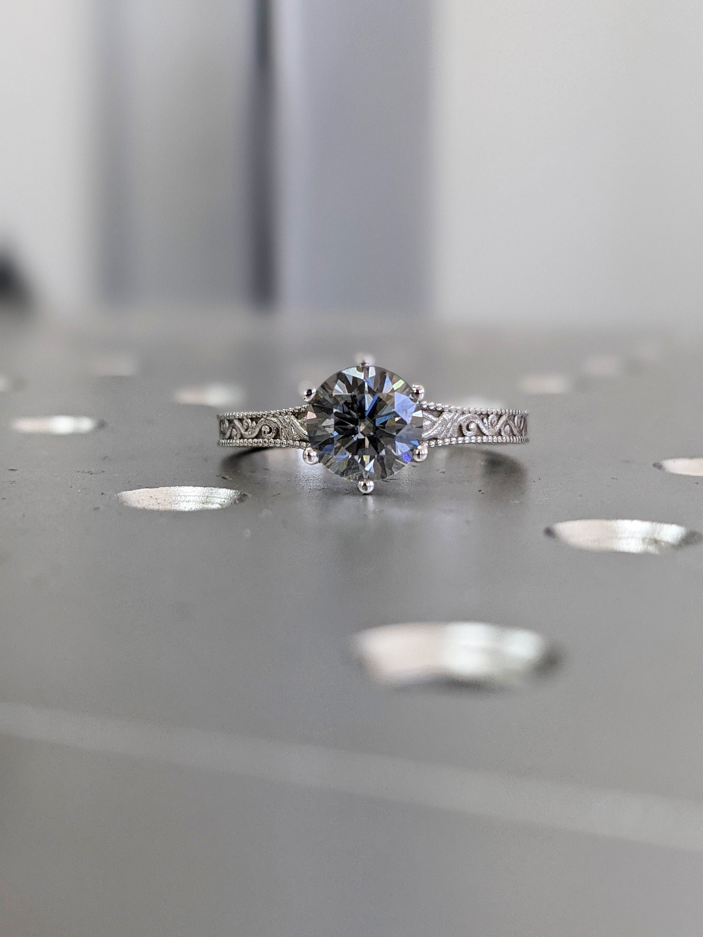 1.0 ct. Round Grey Moissanite Engagement Ring, Gray Moissanite Bridal Ring, Solid Gold 14k/18k Wedding Ring, Light Gray Grey Moissanite
