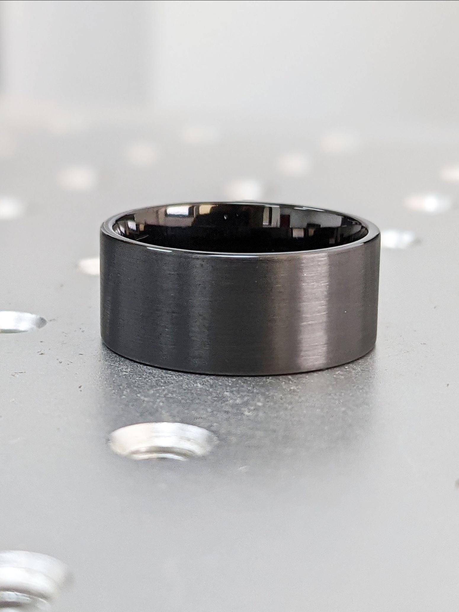 10mm Tungsten Carbide Ring, Black Flat Top Brushed Ring, Modern Men’s Wedding Ring, Custom Engagement Band