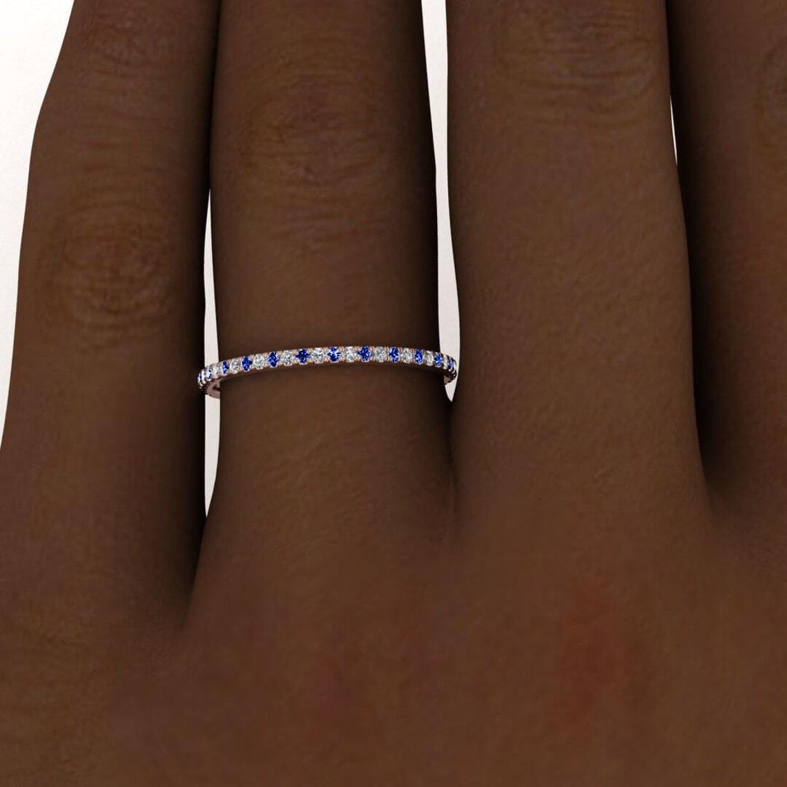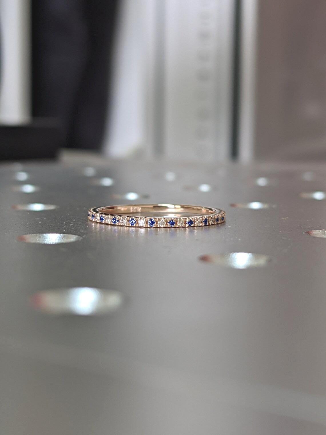 14k 18k Rose Gold Eternity Ring for Women | Natural Sapphire and Lab Diamond Wedding Band | Blue Gemstone Thin Stacking Ring | Sapphire Ring