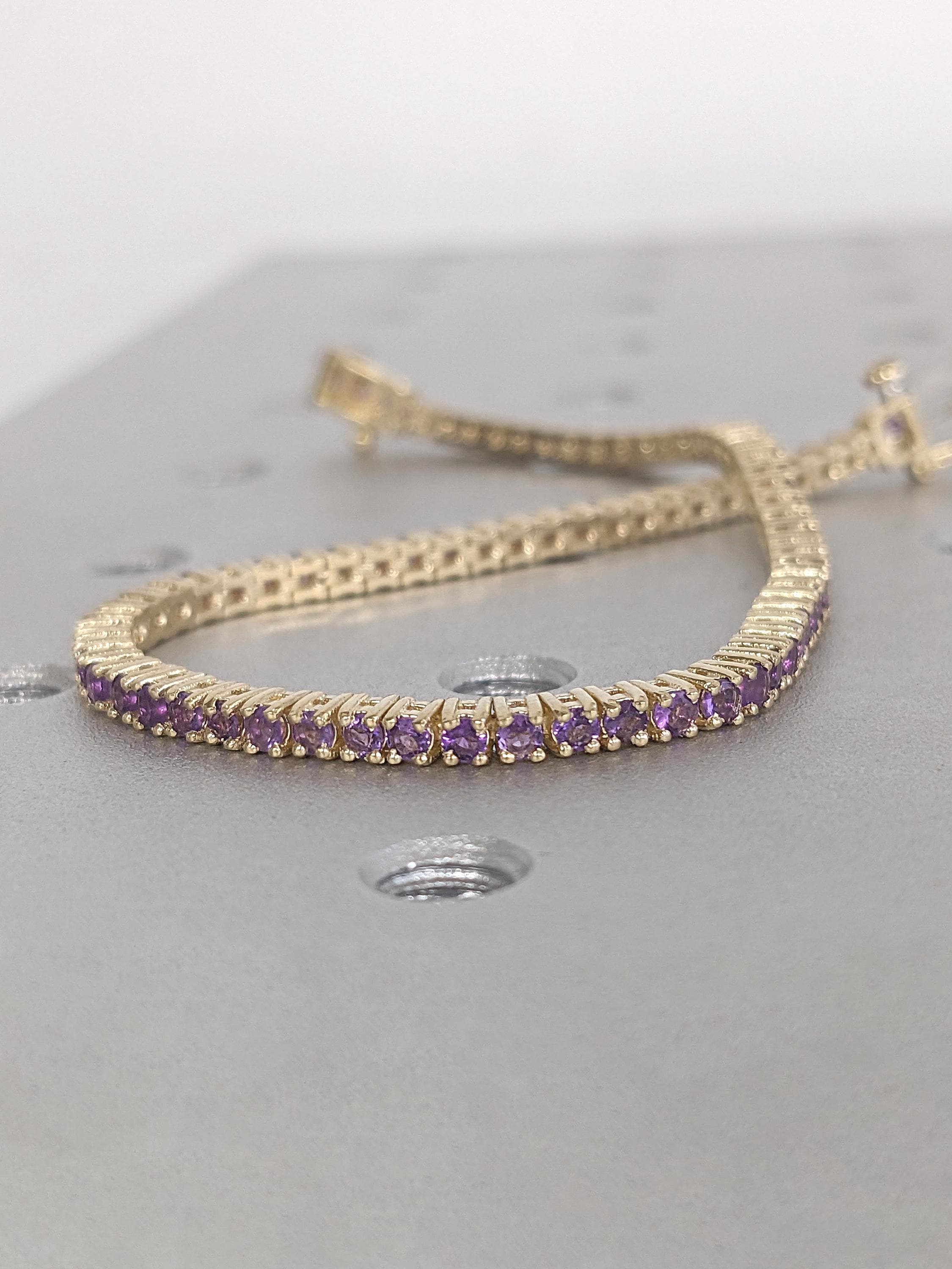 14k 18k Solid Gold Tennis Bracelet | Natural Amethyst Purple Gemstone Dainty Bracelet | February Birthstone Gift for Her or Him