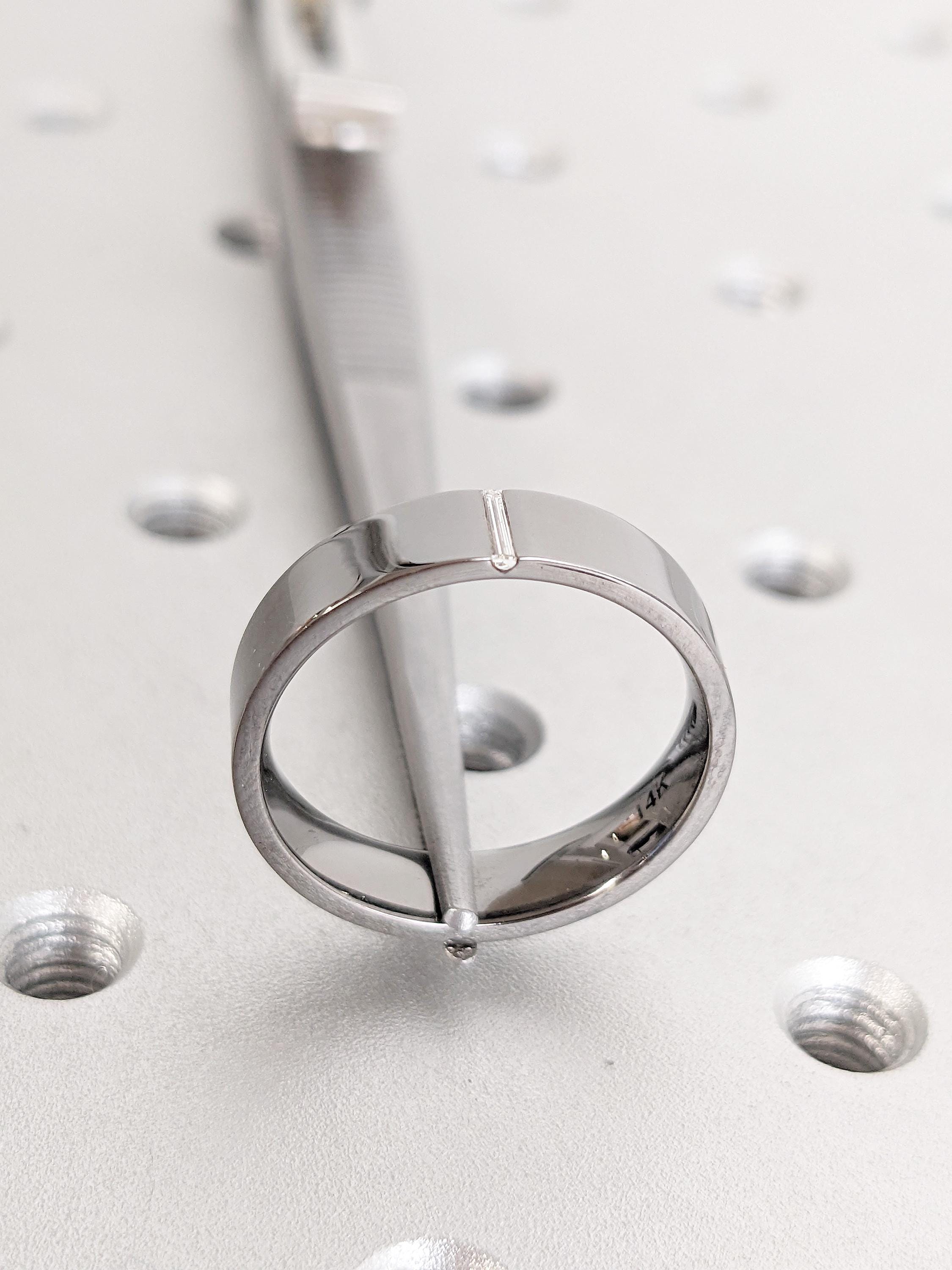 This elegant wedding band showcases baguette cut Diamonds in a smooth channel setting, designed for a modern and sophisticated look. With its sleek profile and timeless style, this band is perfect for weddings, anniversaries, or stacking, offering everyday comfort with refined brilliance