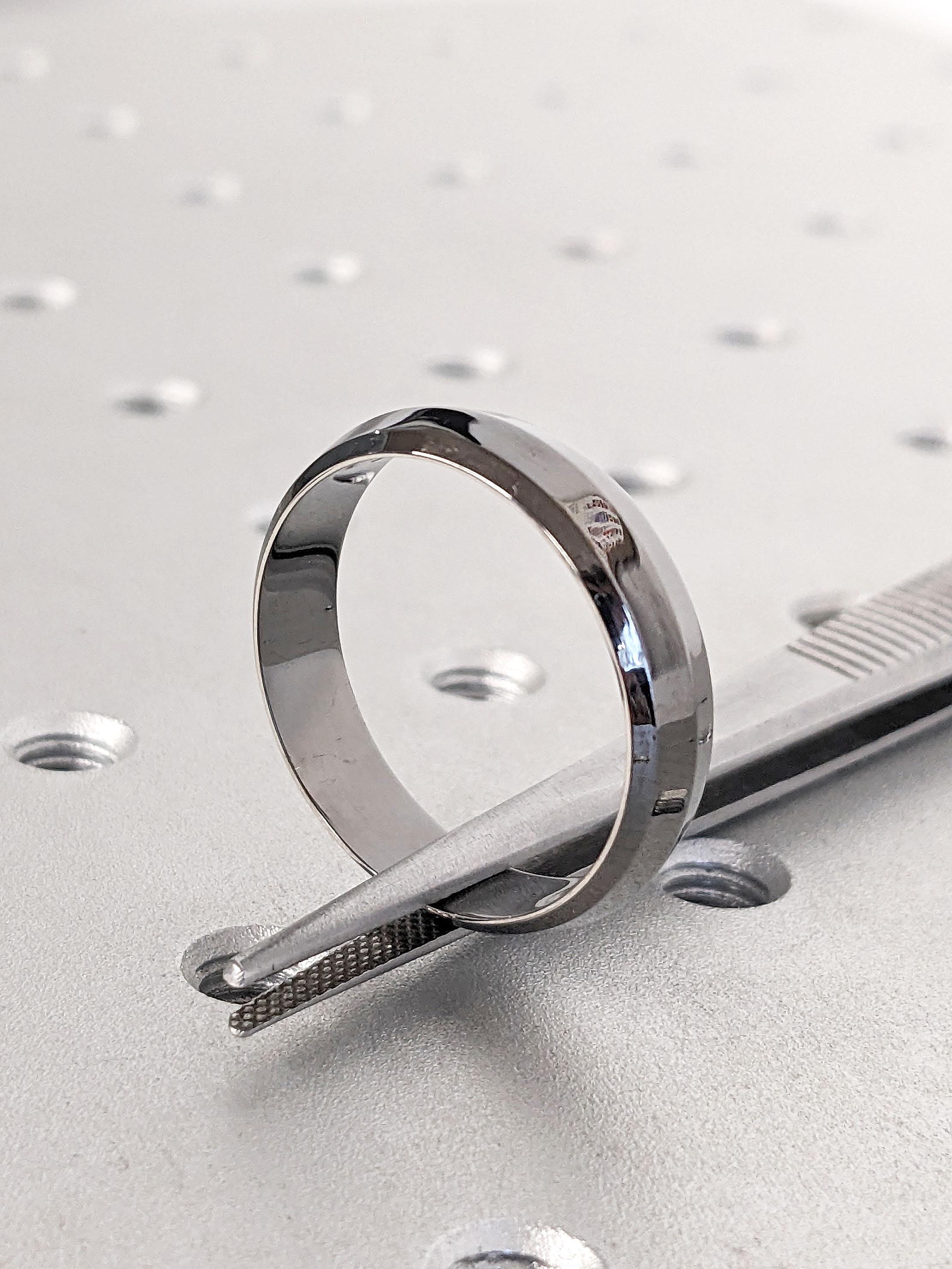 A minimalist, polished finishing, 6mm width ring for him, in classic beveled edge. A timeless gold band perfect for everyday wear.