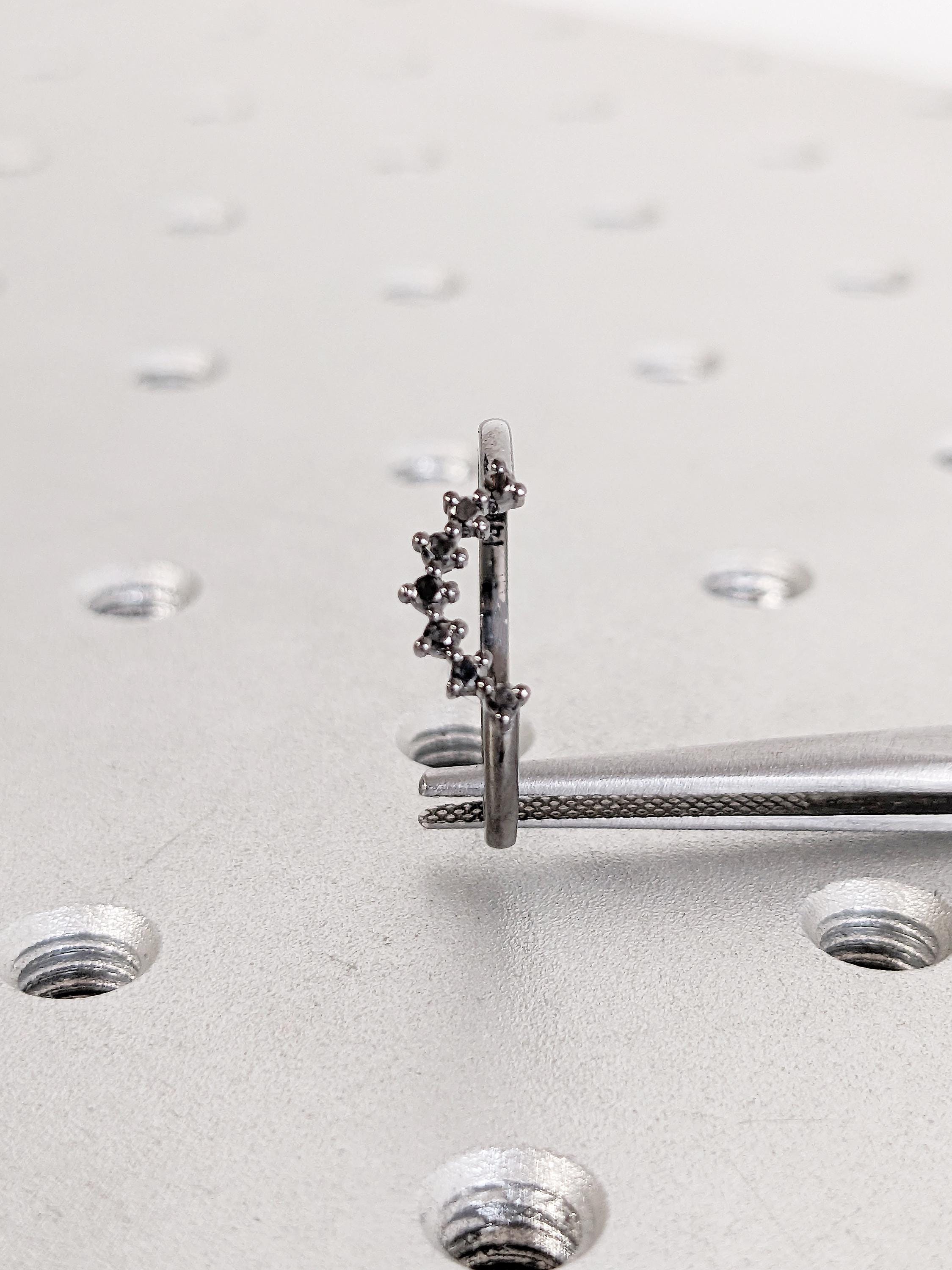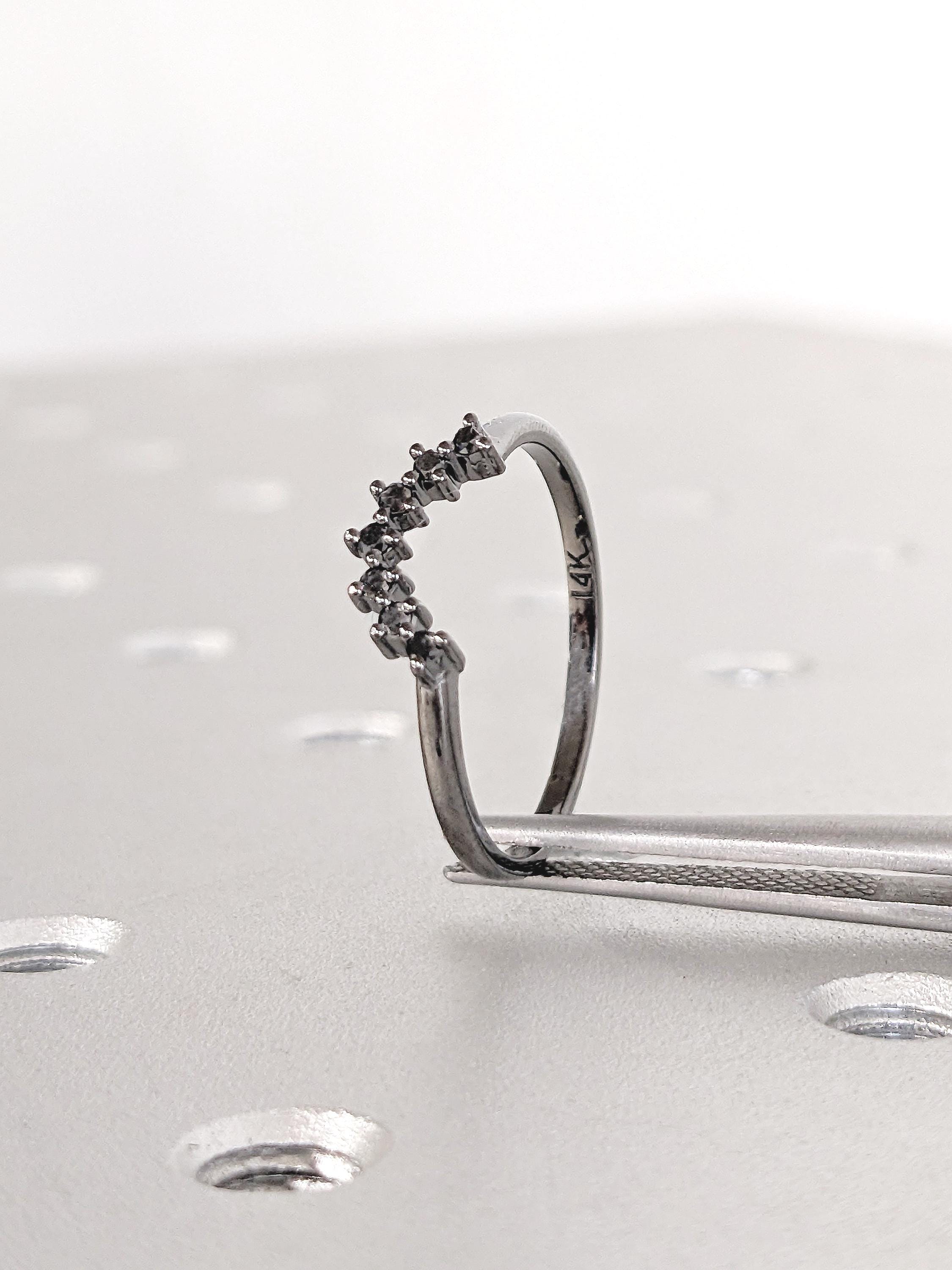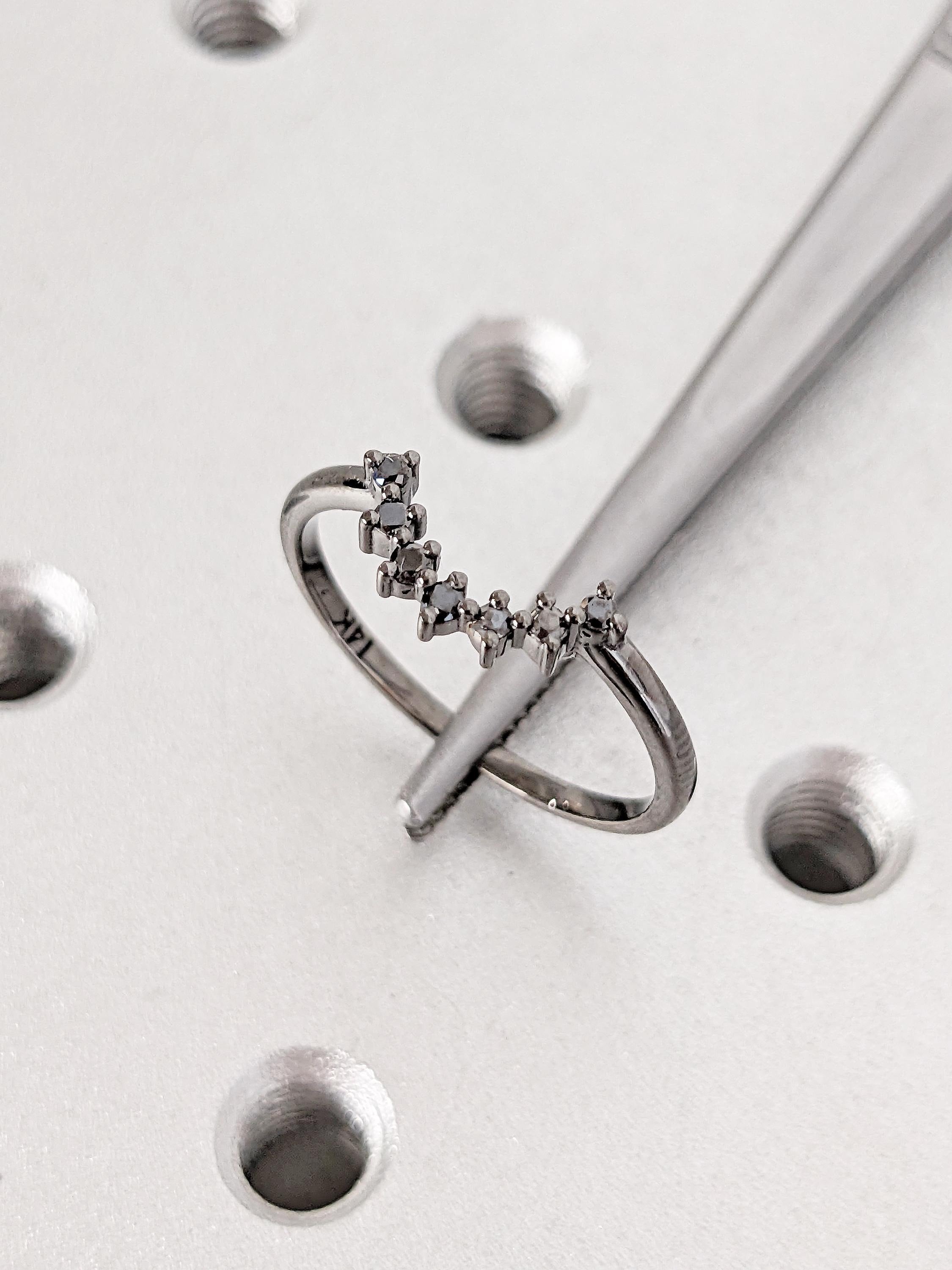 14k Black Gold Ring, Curved Diamond Stacking Ring, Natural Black Diamond Ring