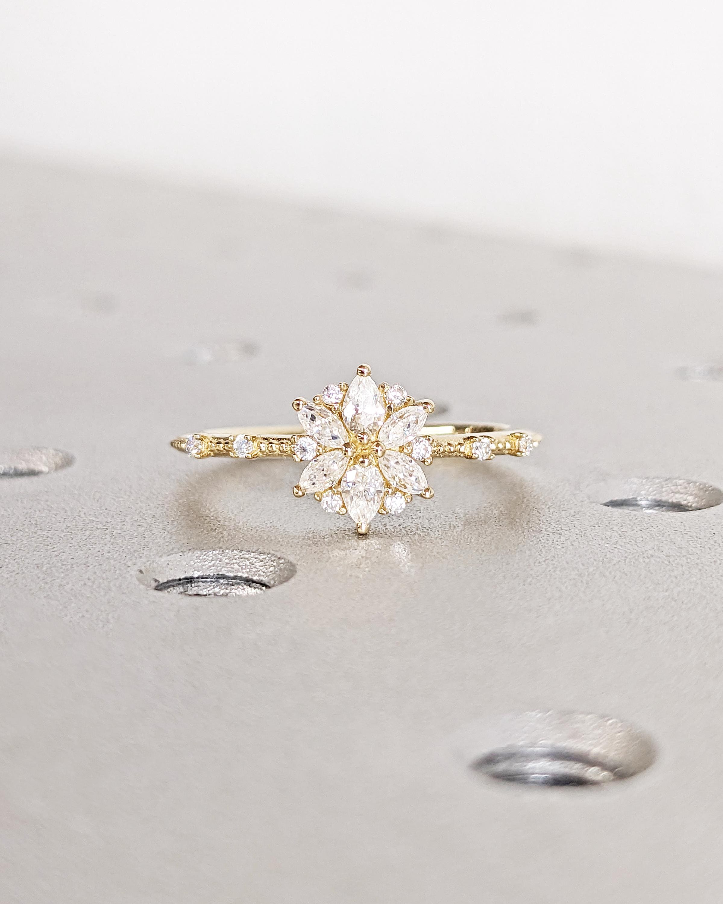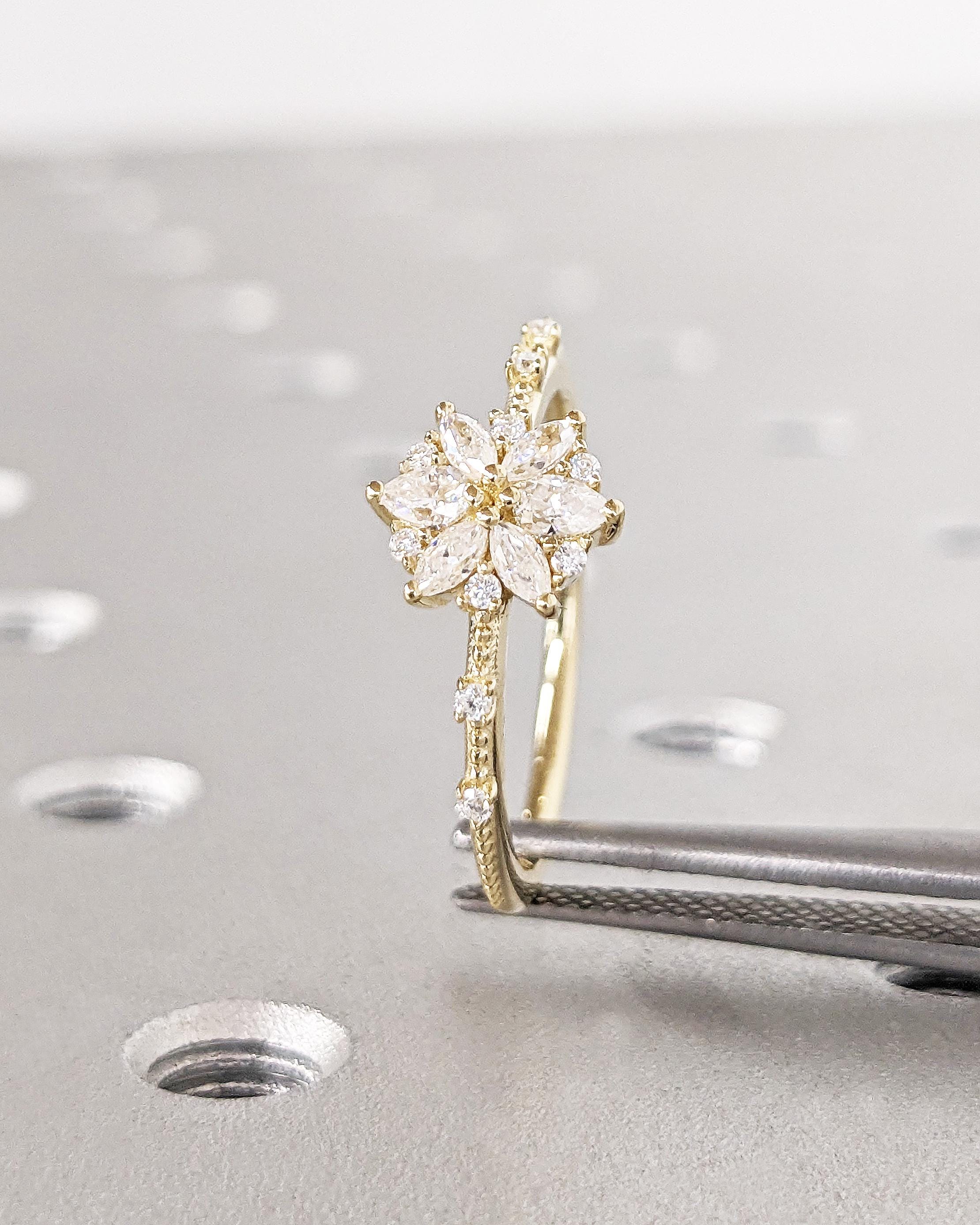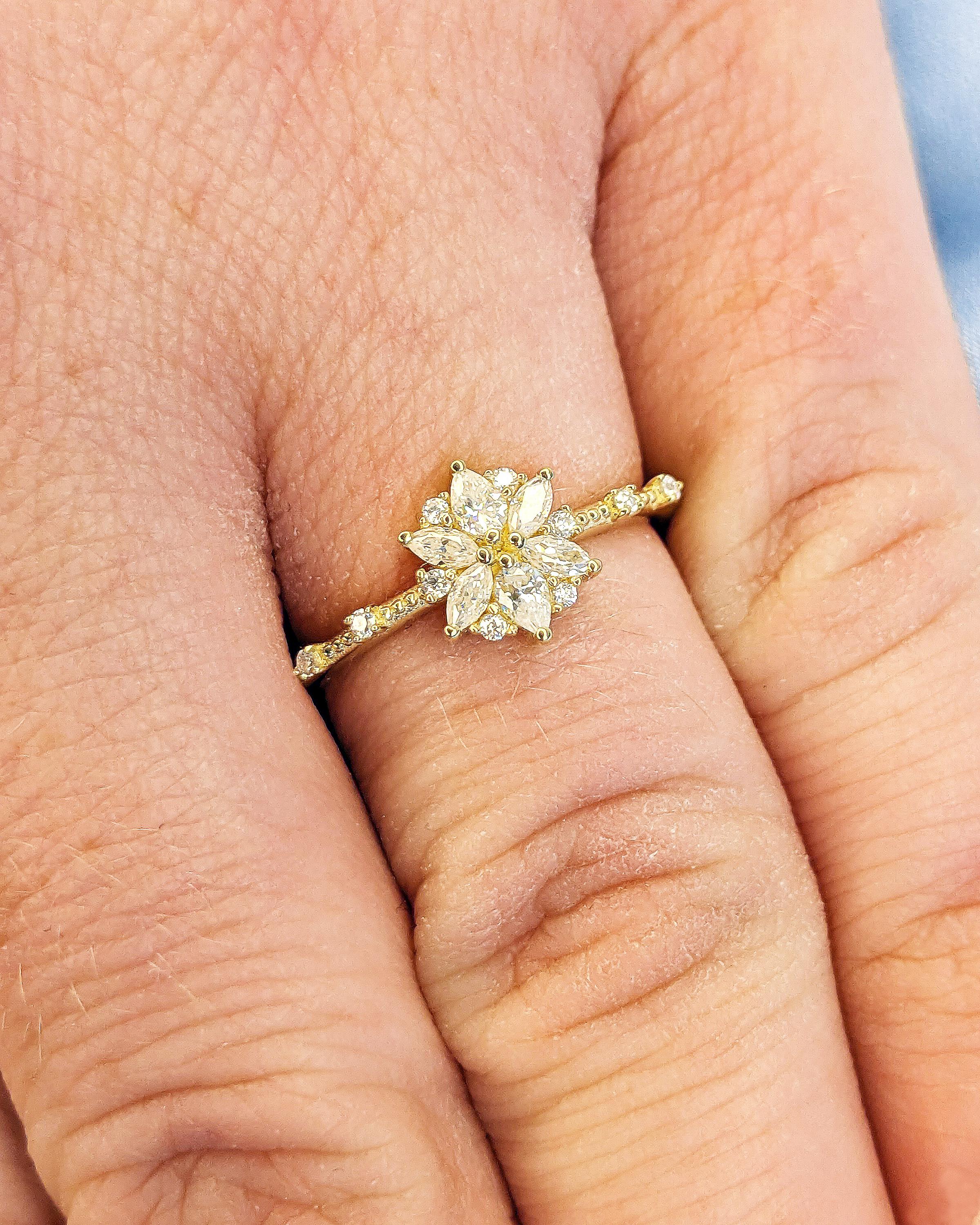 14K Gold Flower Moissanite Engagement Ring / Moissanite Cluster Engagement Ring / Moissanite Daisy Flower Ring / Dainty Promise Ring for Her