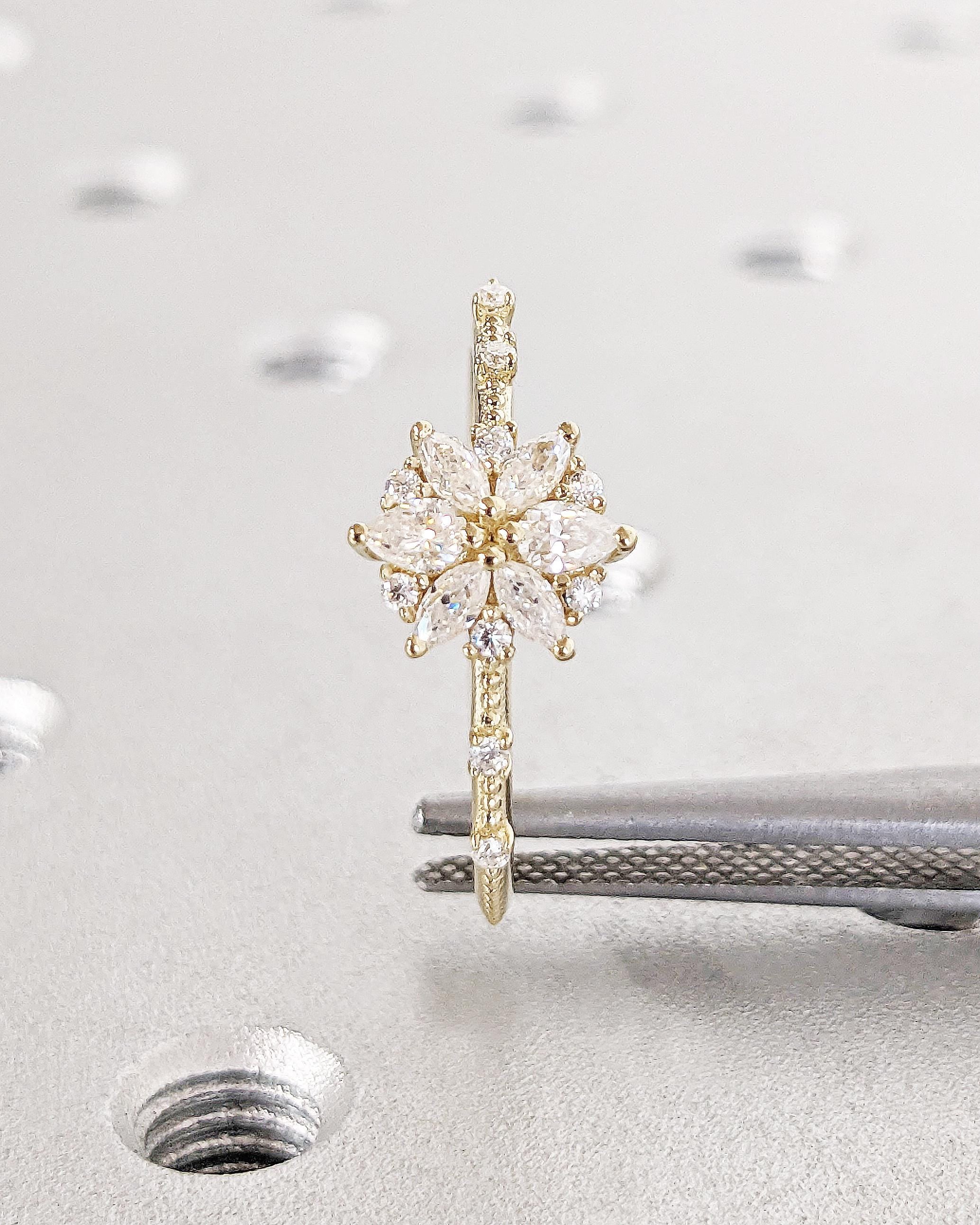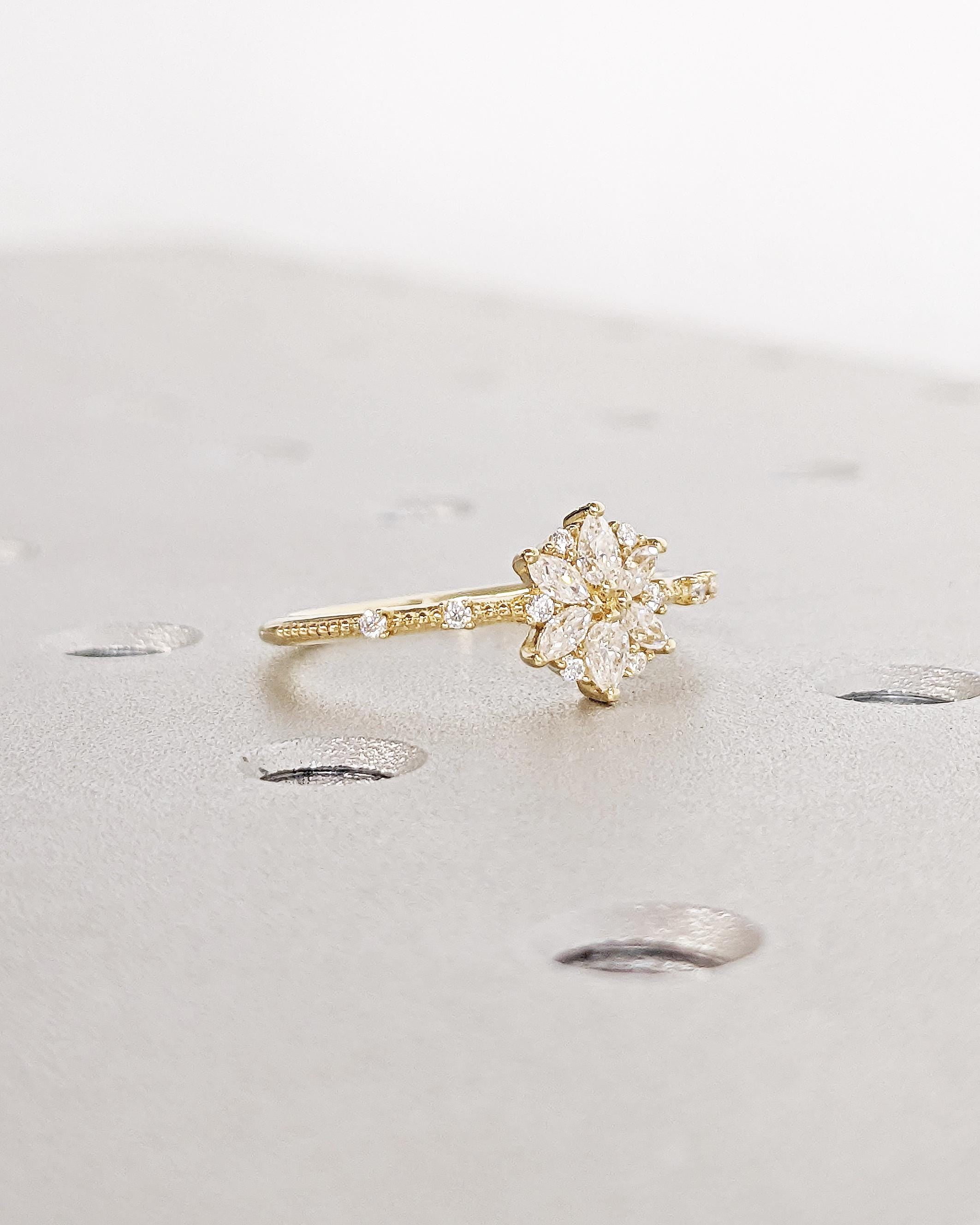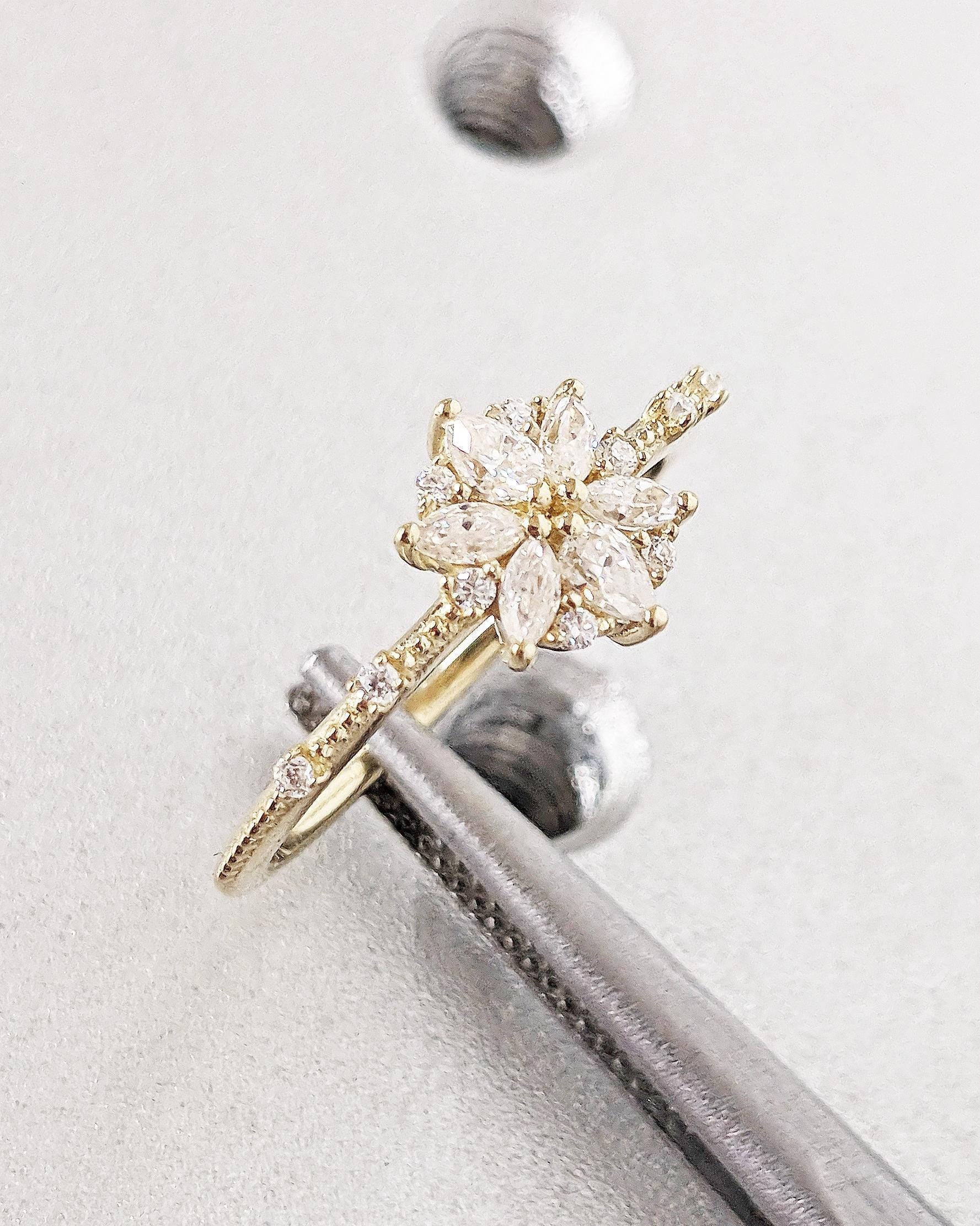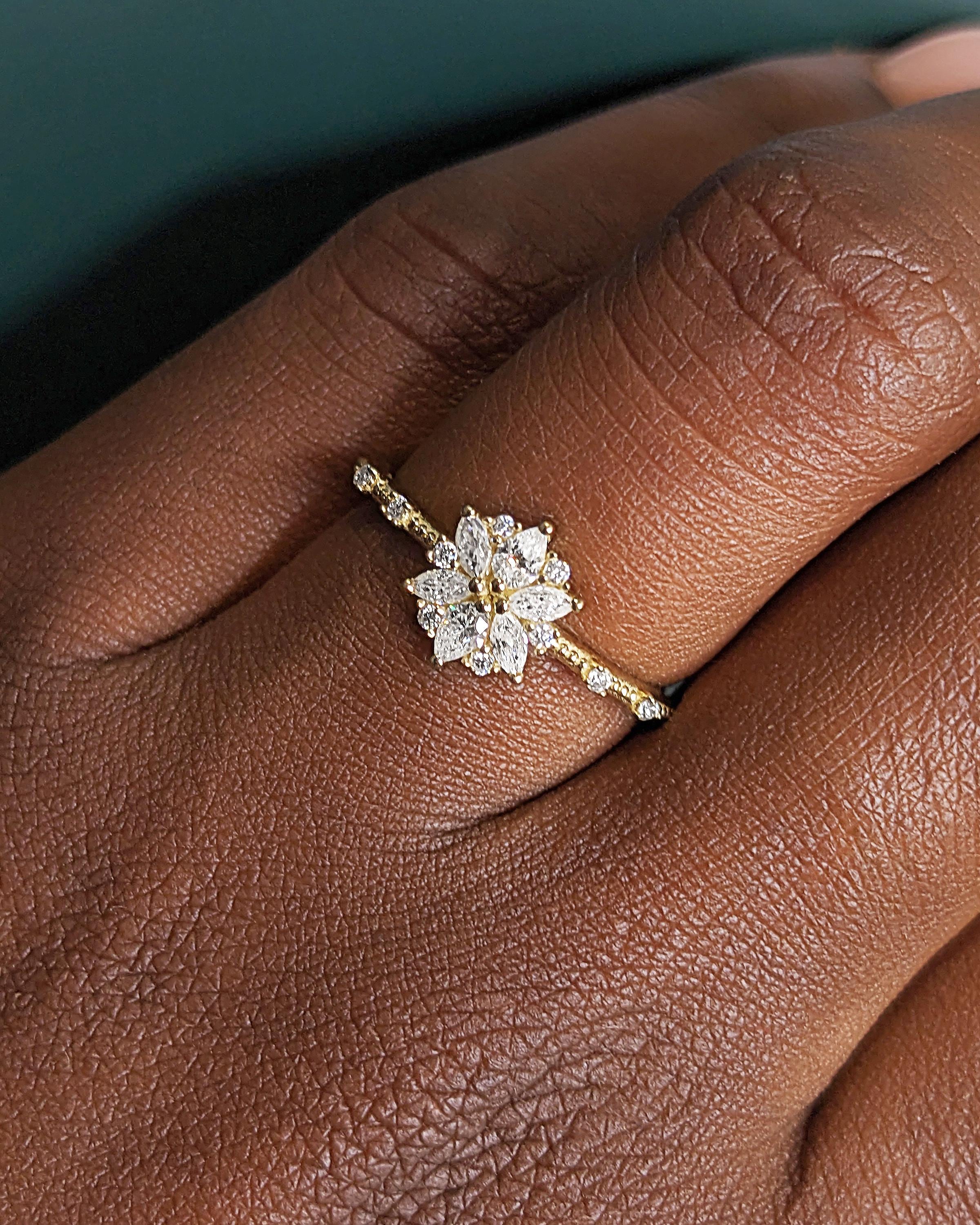 14K Gold Flower Moissanite Engagement Ring / Moissanite Cluster Engagement Ring / Moissanite Daisy Flower Ring / Dainty Promise Ring for Her