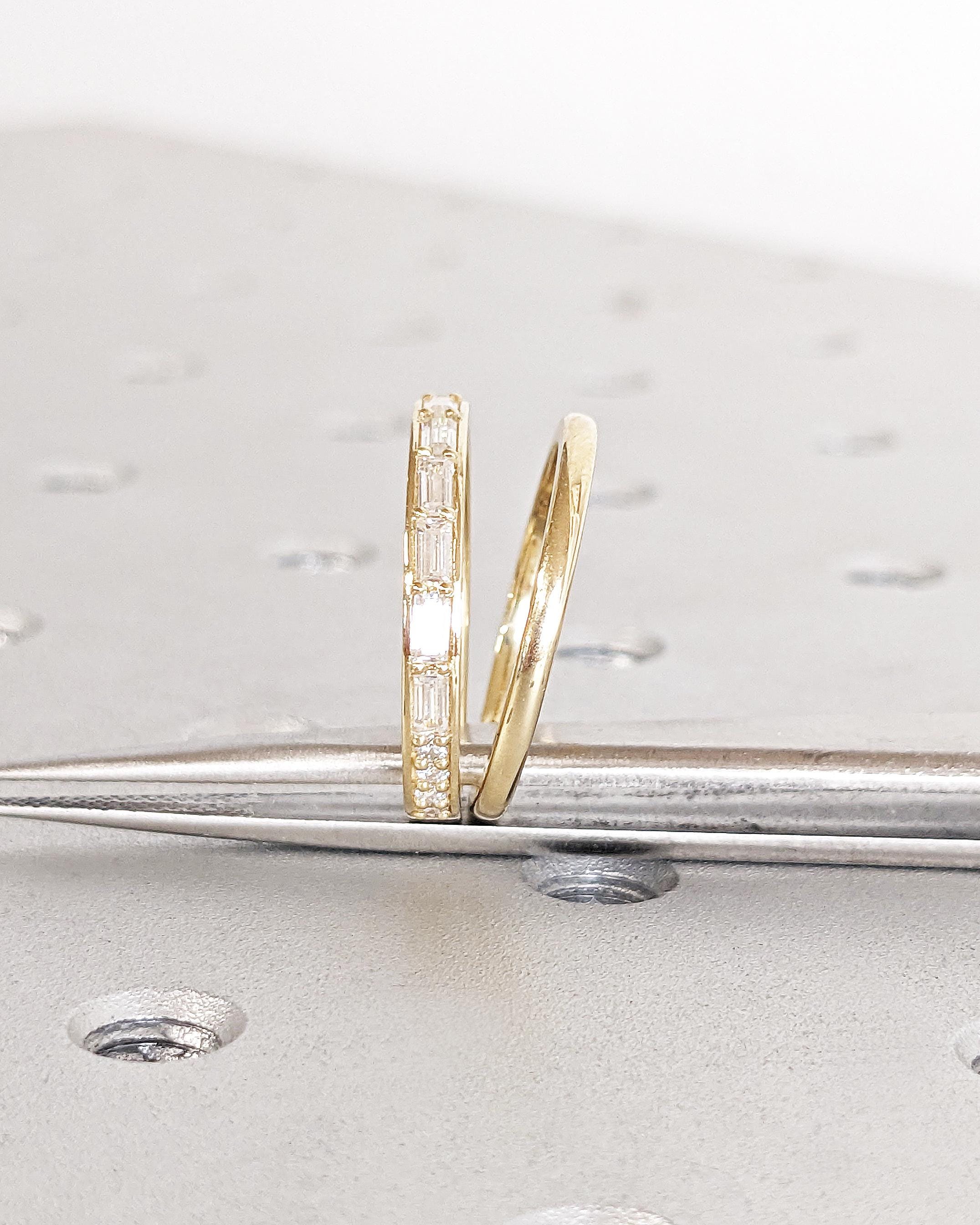 14K Gold Half Eternity Baguette Diamond Stackable Ring and Simple Delicate Ring Matching Stackable Wedding Bands Set of 2 Thin Wedding Bands