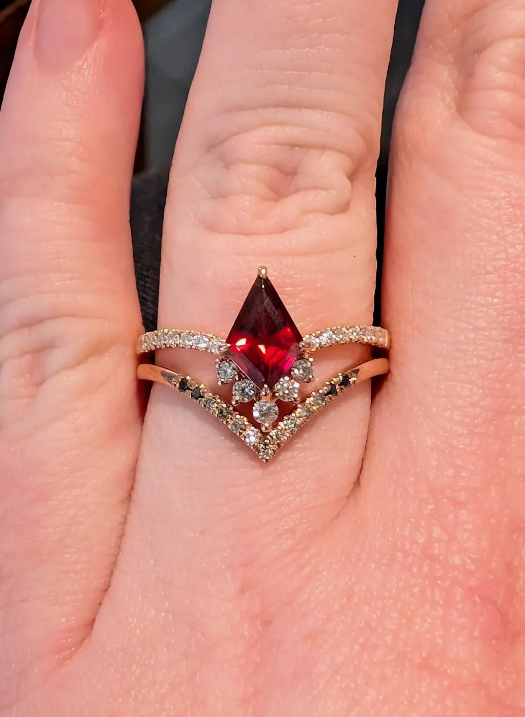 14K Gold Ombre Diamond Chevron Ring/Diamond Shimmering Ring/Gold V Shape Ring/Perfect Matching Band/Stackable Ring/Wedding Band/Curved/Band