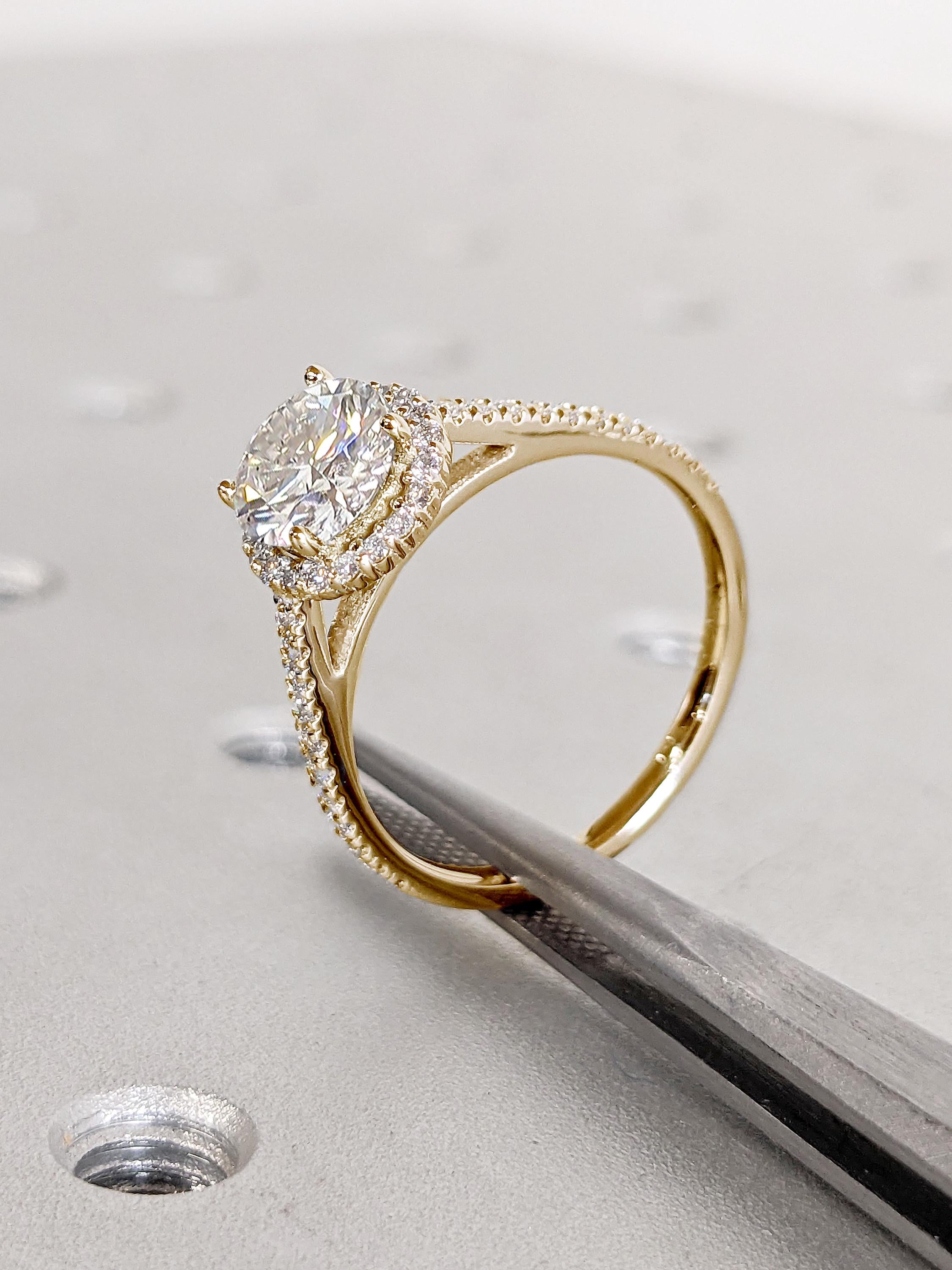 14k Gold Promise Ring for Her, Round Moissanite Engagement Ring, Halo Wedding Ring, Anniversary Gift, Comfort Fit Moissanite Rings for Women