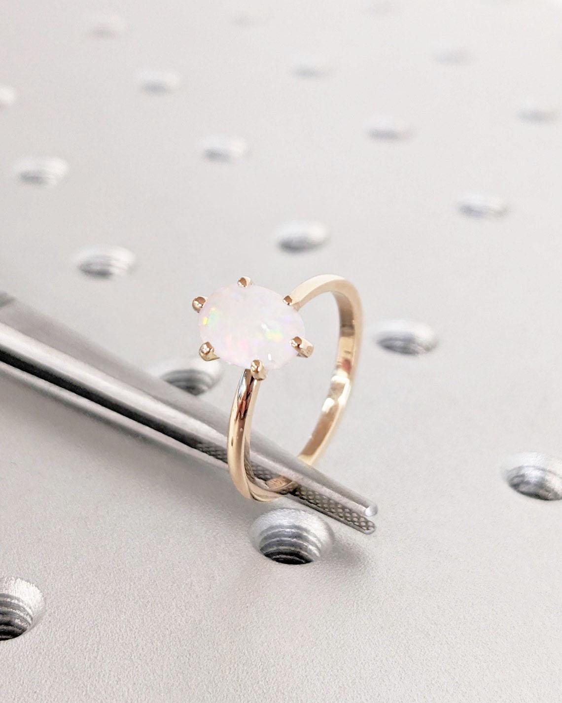 14k Gold Rings for Women | 1 Carat Opal Ring | Oval cut, Rose Gold Engagement Ring | Crystal Opal Ring | Bright Natural Opal | Opal Jewelry