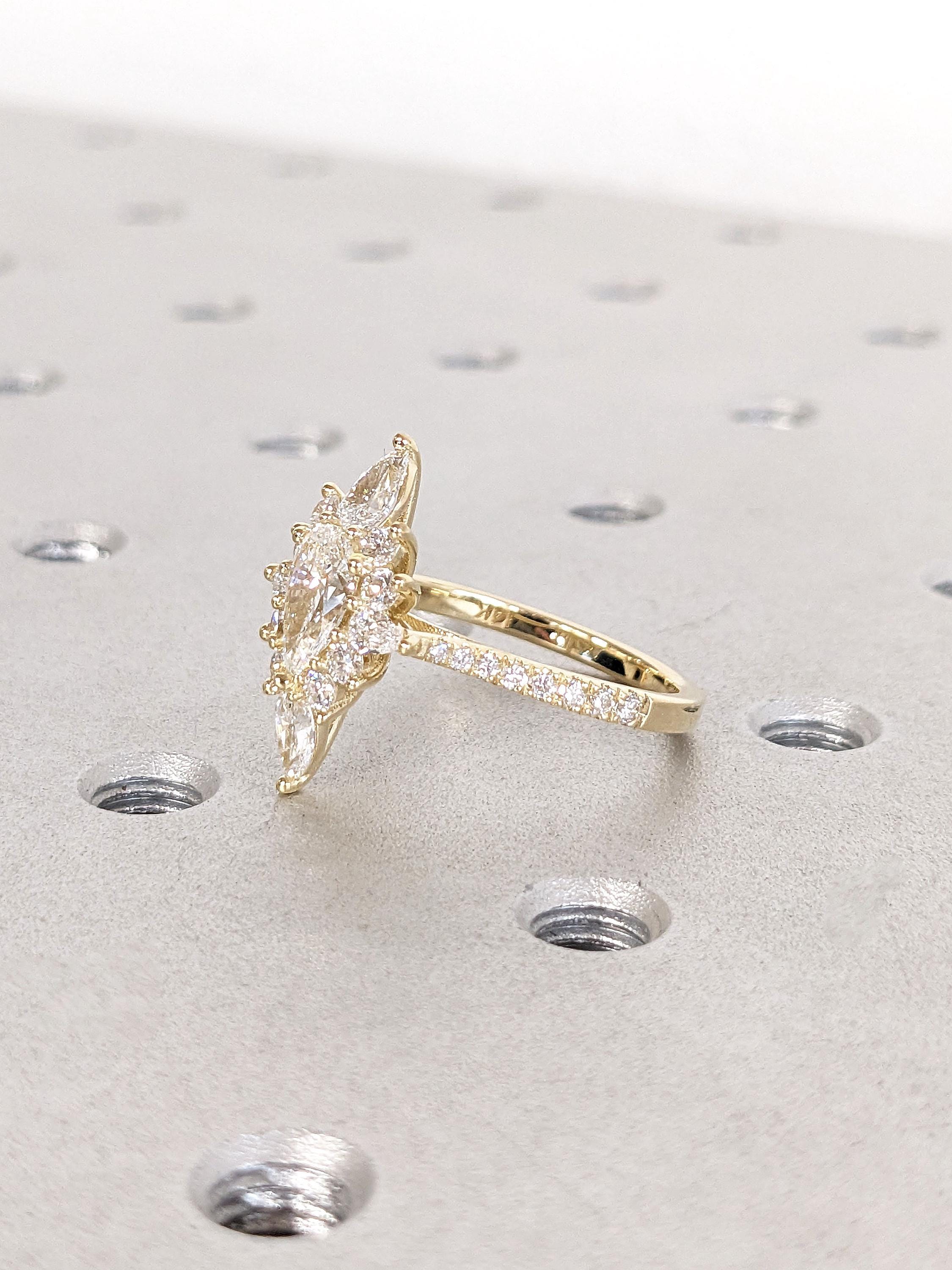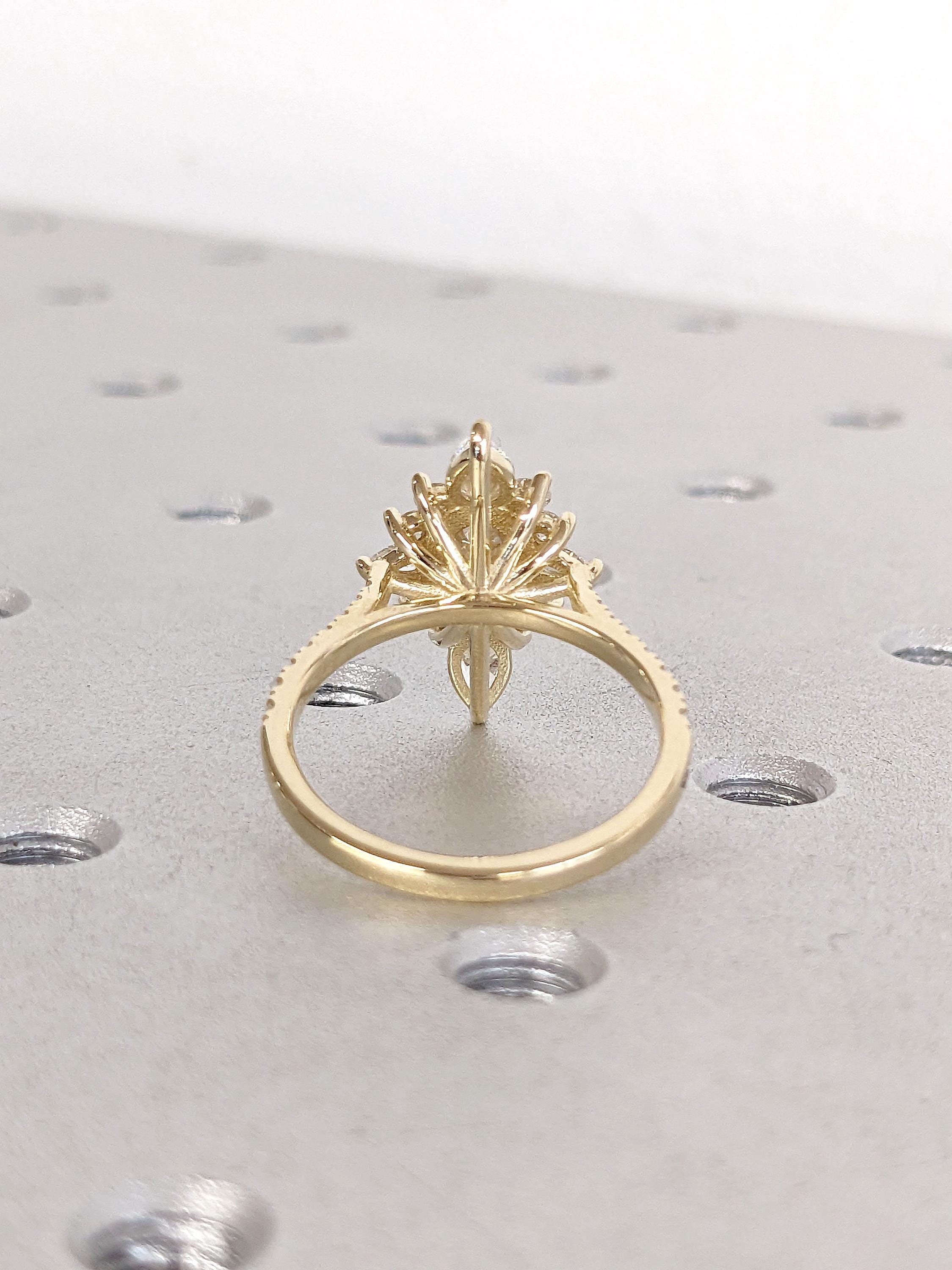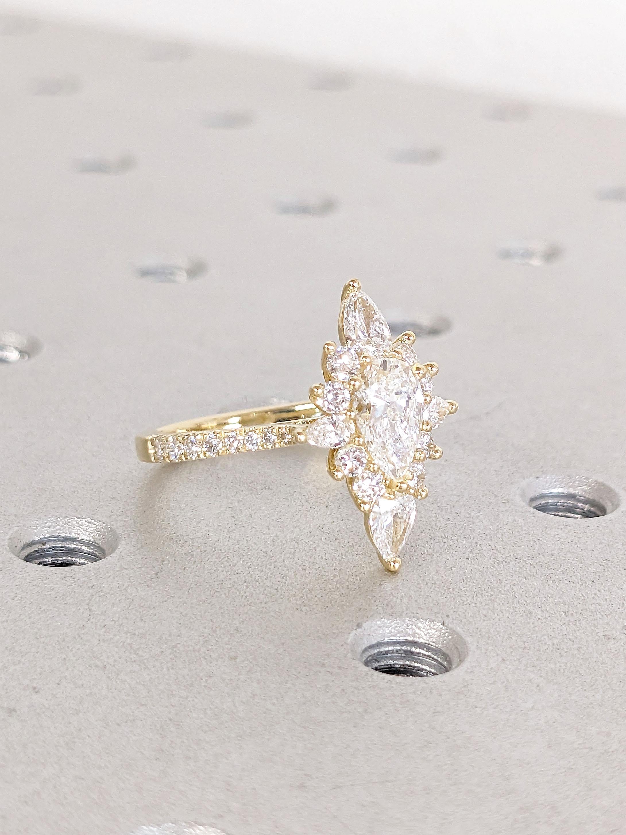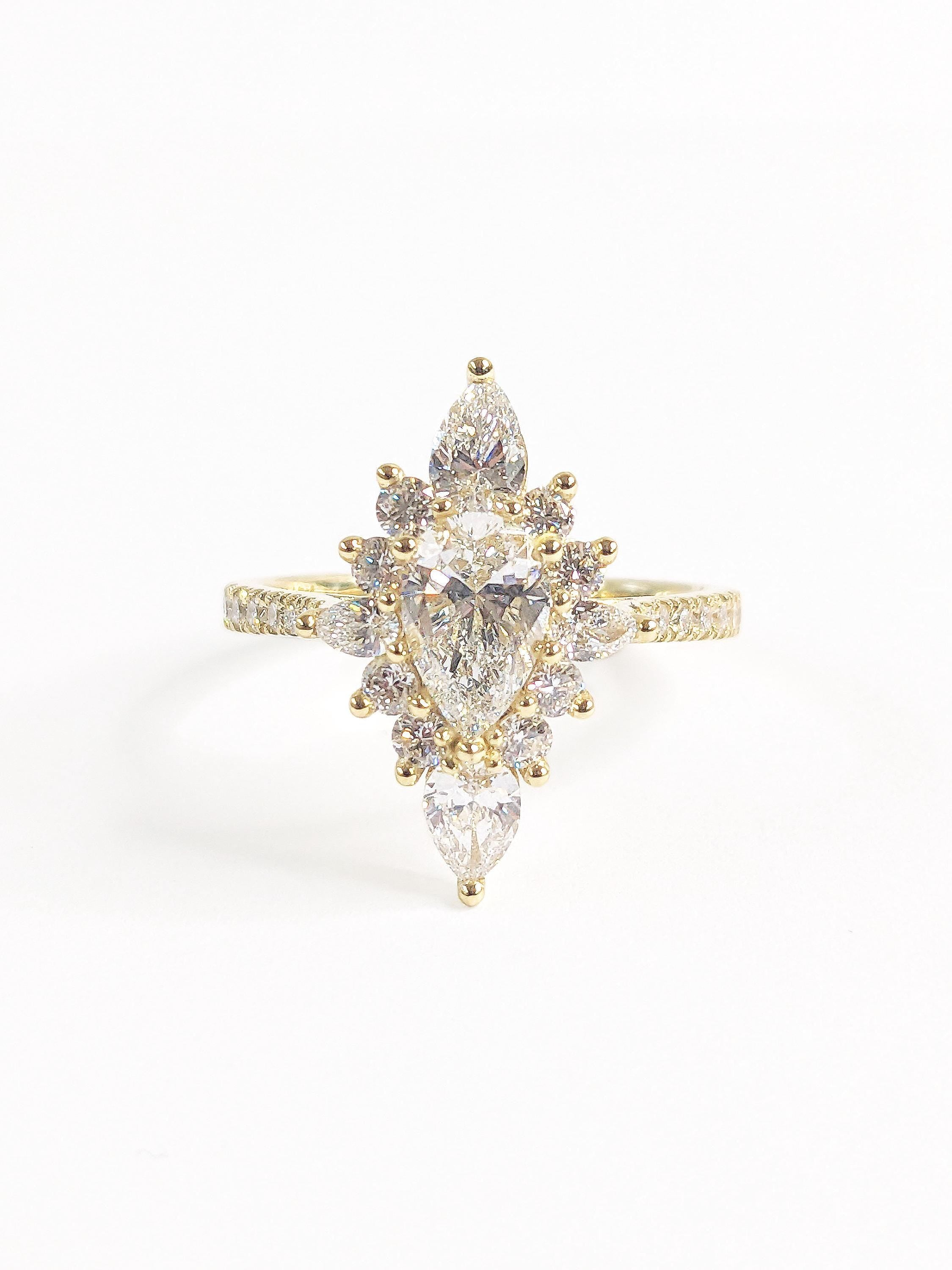 14k Gold Sunburst Pear Cut Lab Created Diamond Ring | Marquise Cluster Halo Engagement Ring | Vintage Style Art Deco Ring | Gift for Her