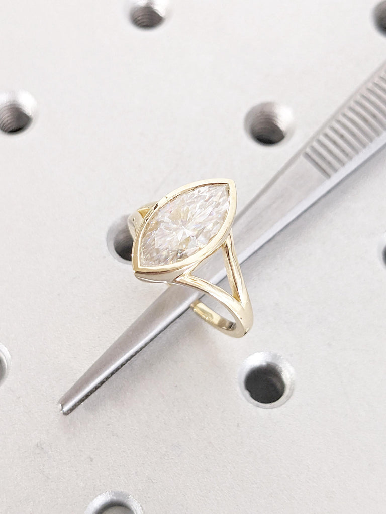 14K Lab Diamond Split Shank Ring, Marquise Shape Ring, Marquise Lab Diamond, Gold Minimalist Ring, Bezel Ring, Solitaire Ring, Promise Ring