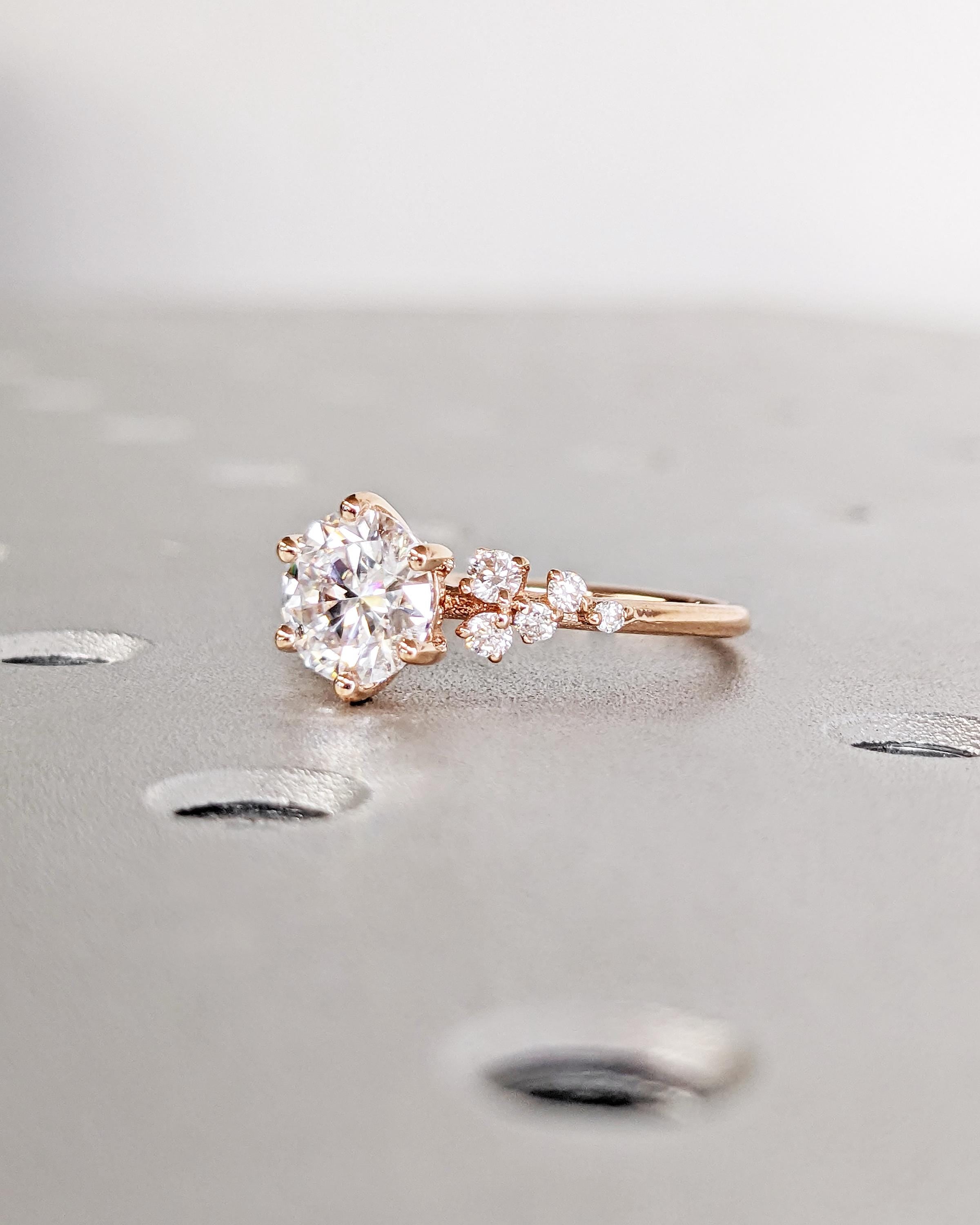 14K Rose Gold 1CT Round CVD Lab Grown Diamond Cluster Women Engagement Ring | Unique Snowdrift Art Deco Promise Ring | Personalized Jewelry
