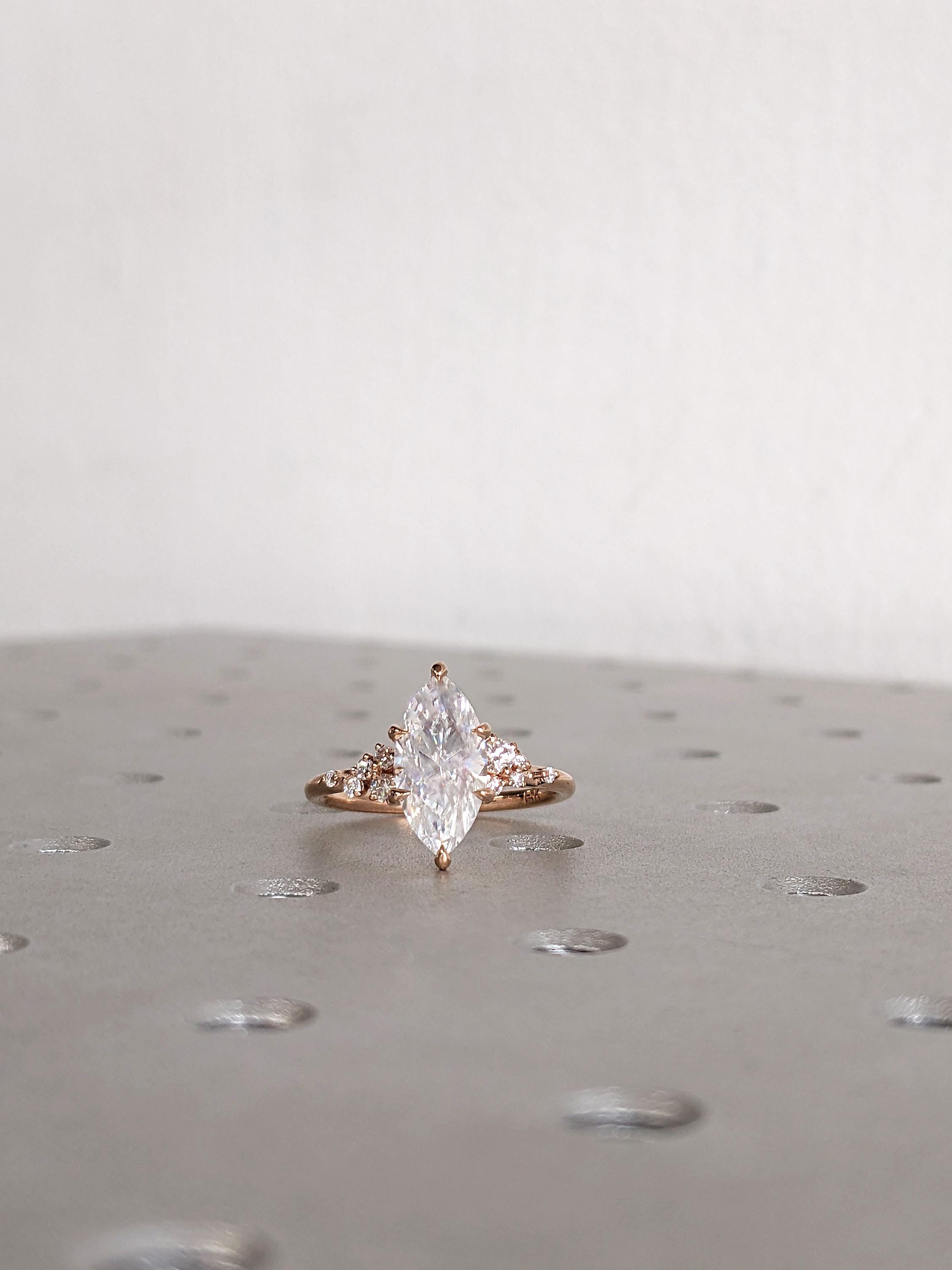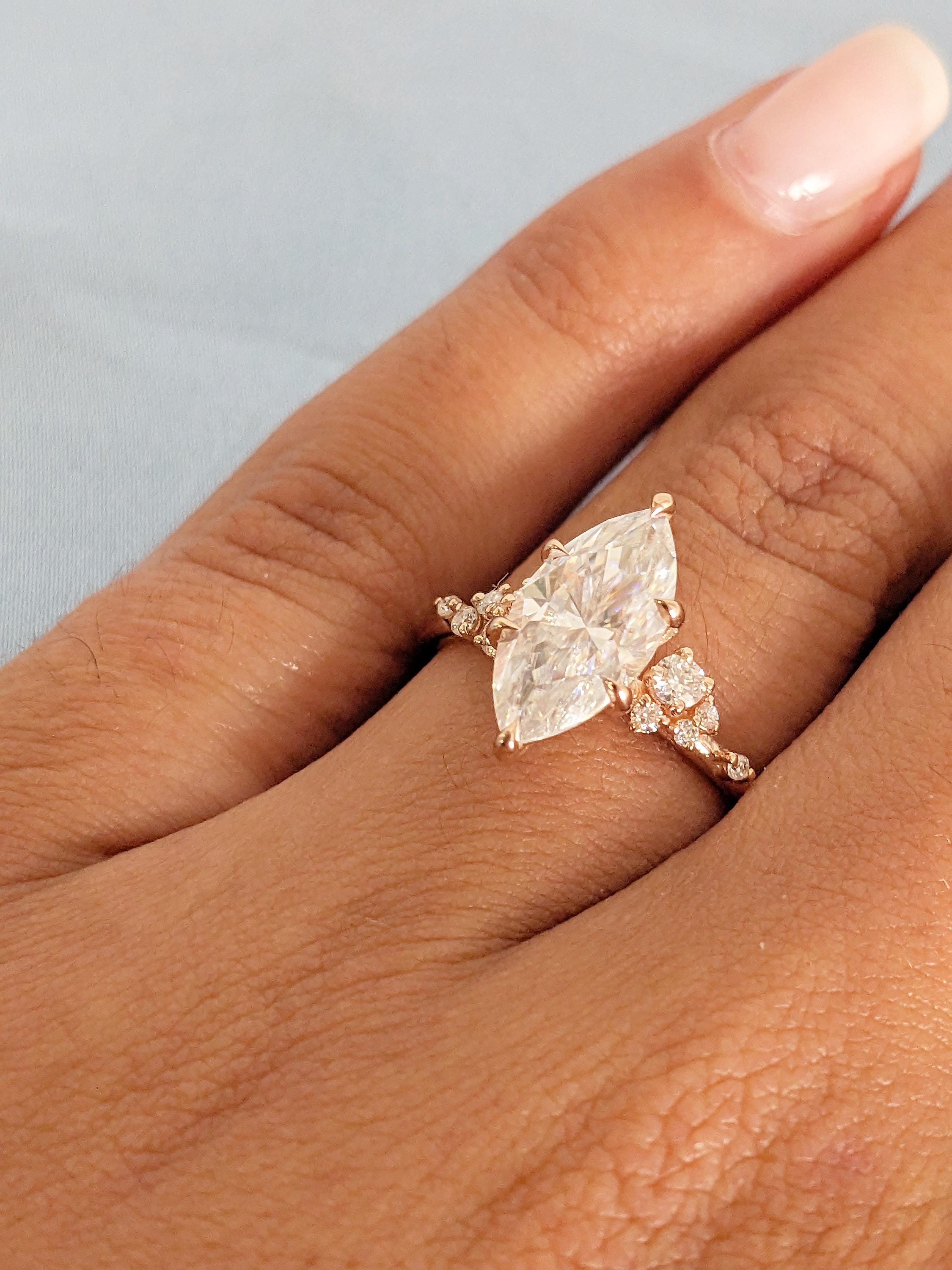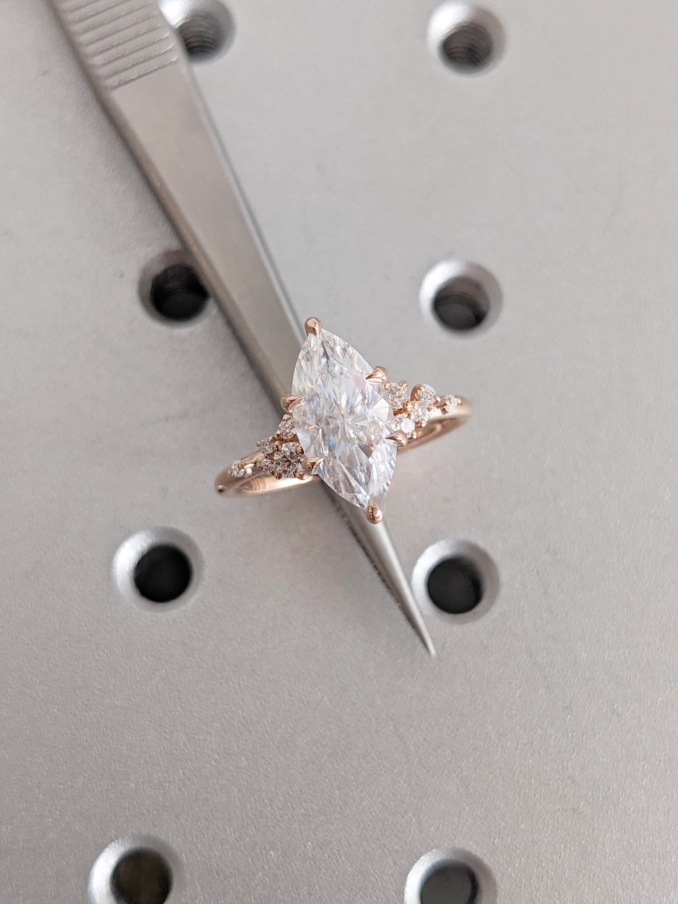14K Rose Gold Marquise Cut Moissanite Engagement Ring, Diamond Cluster Wedding Ring, Unique Moissanite Bridal Ring, Custom Ring Gift For Her