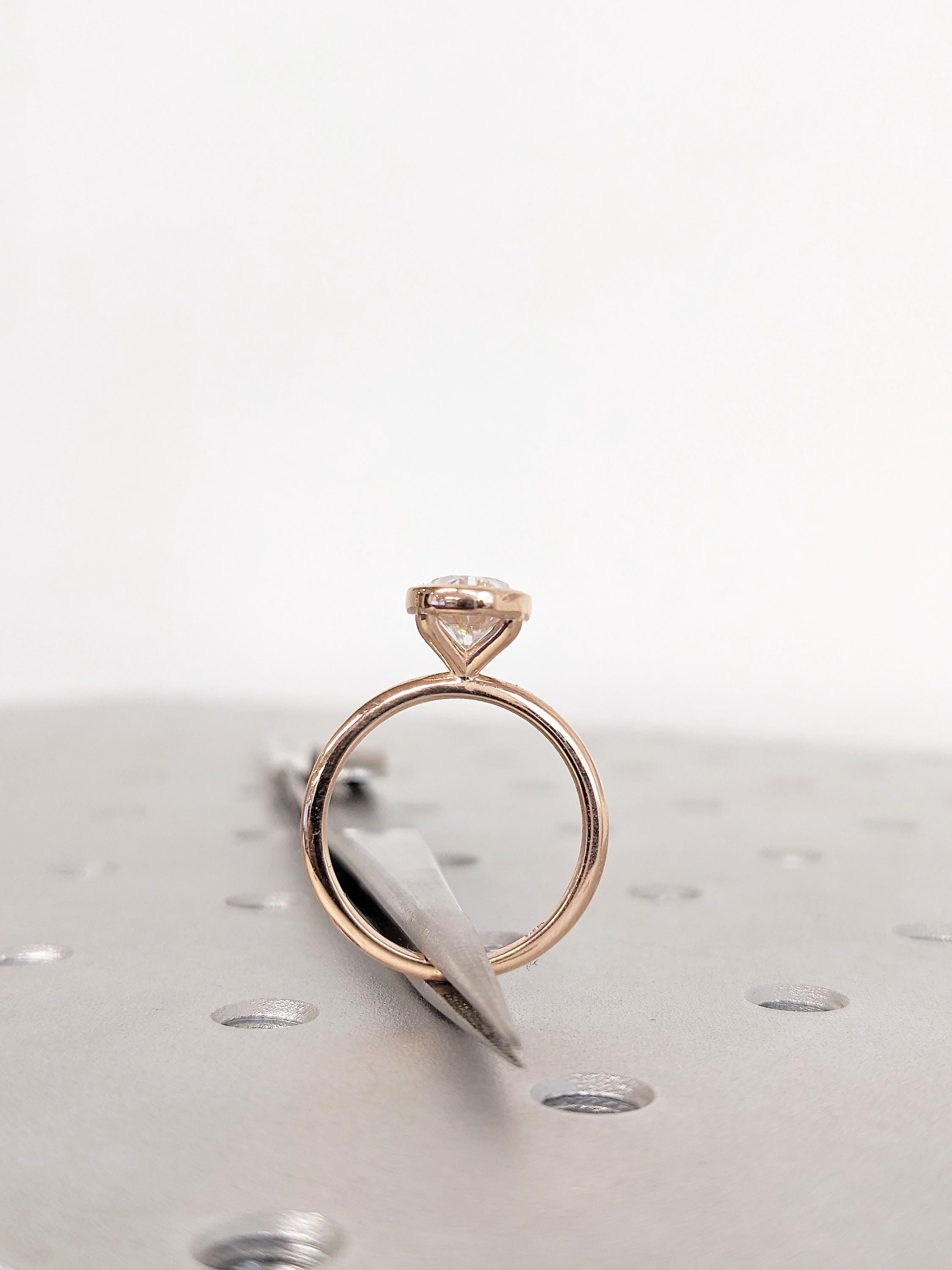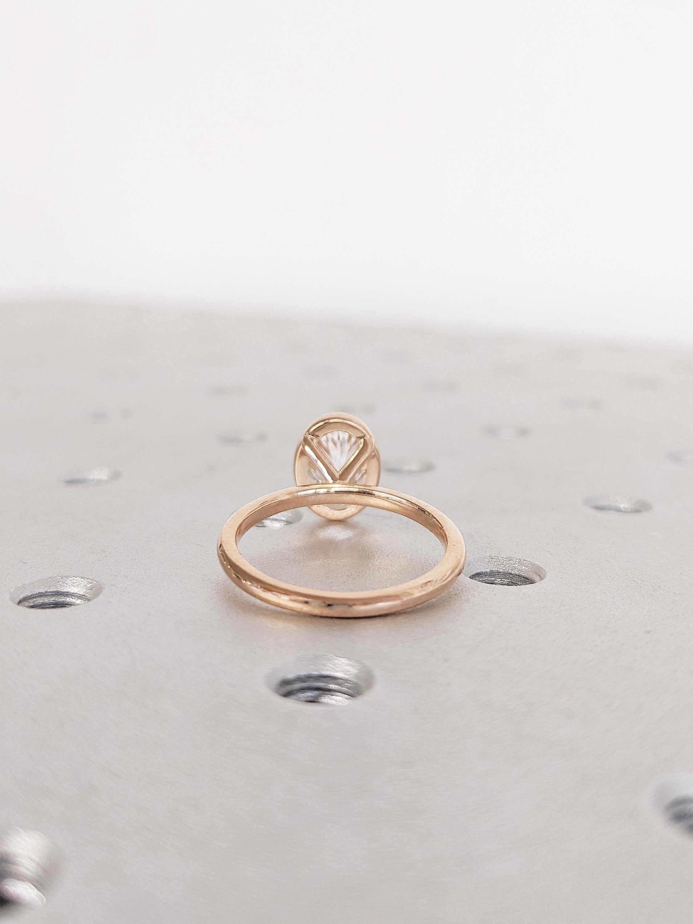 14K Rose Gold Oval Bezel Moissanite Ring, Solid Gold Solitaire Bridal Ring