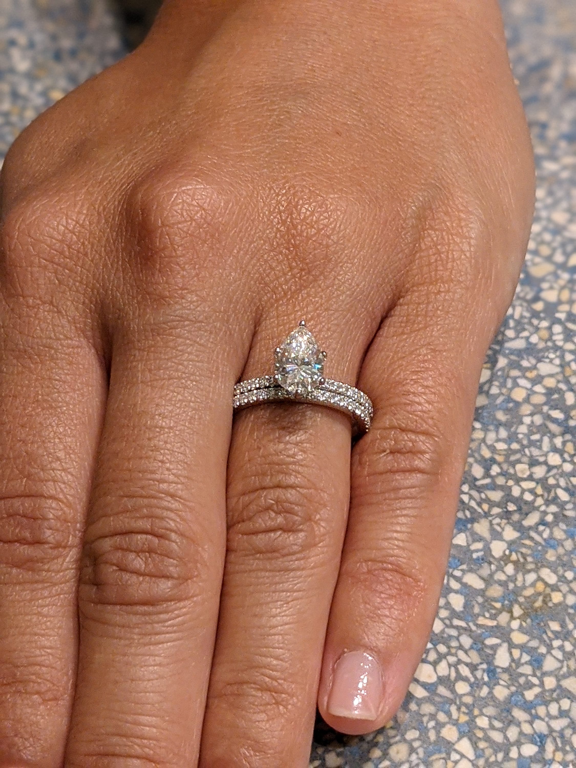 14K Solid Gold Engagement Ring Set 1.25CT Pear Moissanite Diamond Wedding Ring/Moissanite Engagement Ring/Stack Ring/Promise ring/Bridal Set