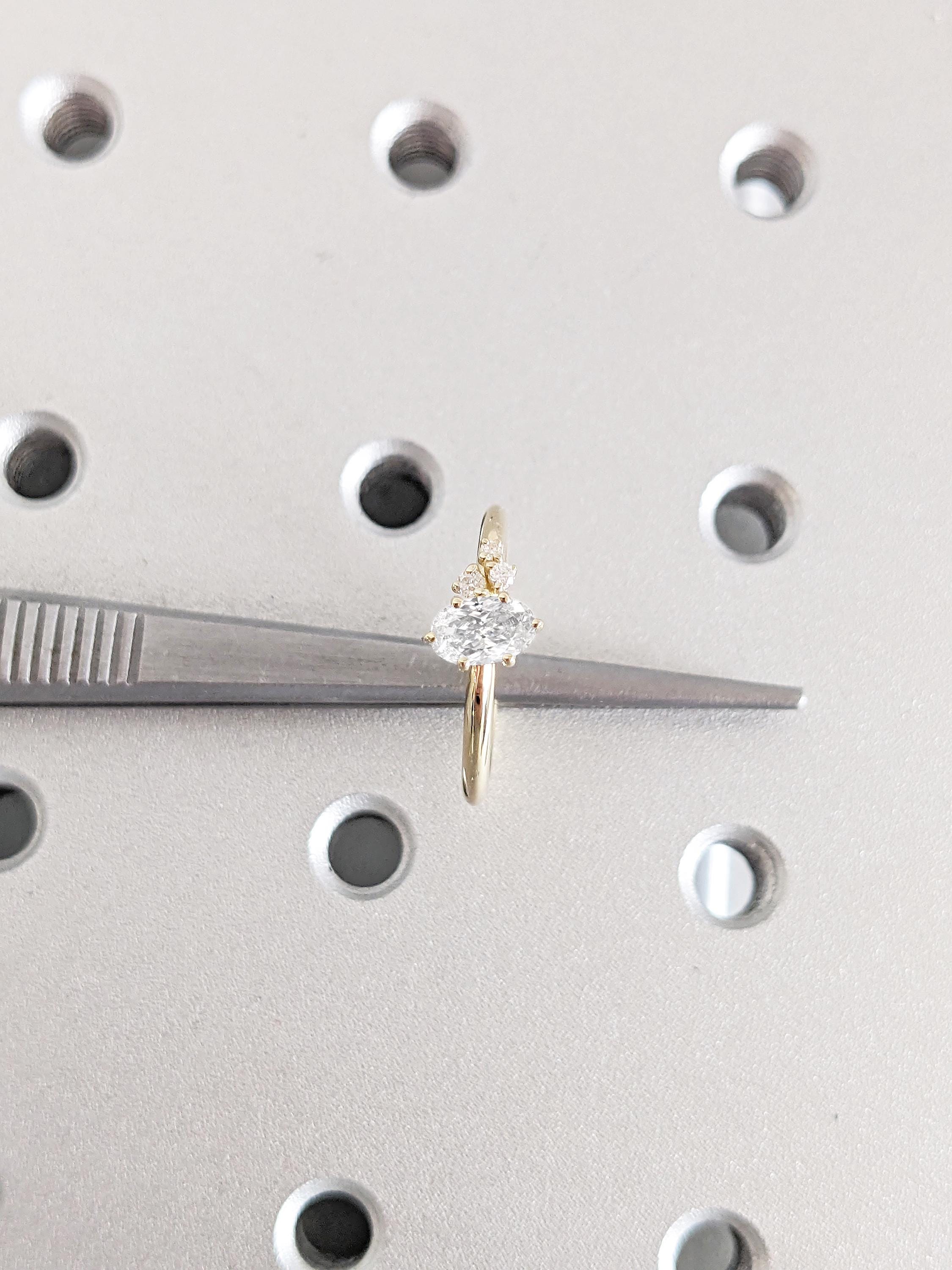 14k Solid Gold Ring | Minimalist Moissanite Engagement Ring | Oval Moissanite Ring | Moissanite Cluster Ring | Gift for Sister | Simple Ring
