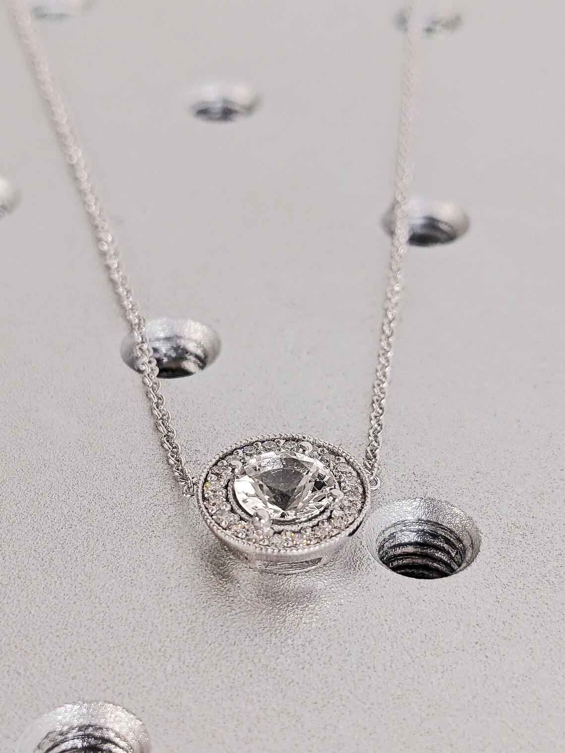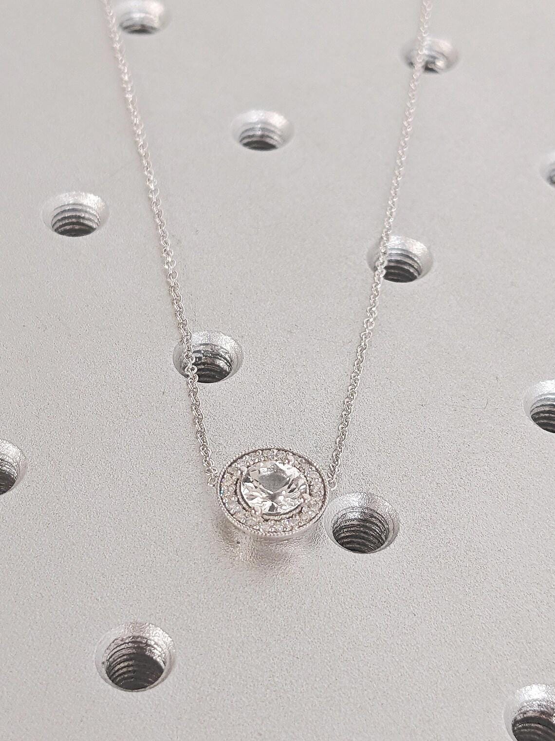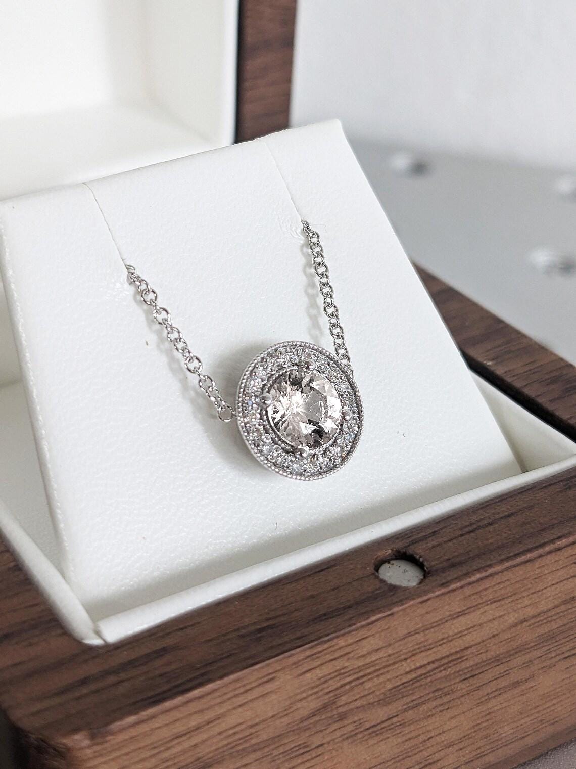 14K Solid White Gold Lab Diamond Necklace, Dainty Round Cut Diamond Halo Pedant, Bridal Jewelry, Wedding Anniversary Gift, Everyday Necklace