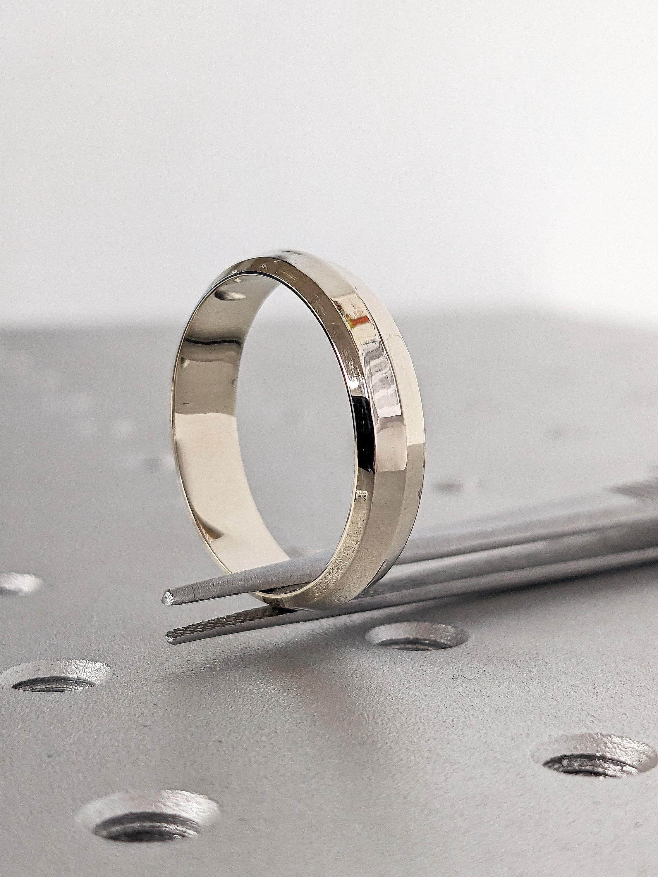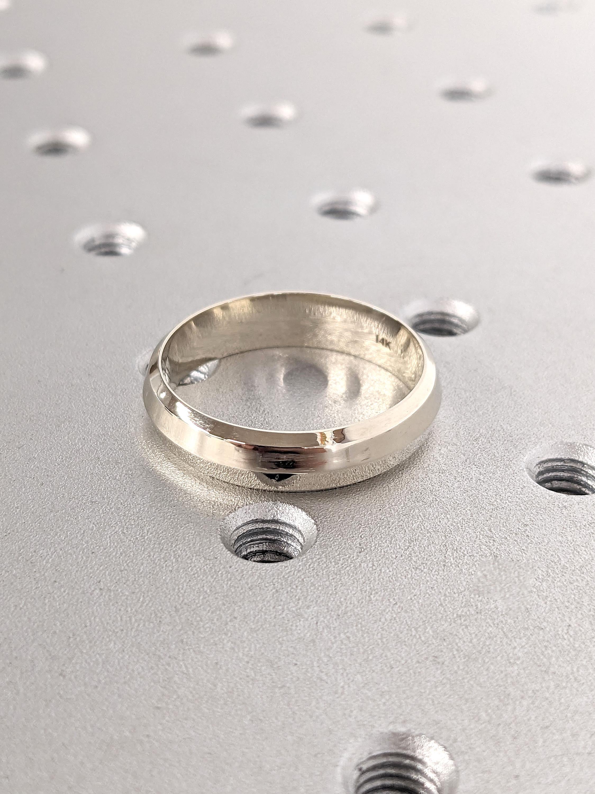 14K Solid White Gold Ring Simple Wedding Ring for Him | Beveled Edge Mens Wedding Band 6MM | Polished Finish Gold Ring | Unisex His Her Ring