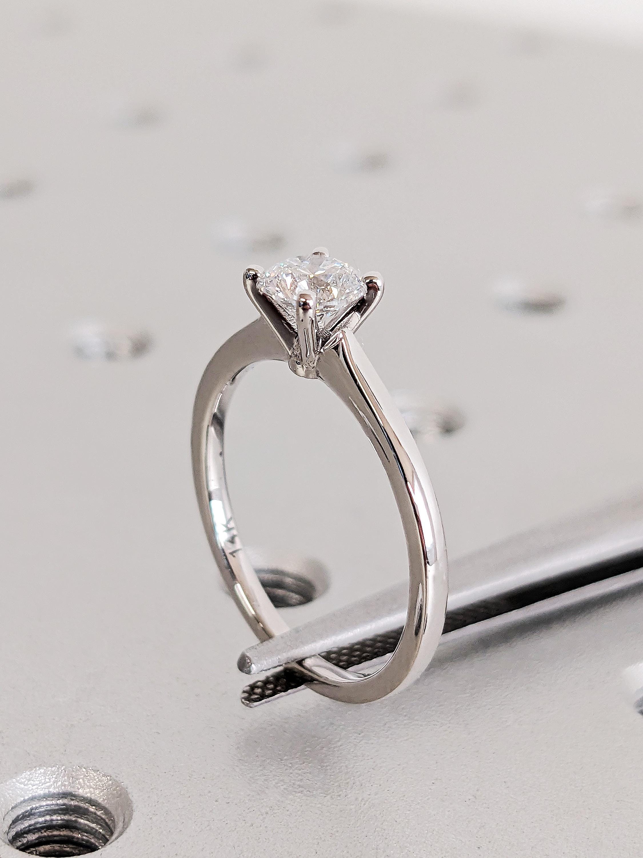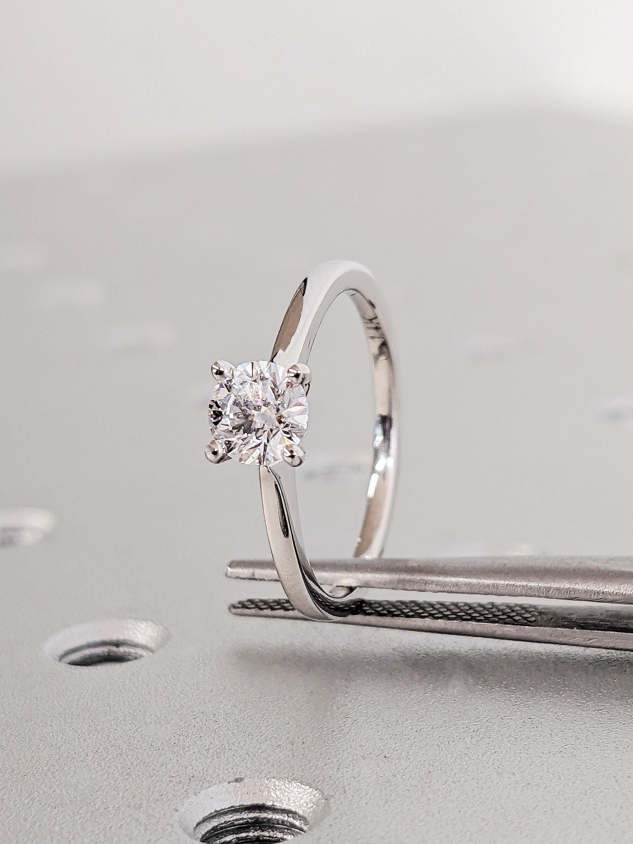 A timeless symbol of love, this minimalist solitaire ring showcases a brilliant round Moissanite set on a sleek band. Its elegant simplicity makes it perfect for engagements, weddings or everyday wear, radiating modern sophistication and lasting beauty.