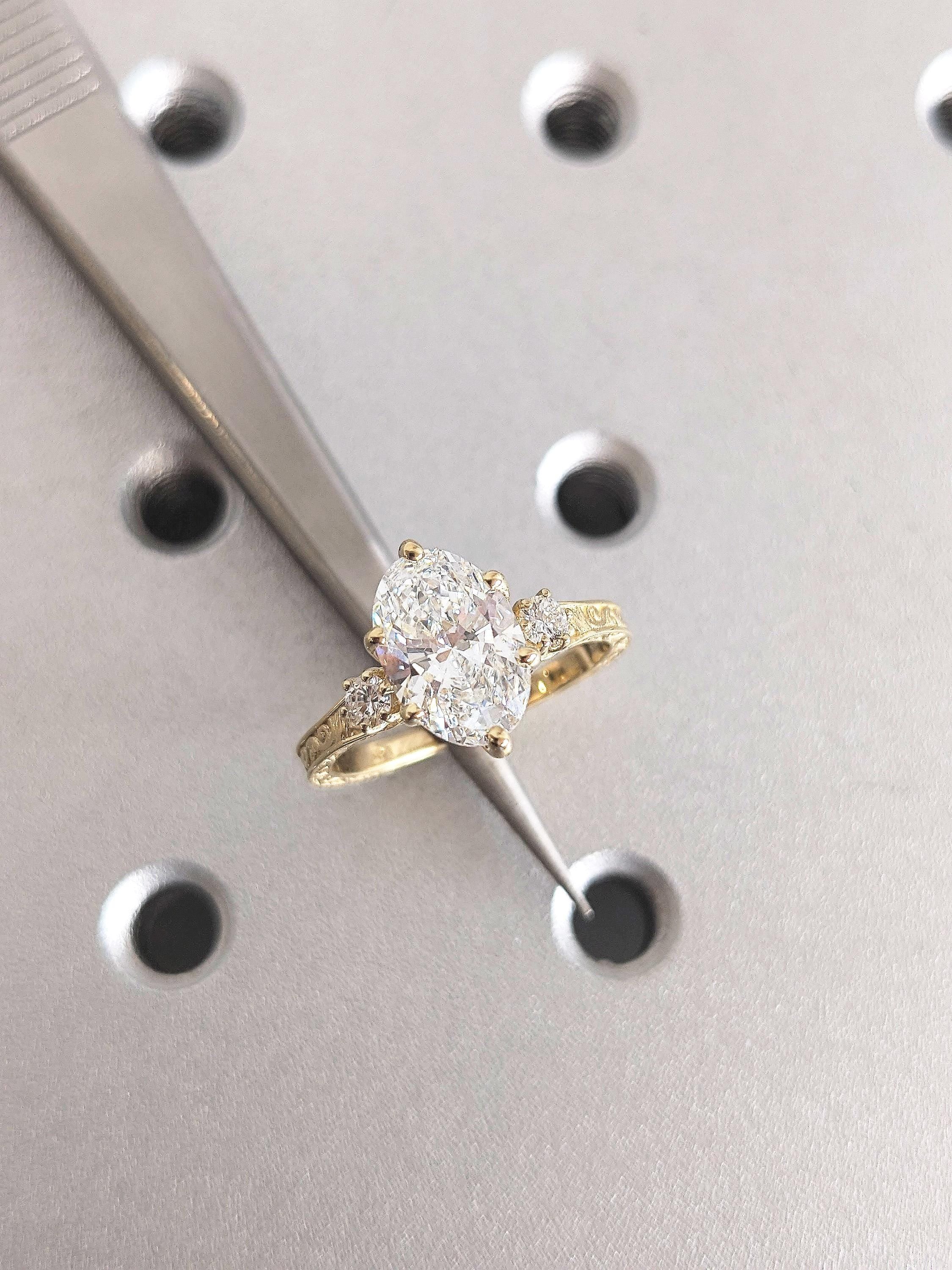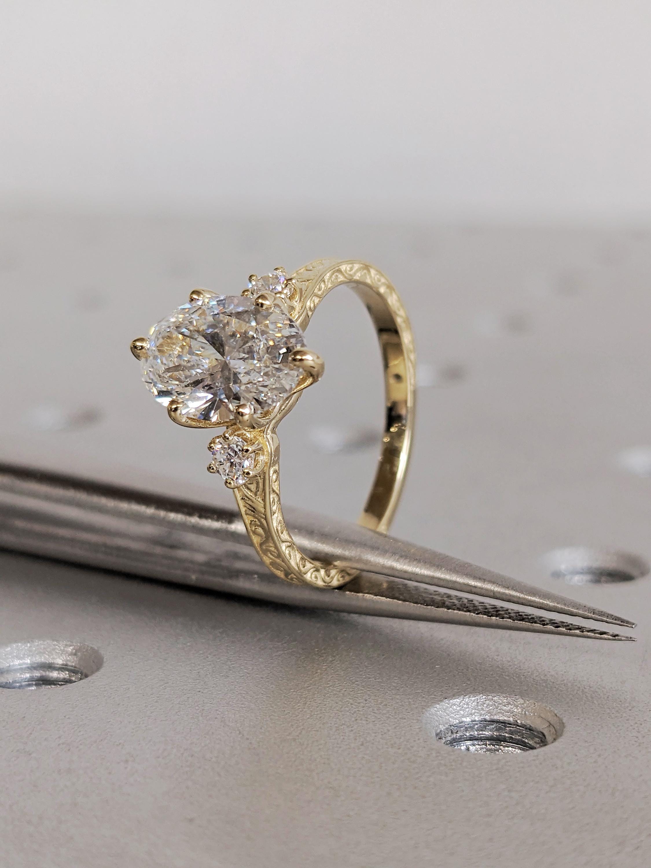 14K Solid Yellow Gold Oval Shaped Moissanite Ring, Custom Handmade Filigree Wedding Band, Vintage Bridal Jewelry