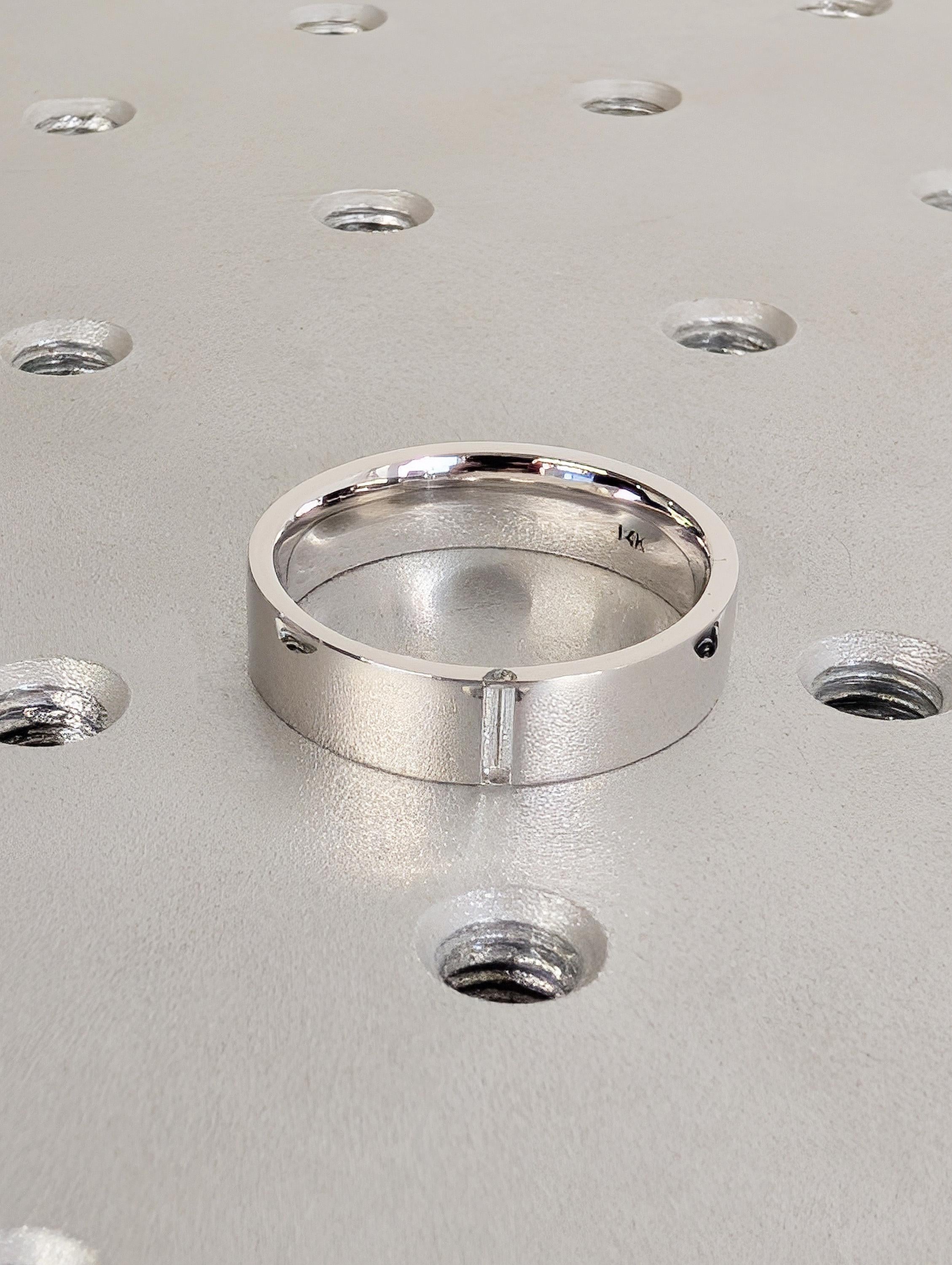 14K White Gold Baguette Cut Diamond Ring, Men's Modern Engagement Ring, 5mm Polished Wedding Band, Comfort Fit Everyday Ring, Ring Stack