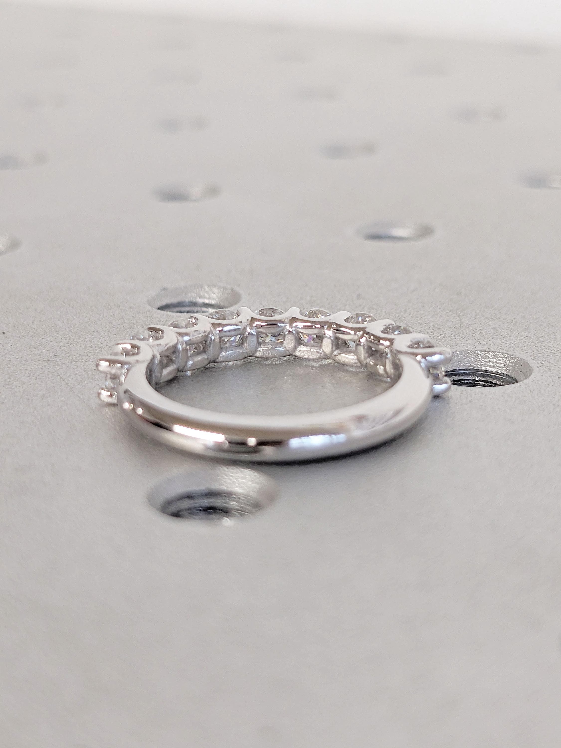 An elegant prong set nine stone ring, features a row of round cut gemstones in your choice of natural diamonds, lab diamonds or moissanites. Minimalist and luxurious, the perfect gift for birthday or wedding anniversary.
