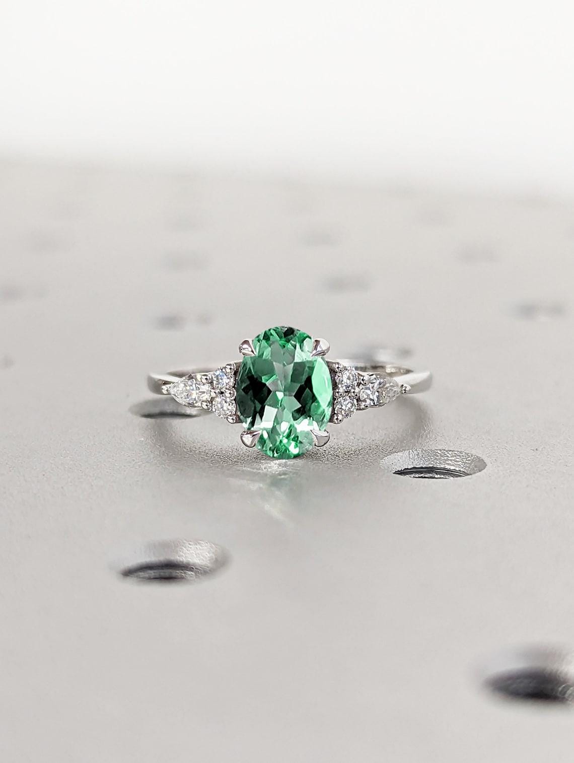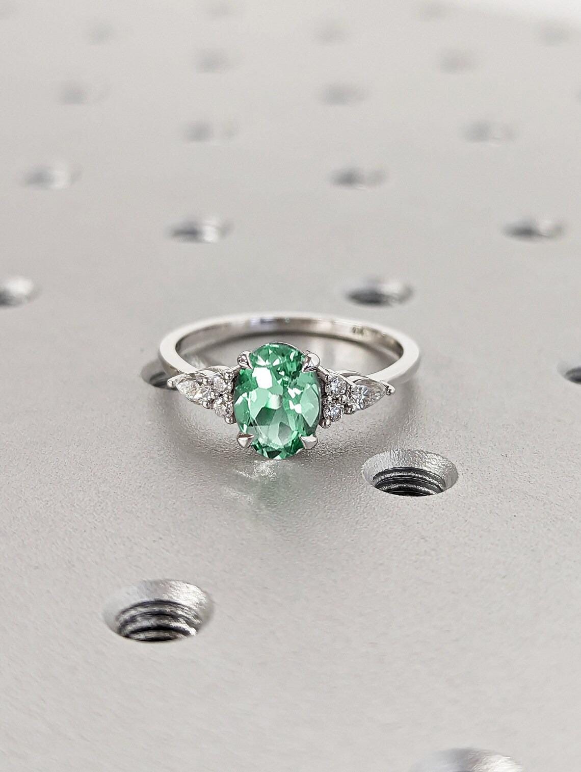 14k White Gold Promise Ring | Oval Cut Green Sapphire Wedding Ring | Vintage Proposal Ring | Green Sapphire Ring | Wedding Anniversary Gift