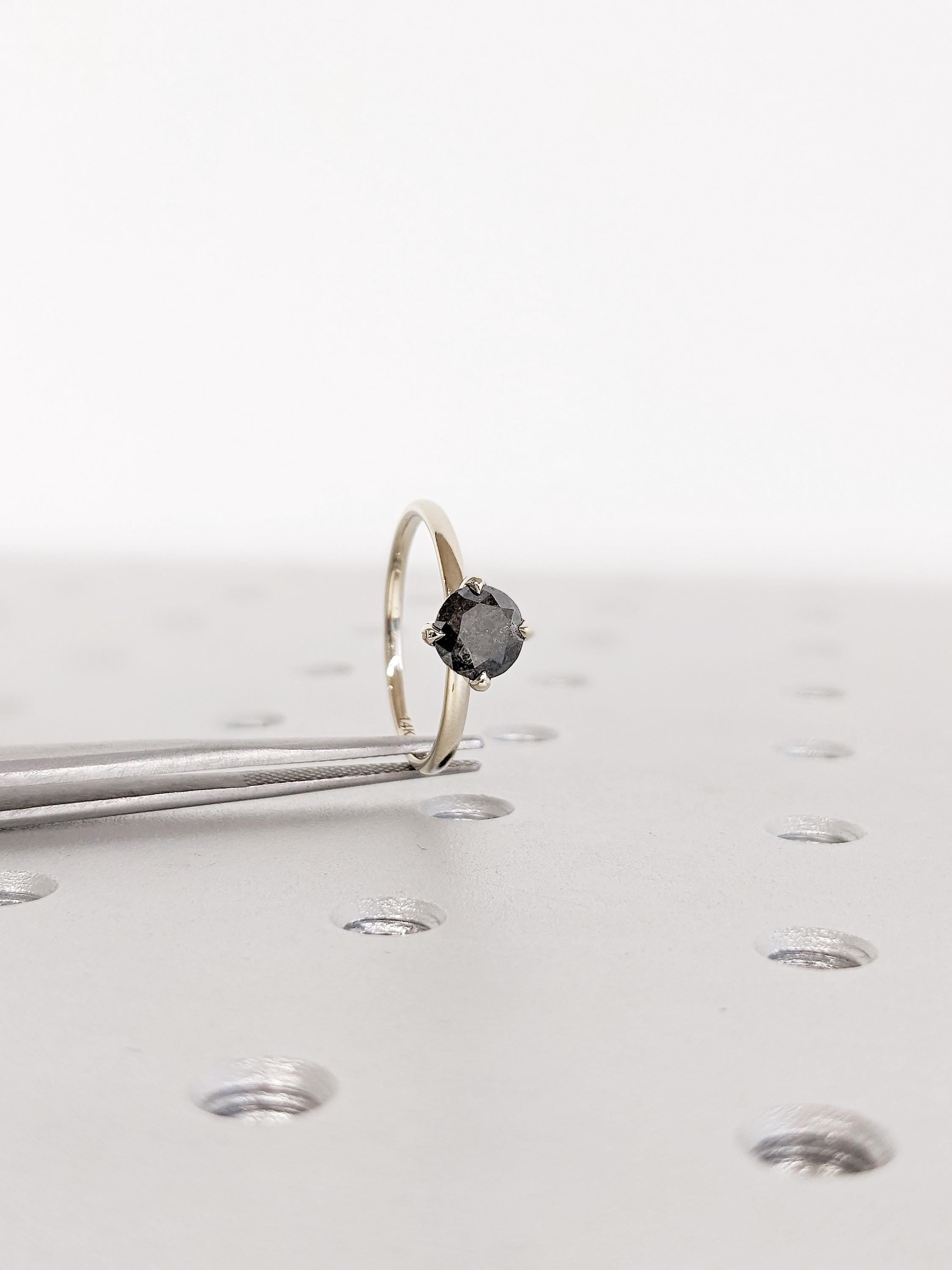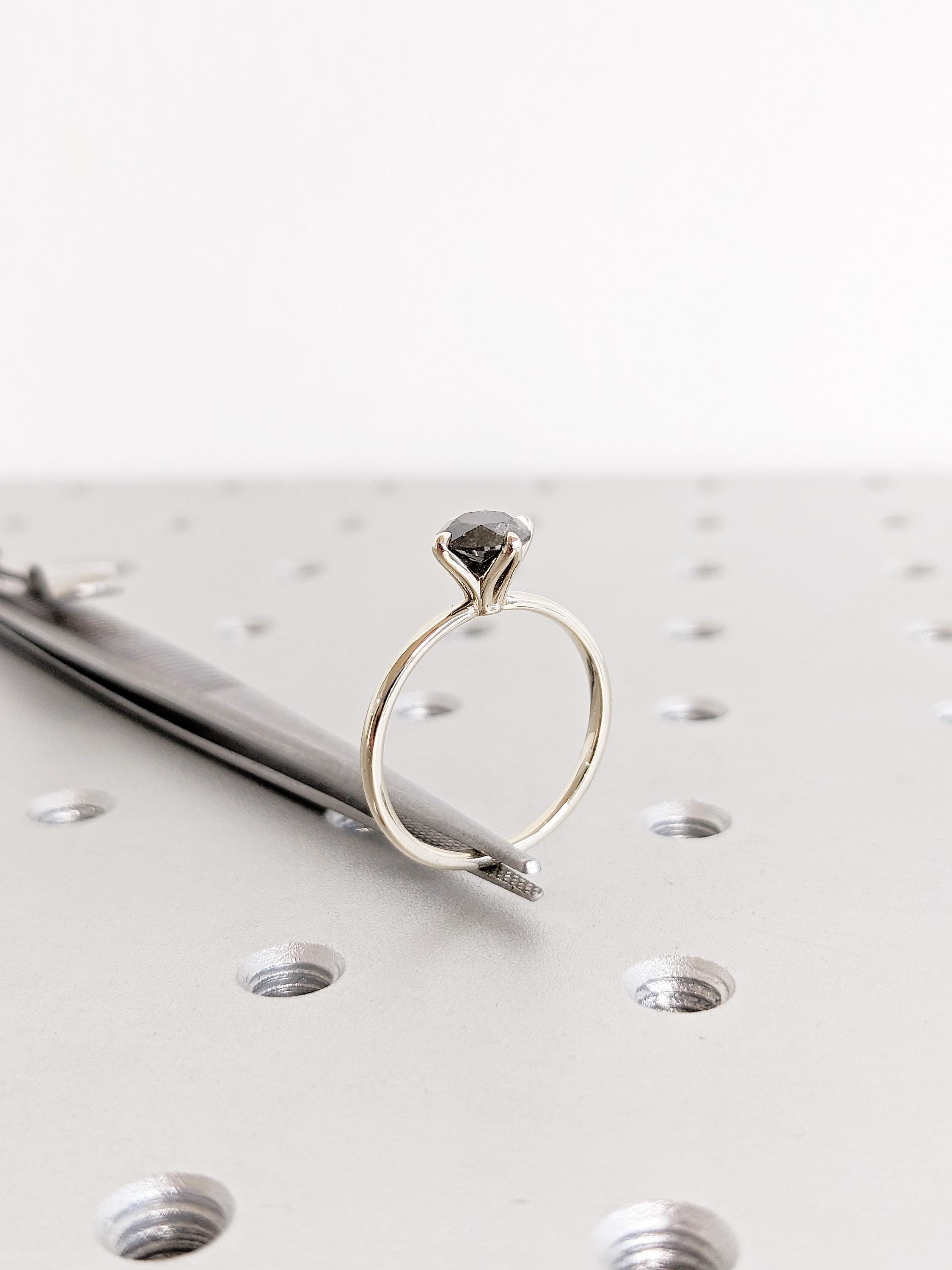 14K White Gold Salt and Pepper Diamond Ring | Alternative Engagement Ring | Round Cut Ring | Modern Wedding Ring | Unique Ring For Brides