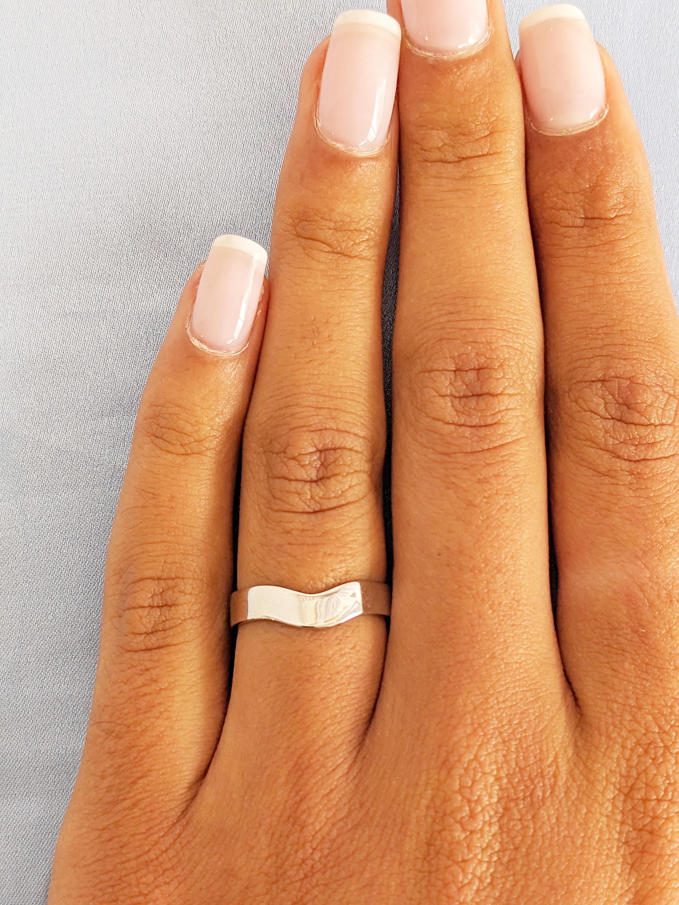14K White Gold Wedding Band, Stacking Ring For Woman, Matching Ring, Custom Wedding Ring, Unique Curved Gold Ring, Women's Wedding Ring Gift