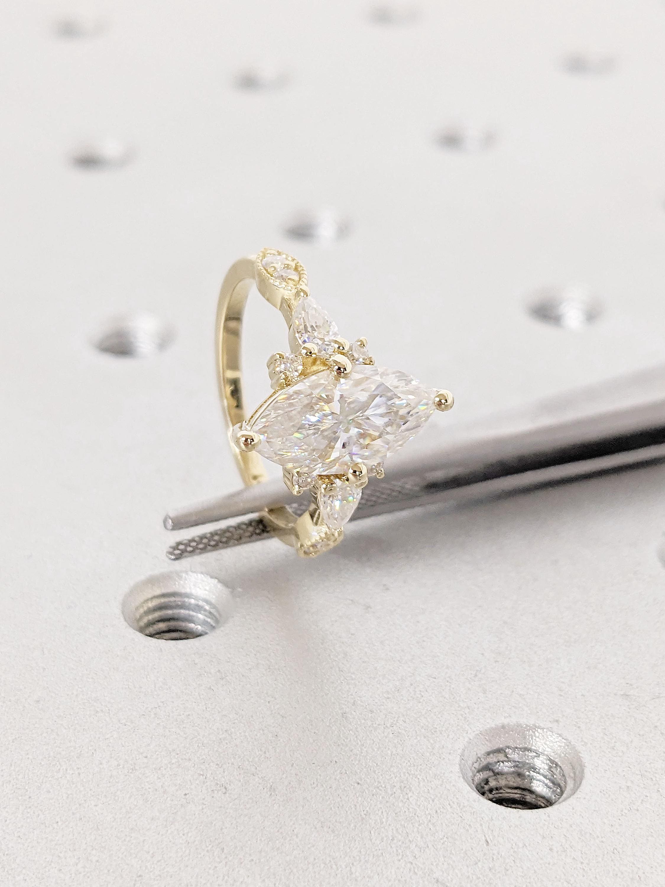 14k Yellow Gold Anniversary Rings for Women, Lab Grown Diamond Ring, Marquise Cut Diamond Ring, Pear and round Moissanite Ring, Gift for Her