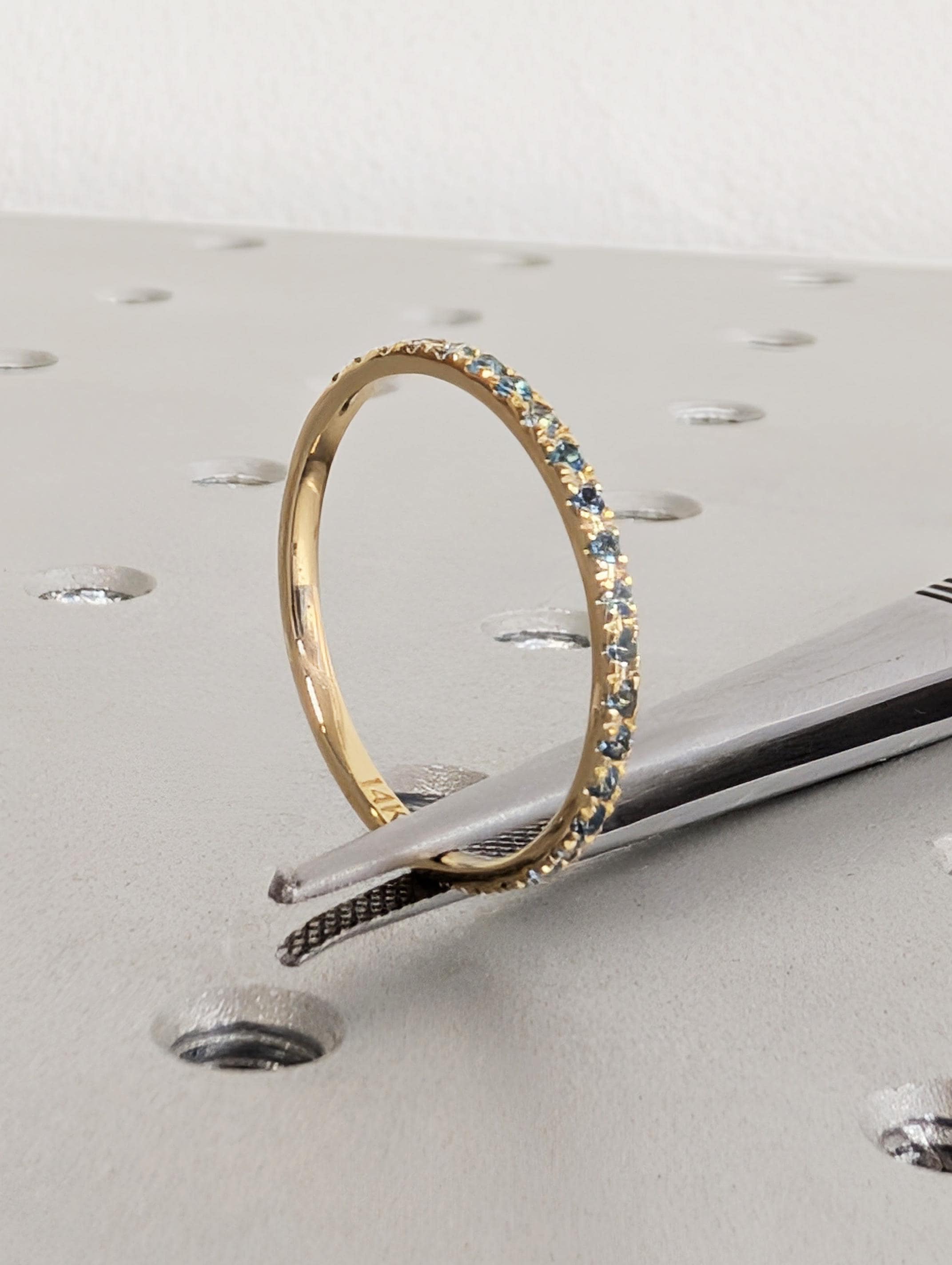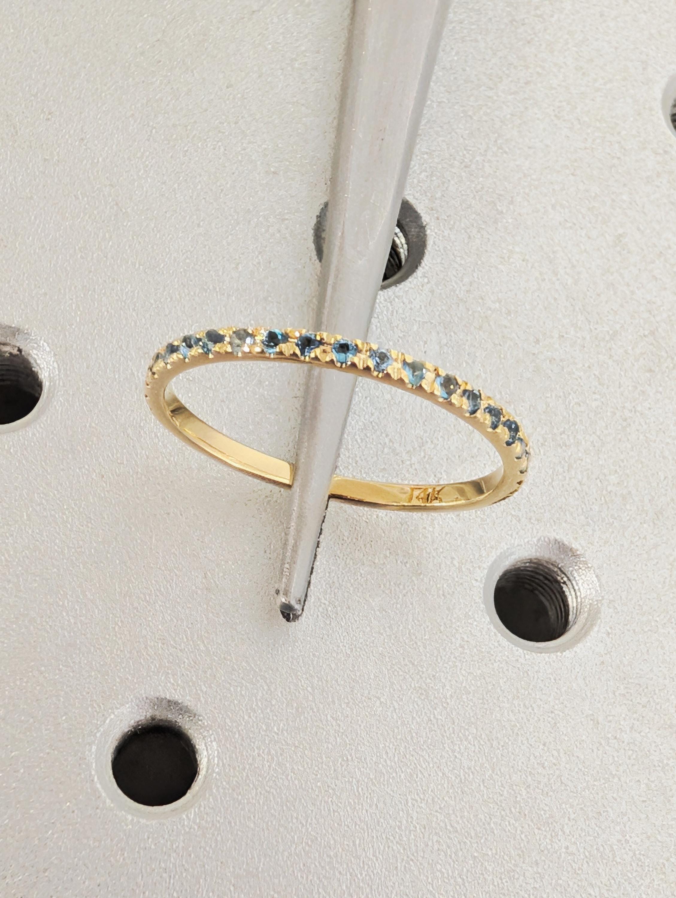 14K Yellow Gold Blue Topaz Matching Ring, Half Eternity Matching Band, Women's Stacking Wedding Ring, Round Blue Topaz, Dainty Promise Ring