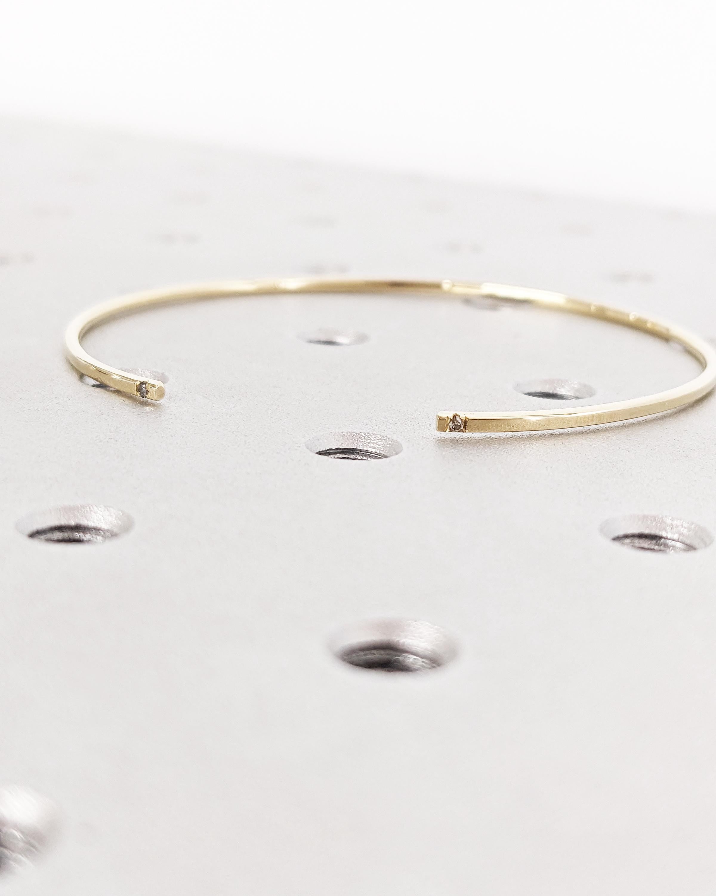 Elegant and versatile, this dainty open cuff bracelet features a salt and pepper diamond at each end for a balanced, sleek touch. Crafted in gold or platinum, the delicate design makes it ideal for layering or wearing alone. Lightweight and stylish, it’s perfect for daily wear or special occasions.