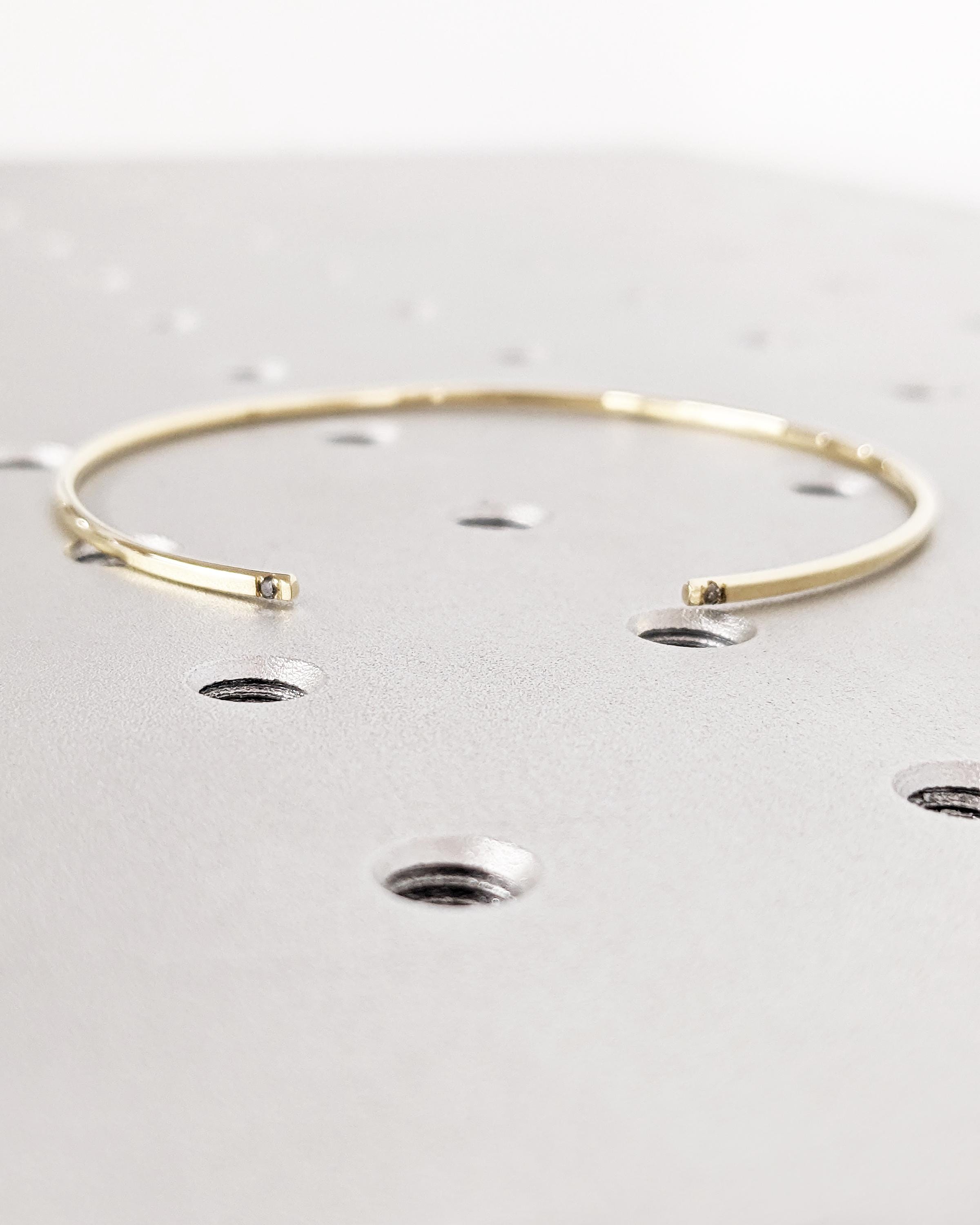 14K Yellow Gold Diamond Cuff Bangle: Open Bracelet with Salt and Pepper Diamond Accents, Thin Open Cuff Bangle, Birthday Gift for Her