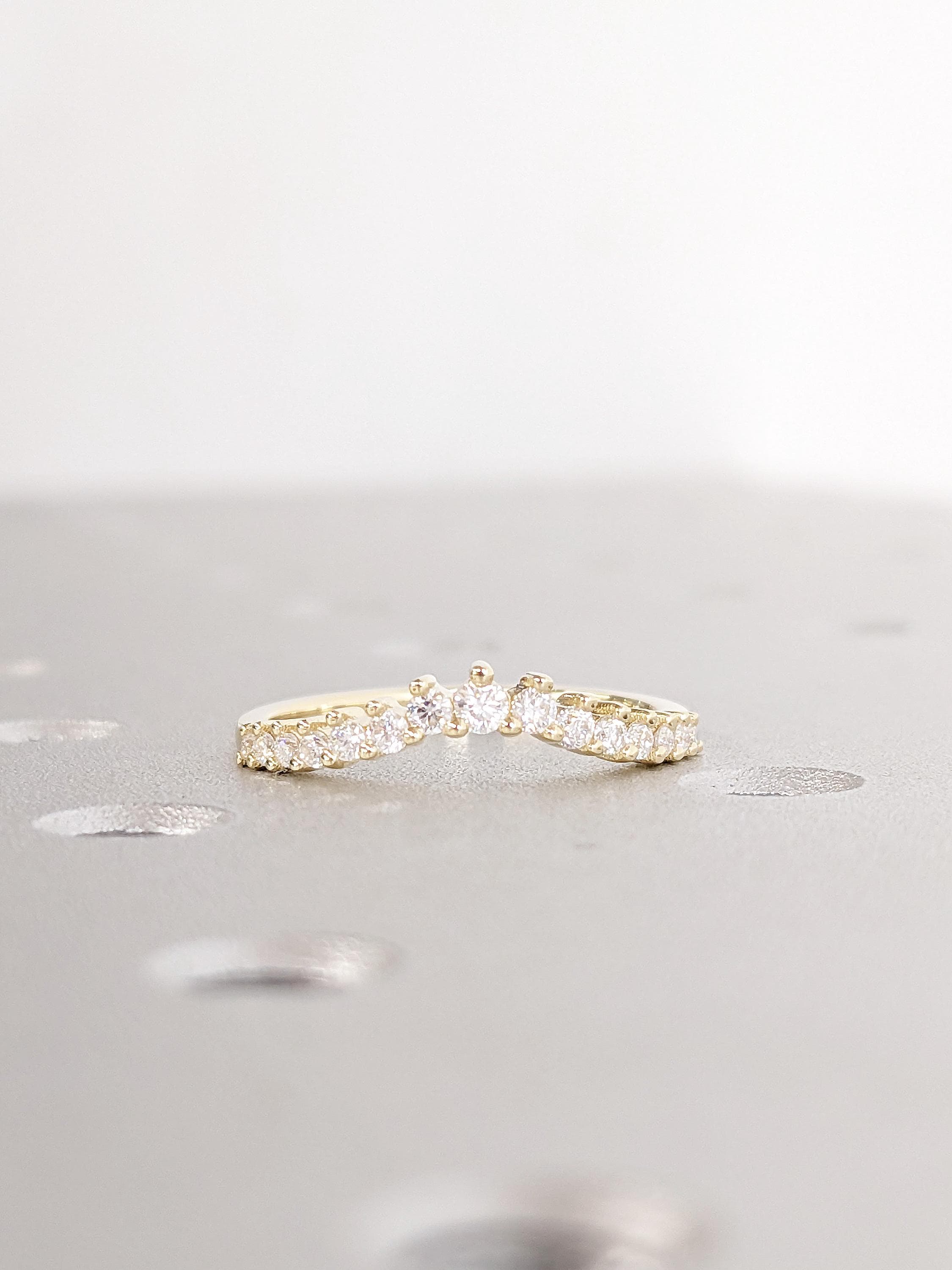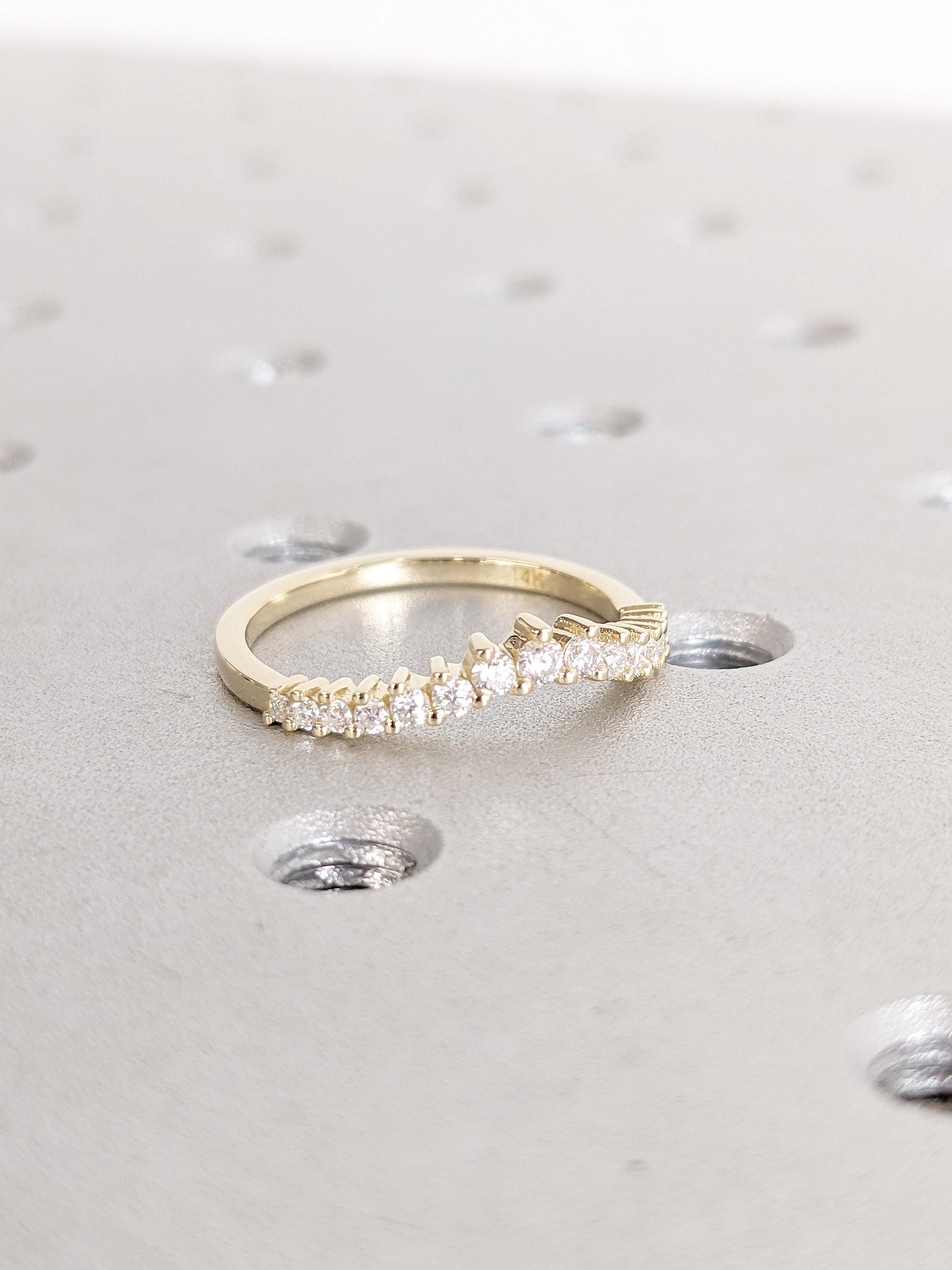14K Yellow Gold Diamond Matching Band | Round Cut Diamond Wedding Band | Vintage Curved Bridal Ring Stacking | Art Deco Dainty Matching Ring