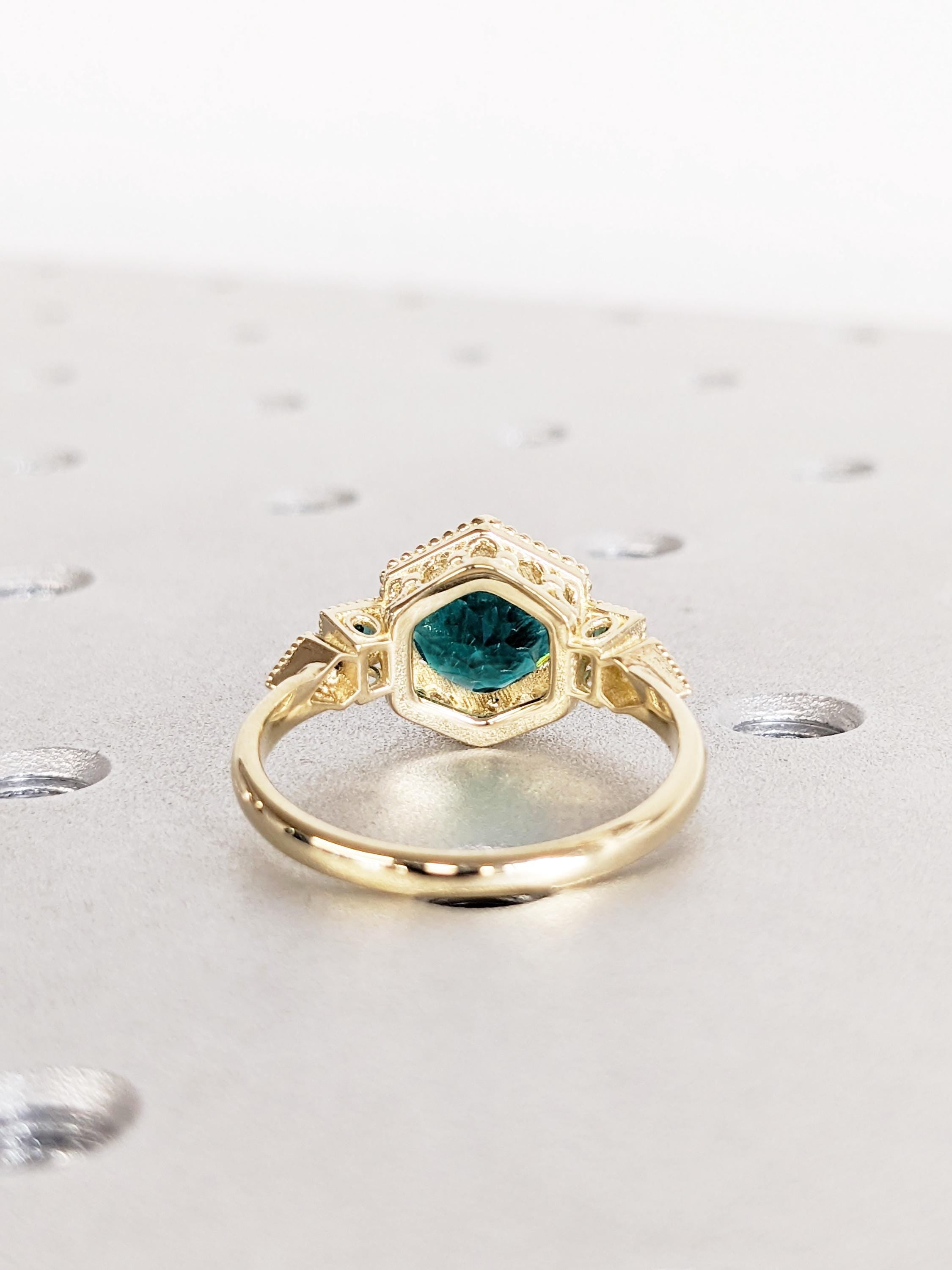 14K Yellow Gold Lab Emerald Engagement Ring, Round Emerald Vintage Ring, Art Deco Milgrain Wedding Ring, Emerald Jewelry, Birthstone Ring