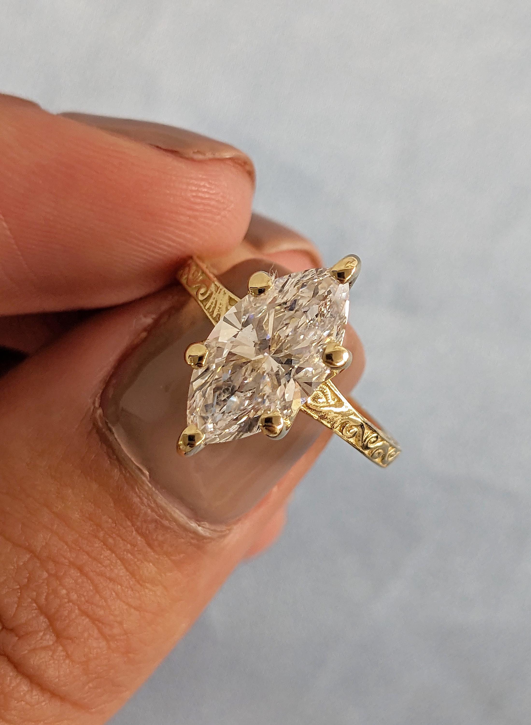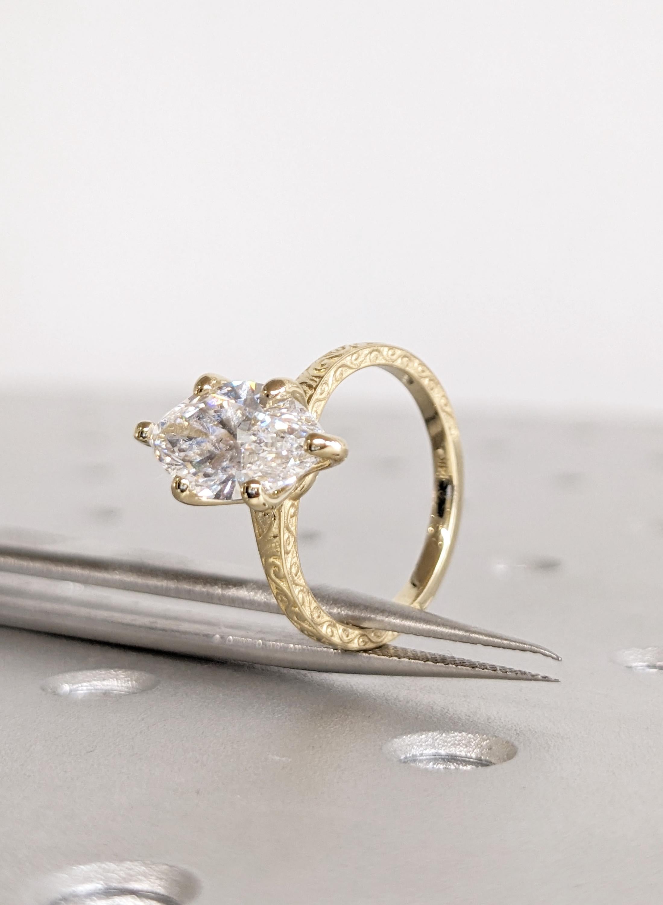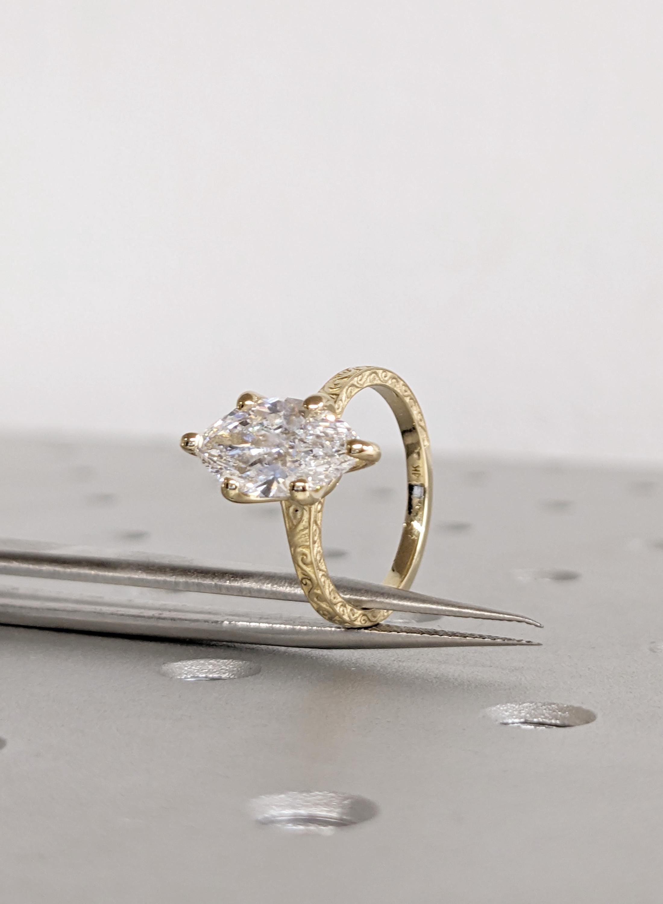 14K Yellow Gold Marquise Moissanite Ring, Filigree Engagement Ring, Vintage Style Bridal Solitaire, Wedding Anniversary Promise Ring For Her